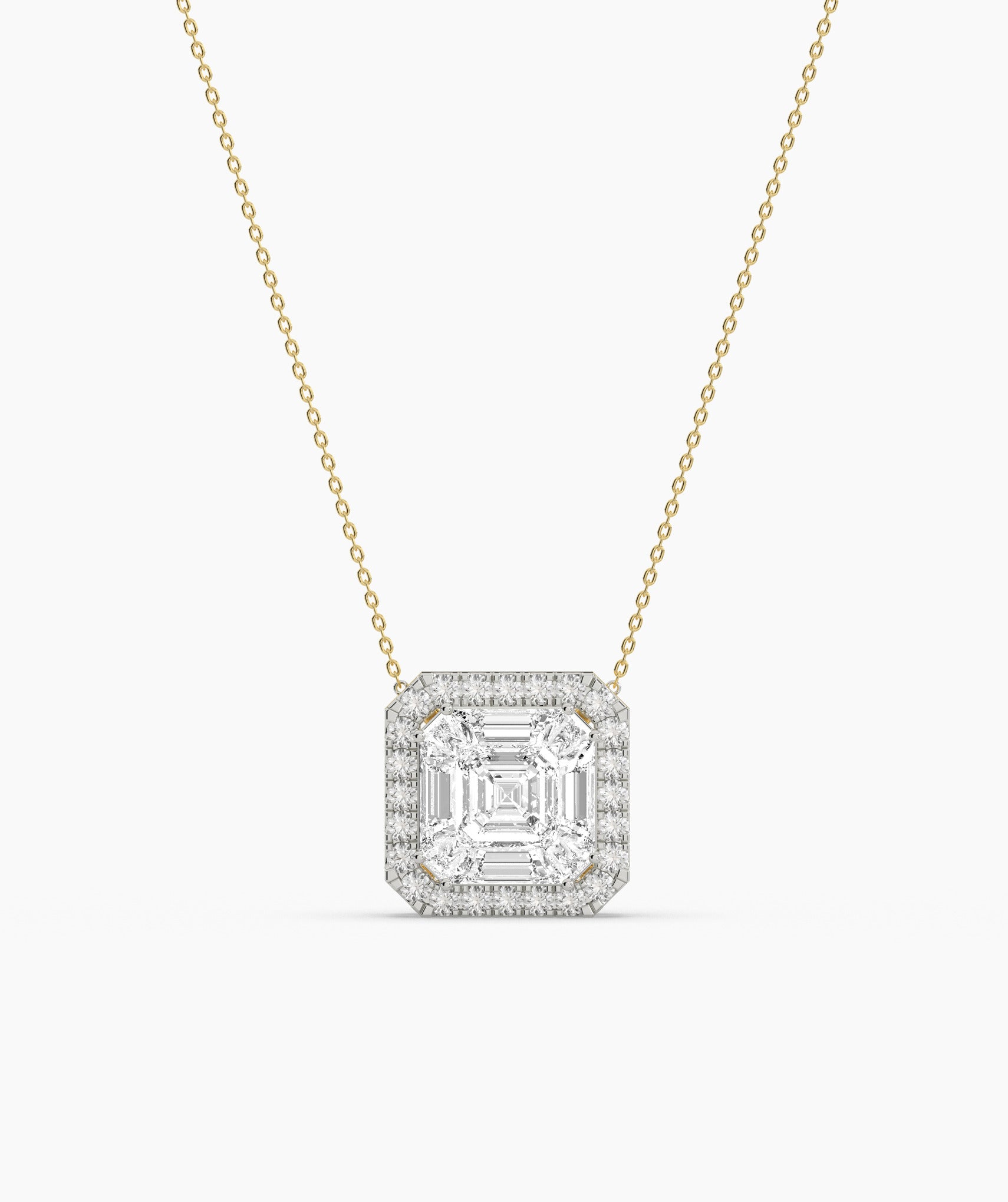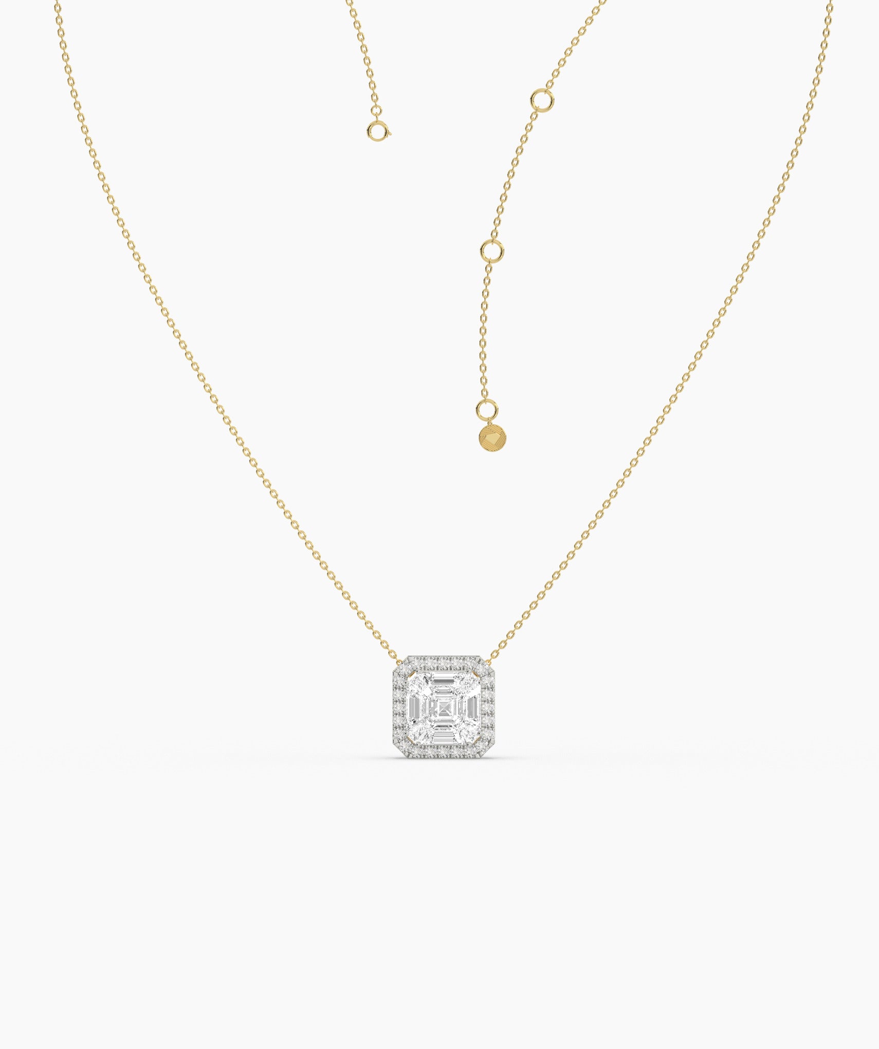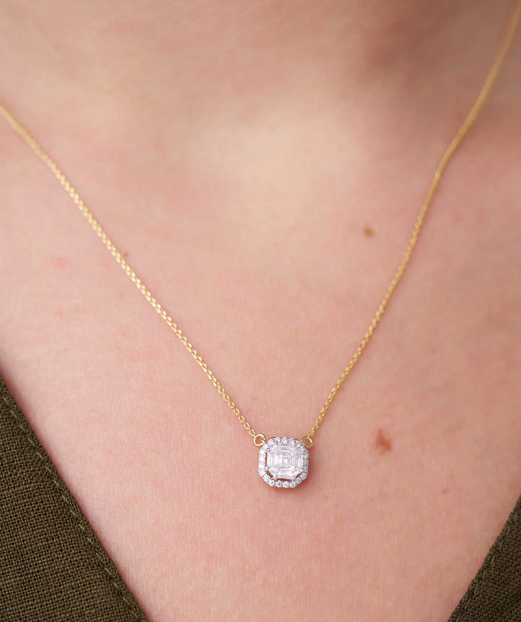 A nod to Art Deco elegance, this bold octagon pendant showcases step-cut diamonds in a warm gold setting for timeless sophistication.