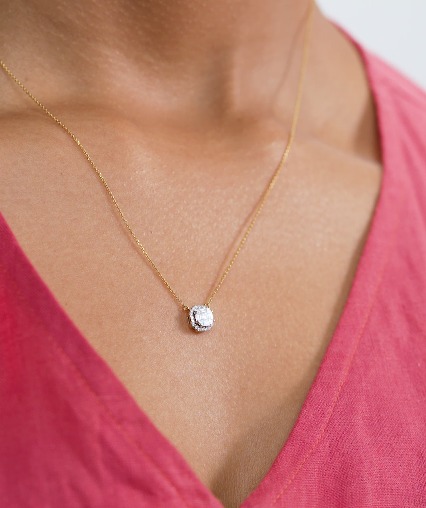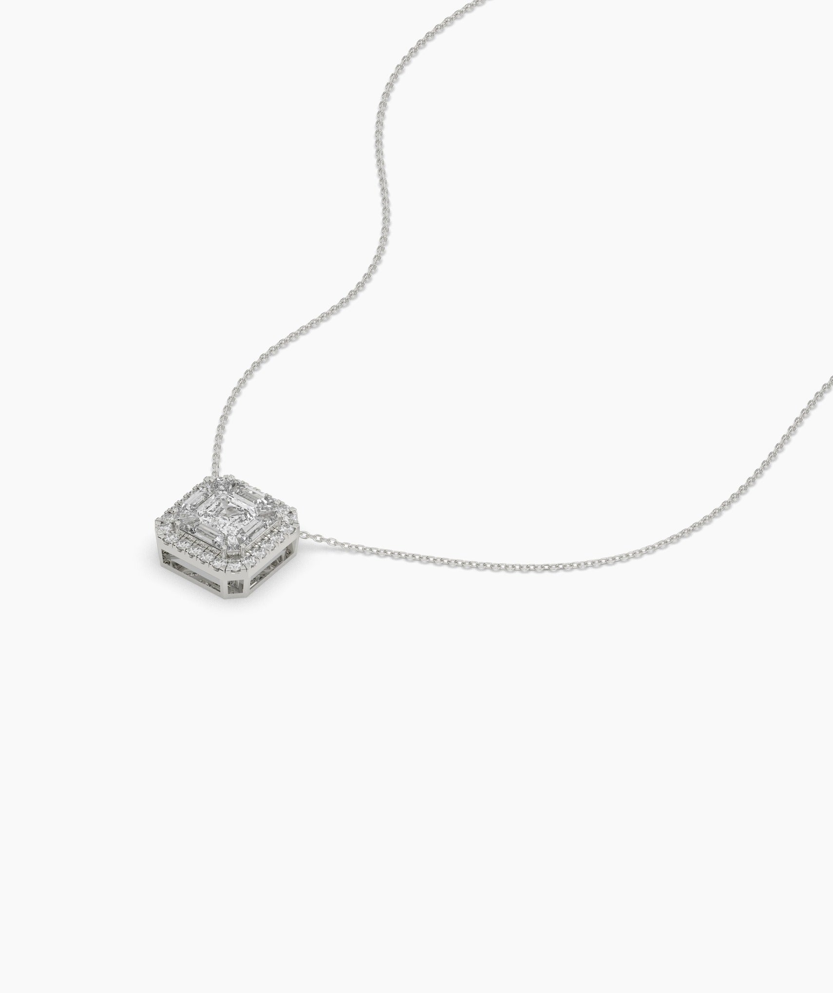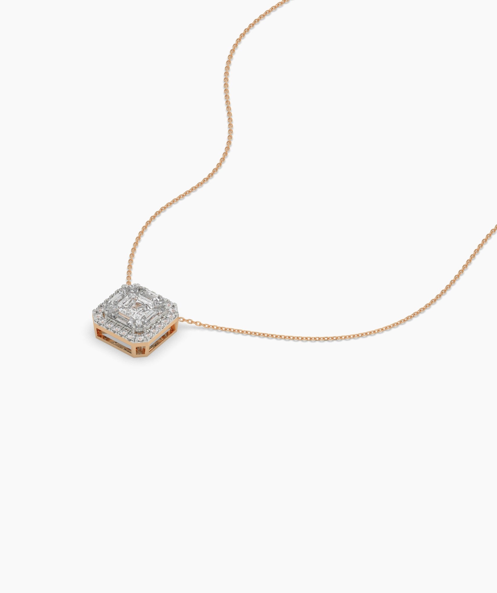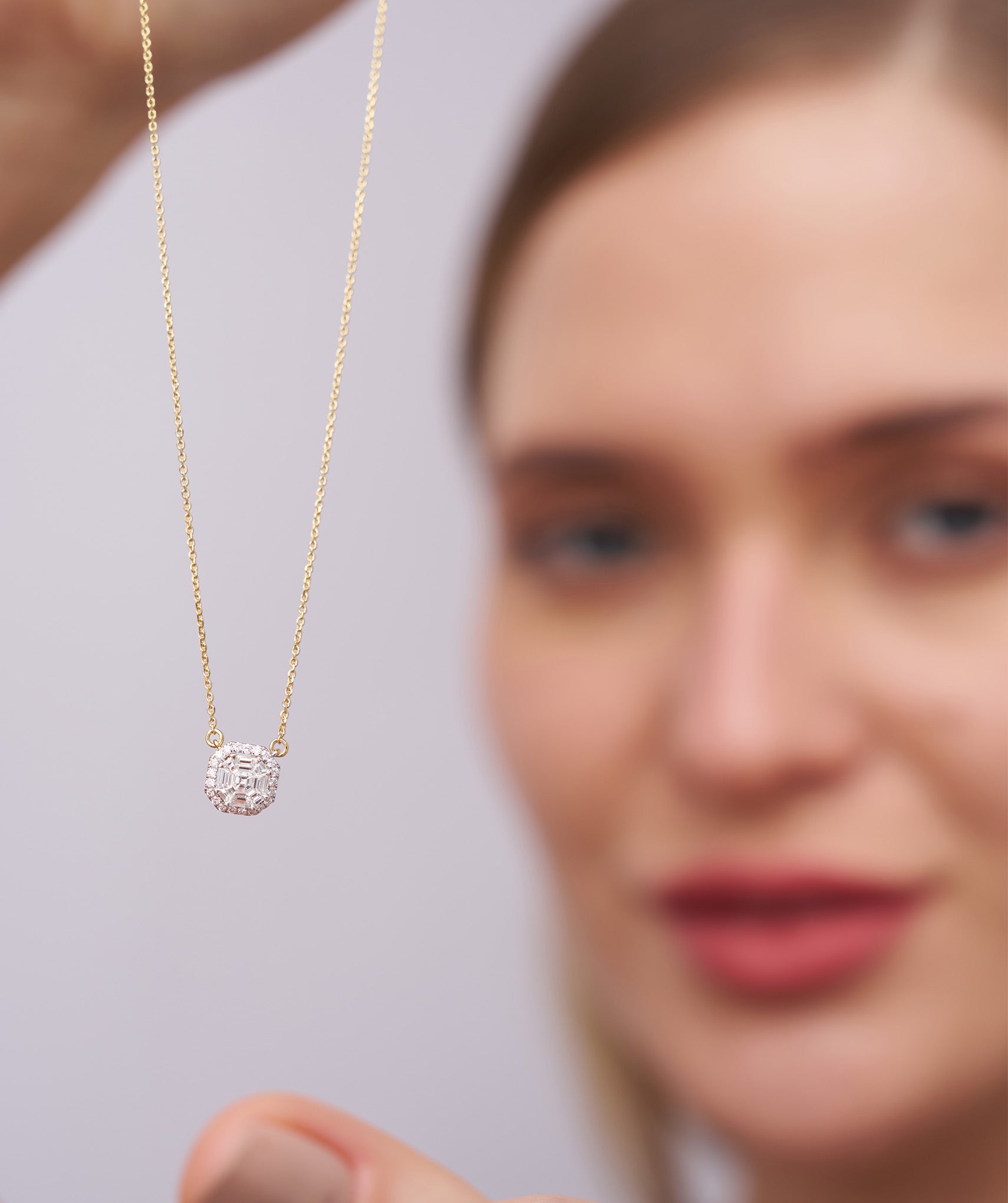 A nod to Art Deco elegance, this bold octagon pendant showcases step-cut diamonds in a warm gold setting for timeless sophistication.