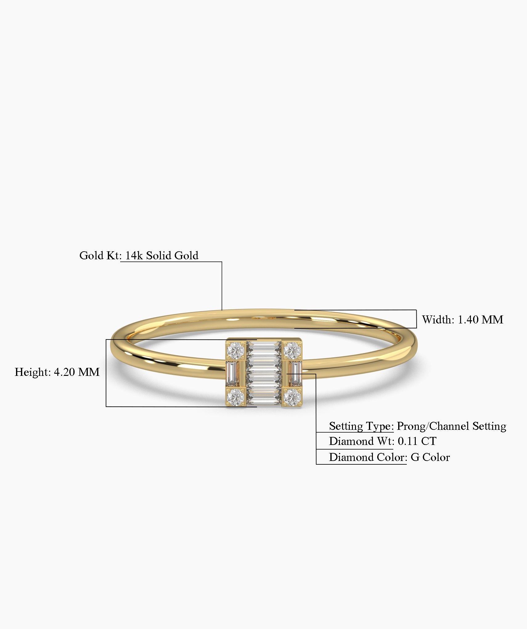 14K Gold Sleek Baguette Diamond Ring