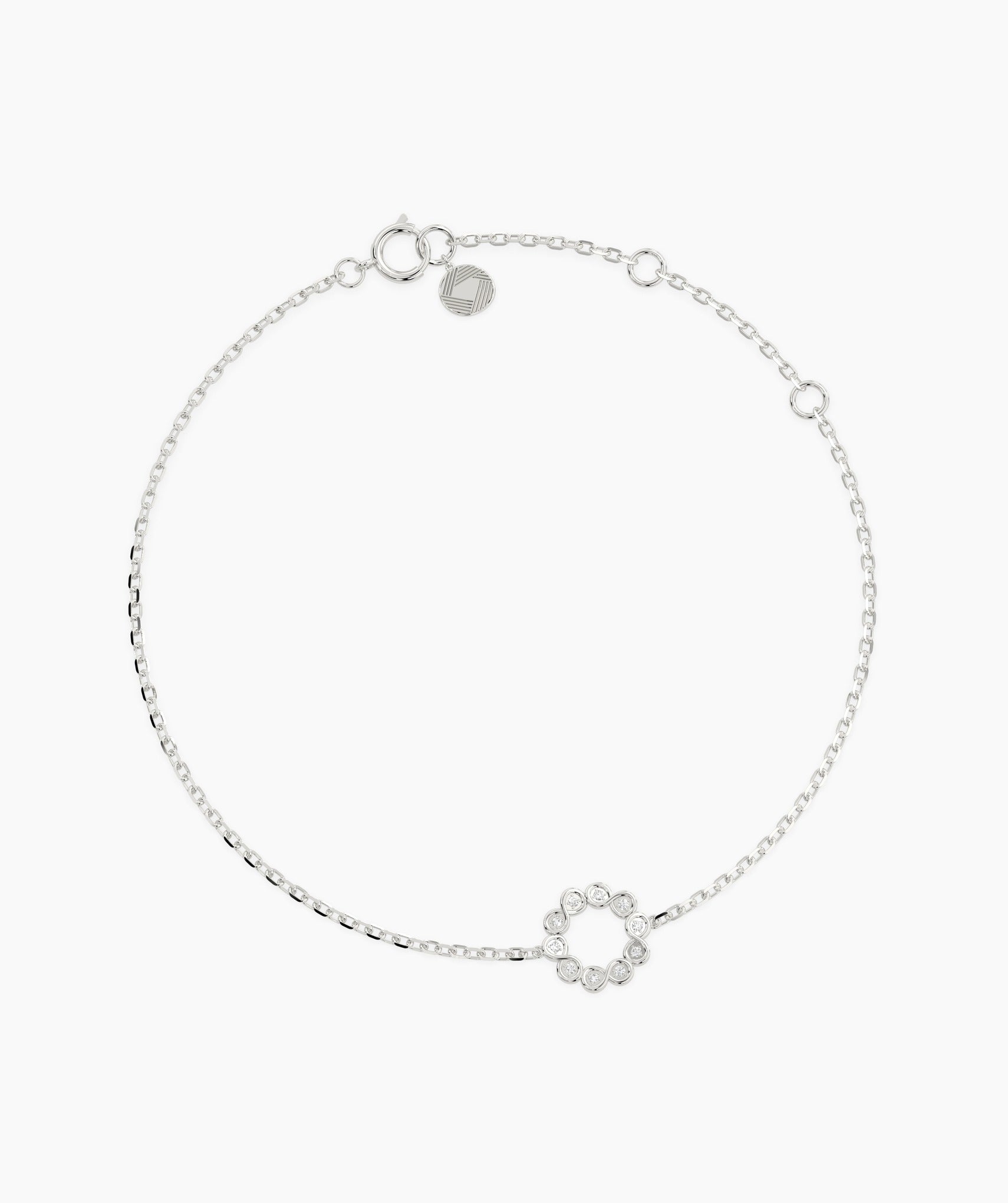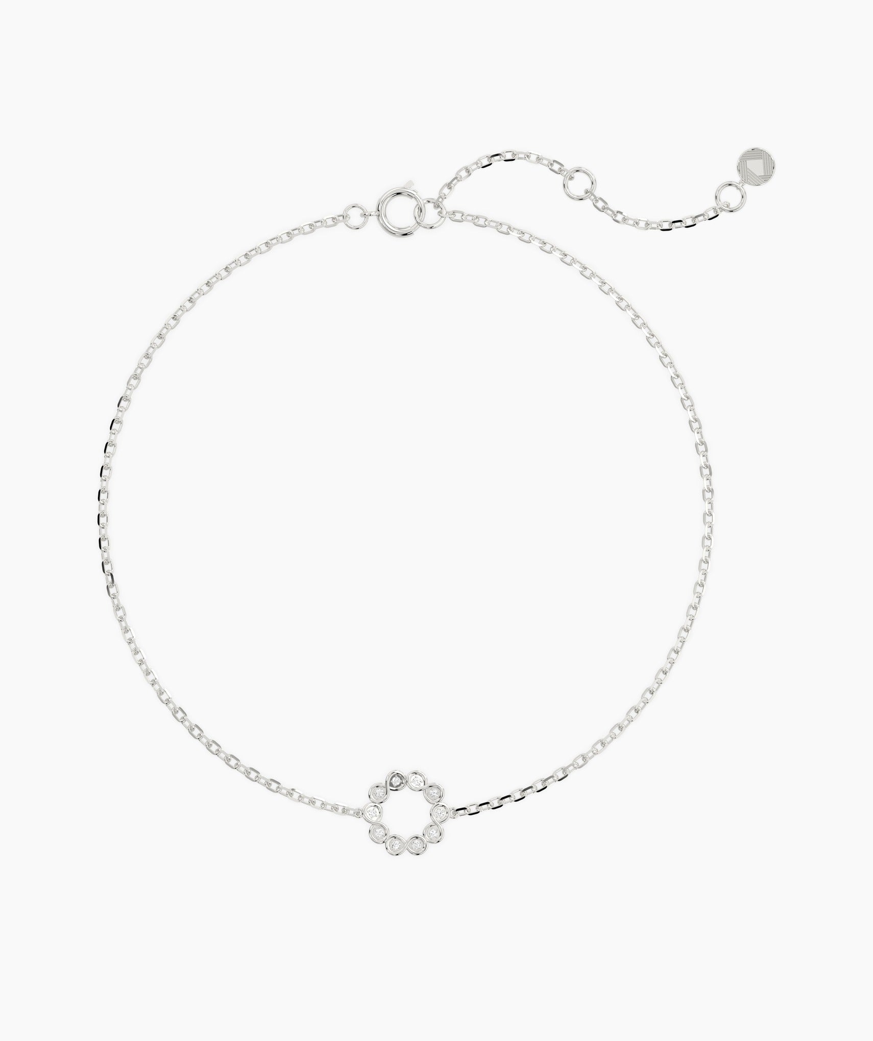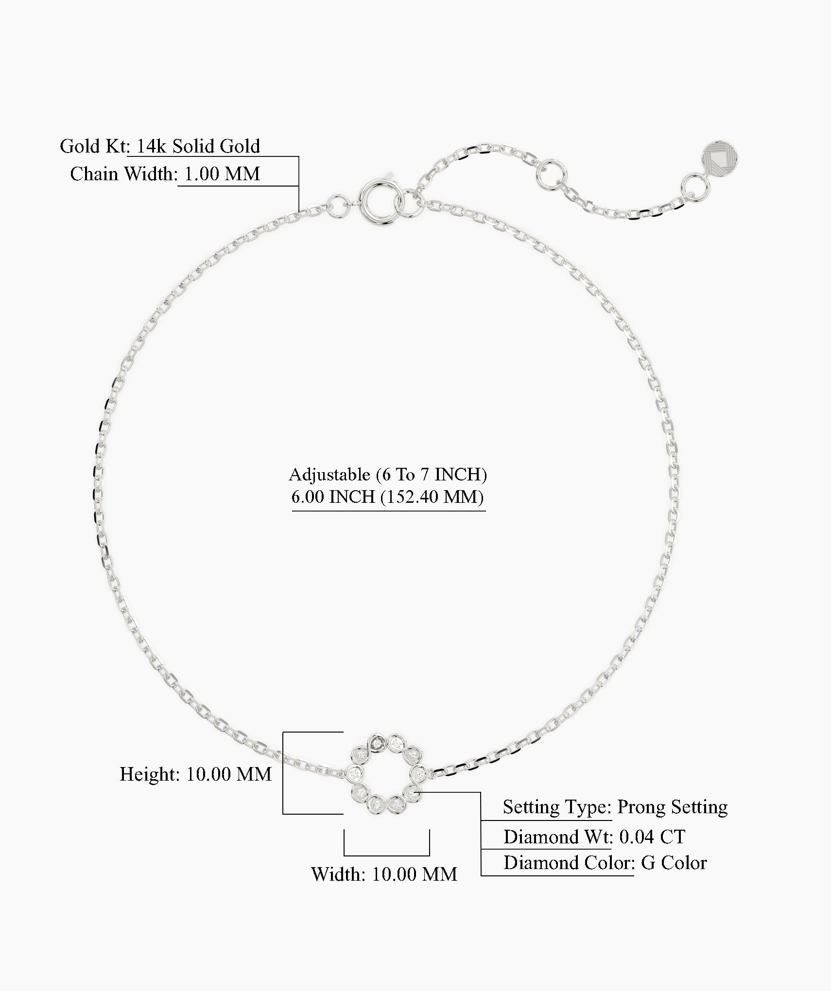 Timeless and sophisticated, this 14K gold bracelet features an open circle of bezel-set diamonds, symbolizing eternity.