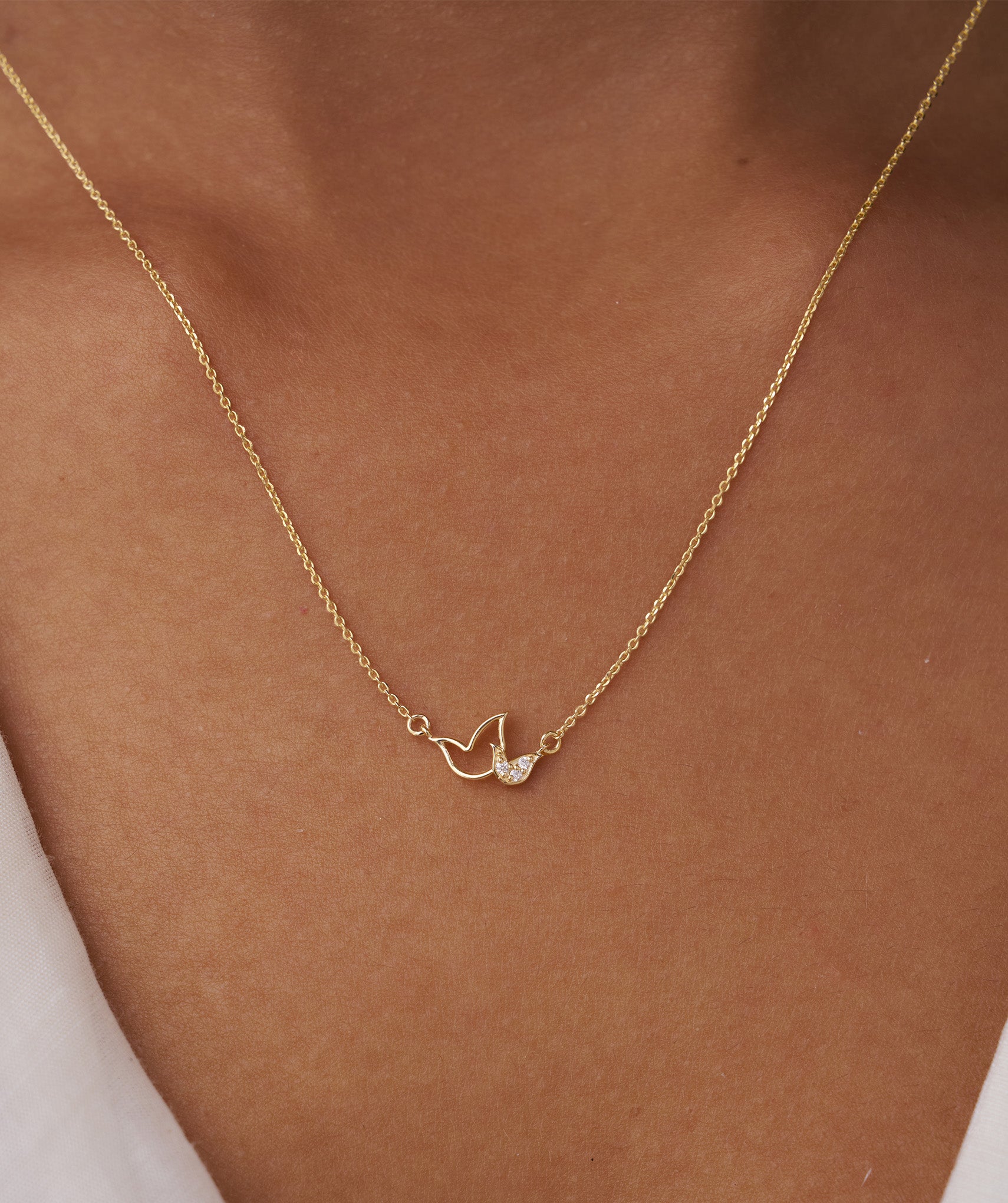 Elevate your style with this delicate double-bird pendant, where a subtle diamond accent adds just the right touch of sparkle.