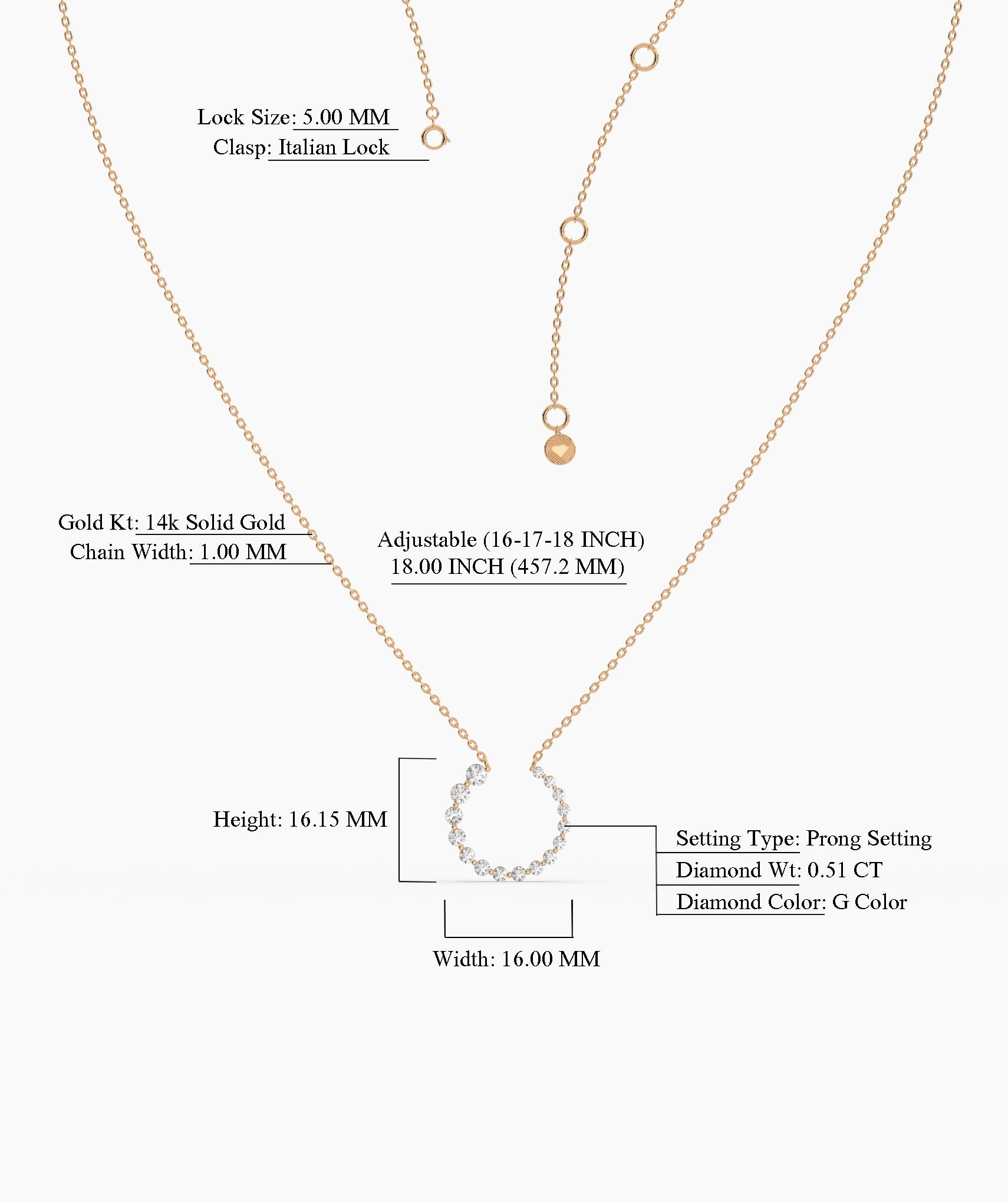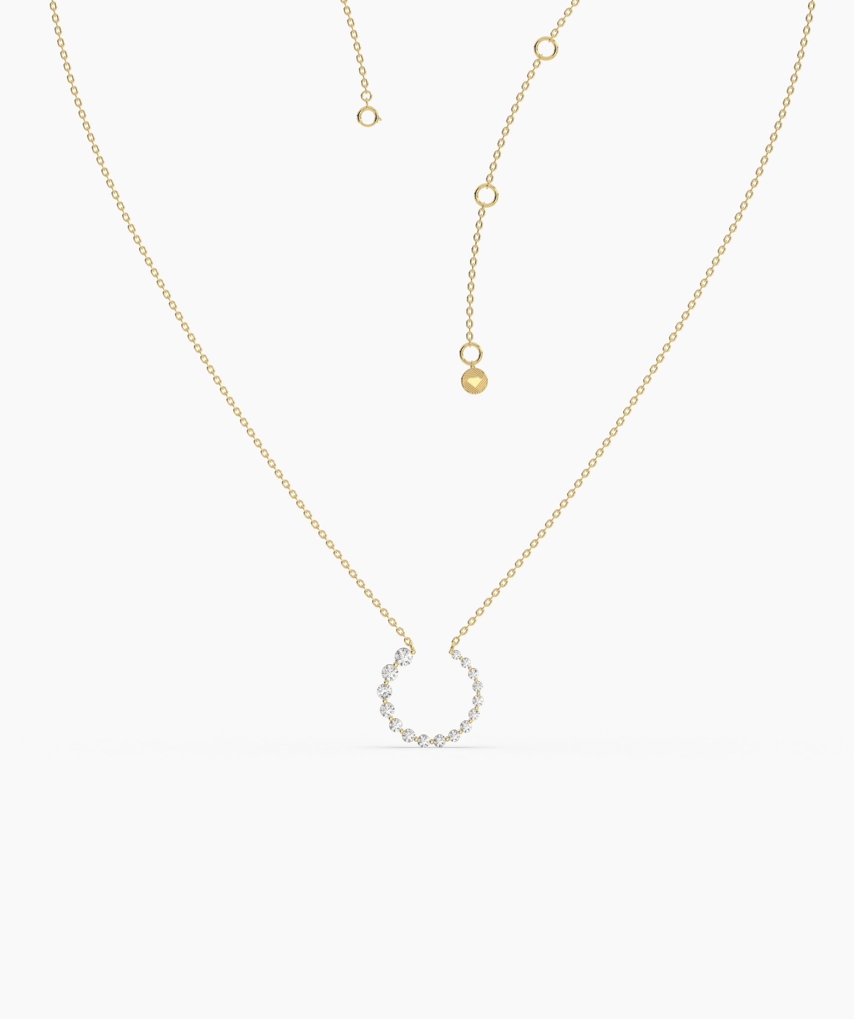 Discover the timeless elegance of this 14K solid gold necklace, featuring a perfect circle of brilliant diamonds that catch the light beautifully.