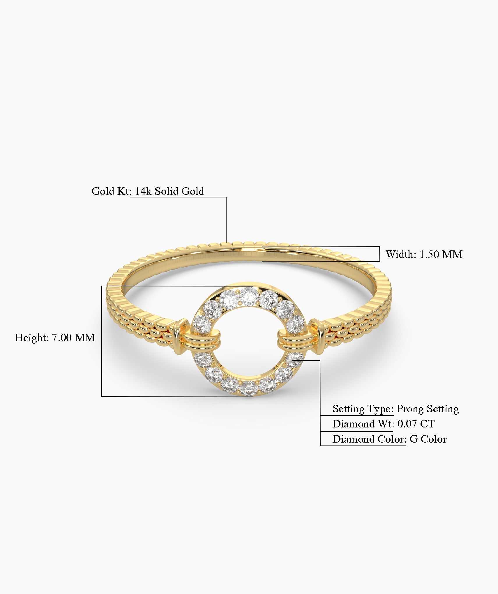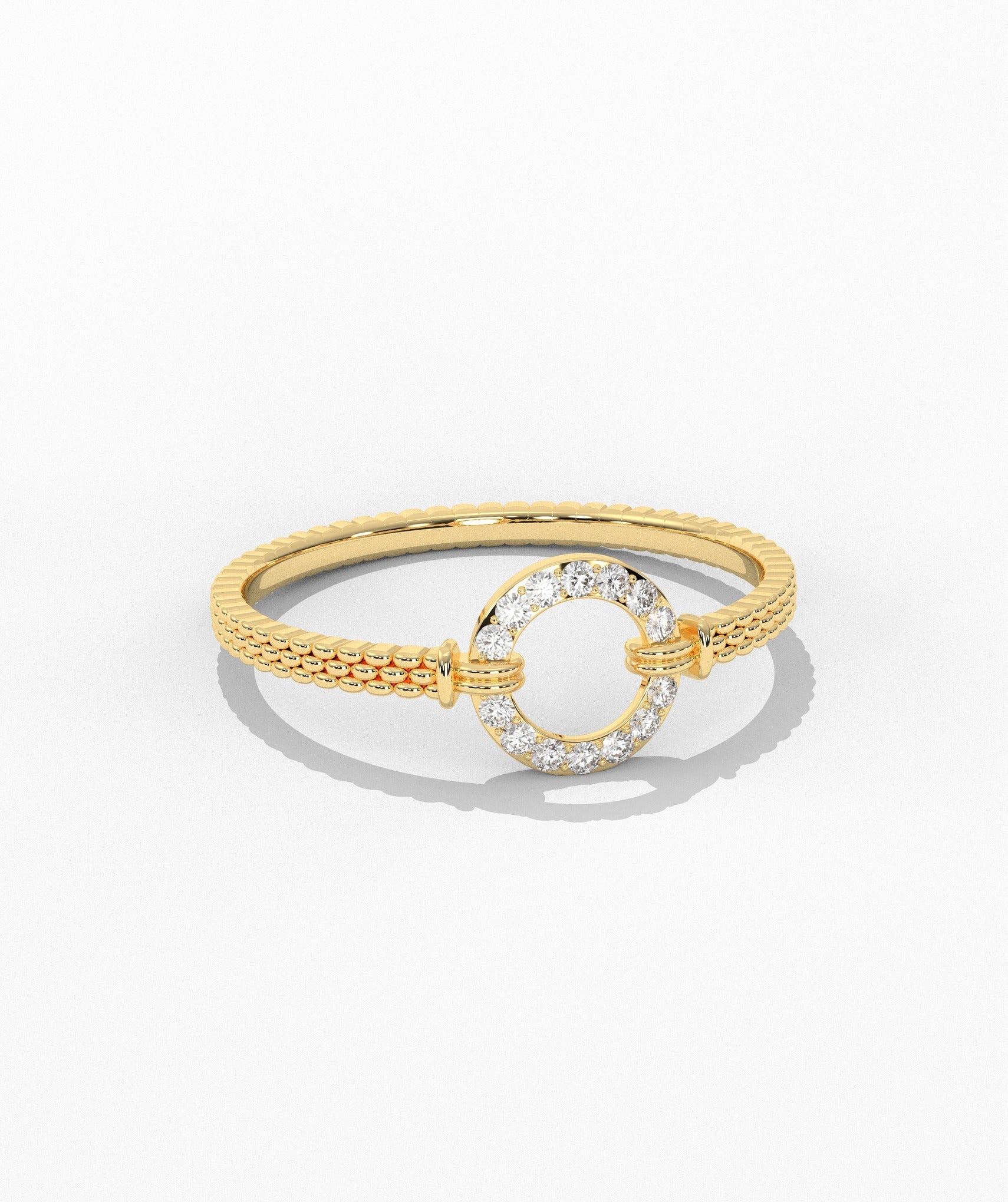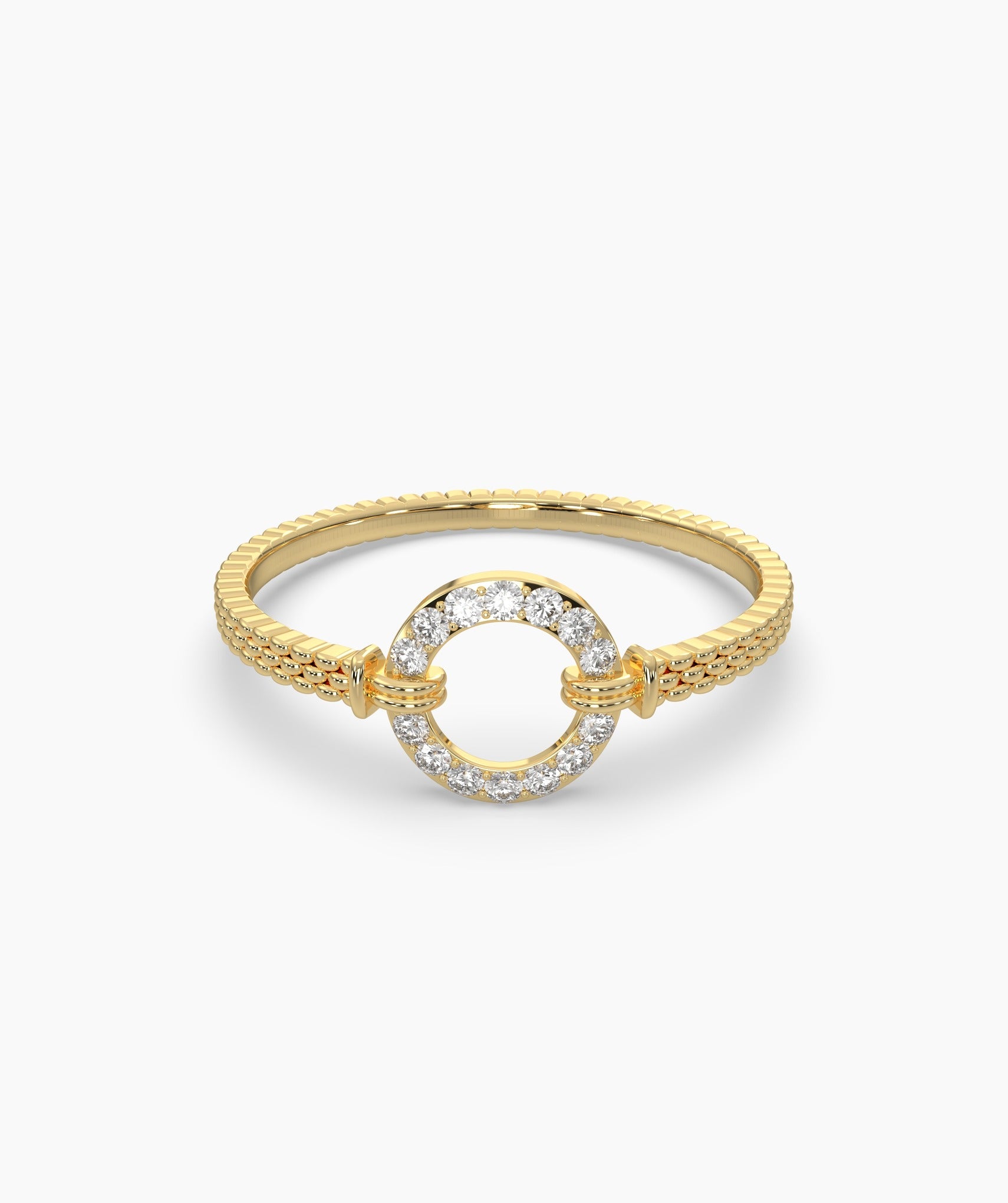 A stunning gold ring featuring a delicate diamond-encrusted circle, perfect for everyday elegance or stacking with other rings.