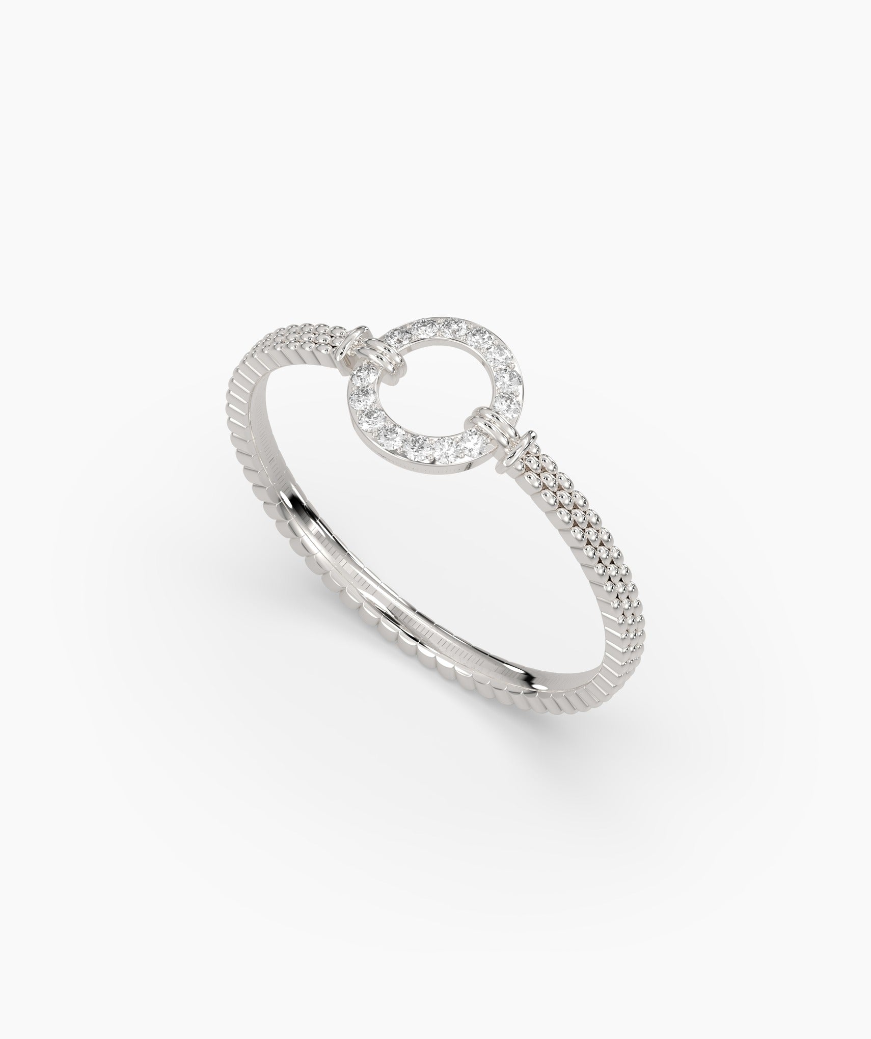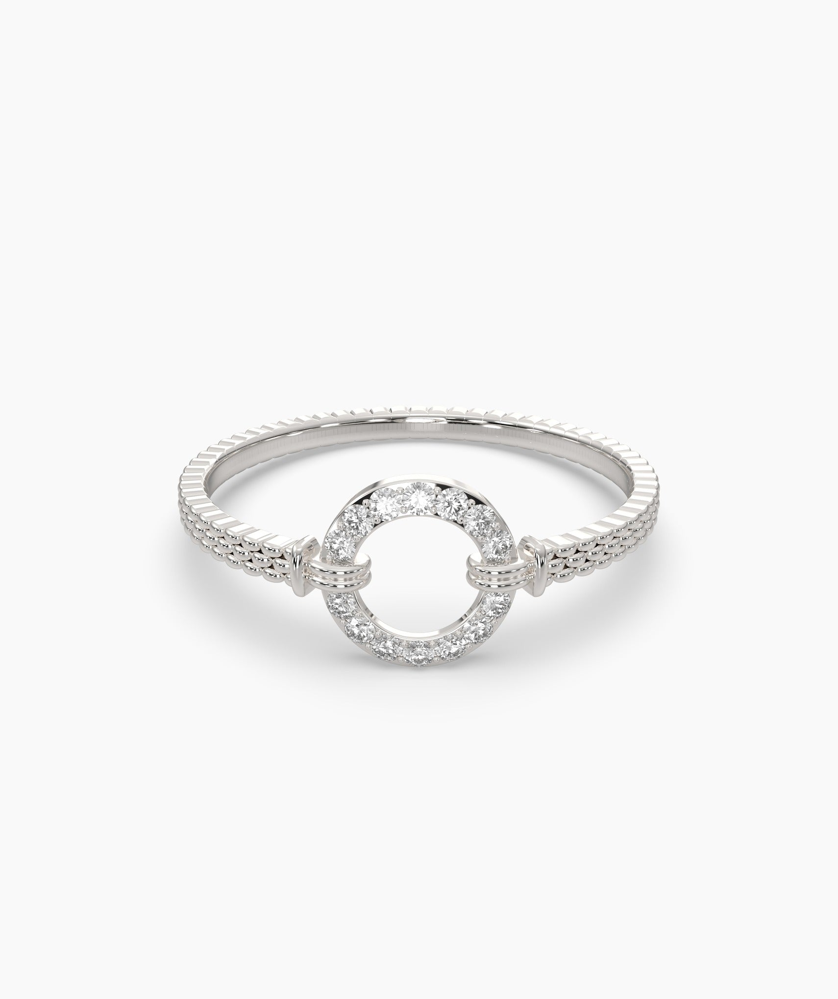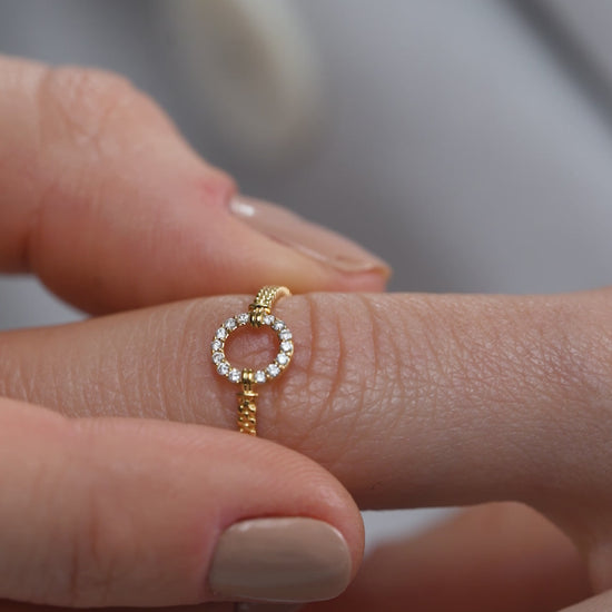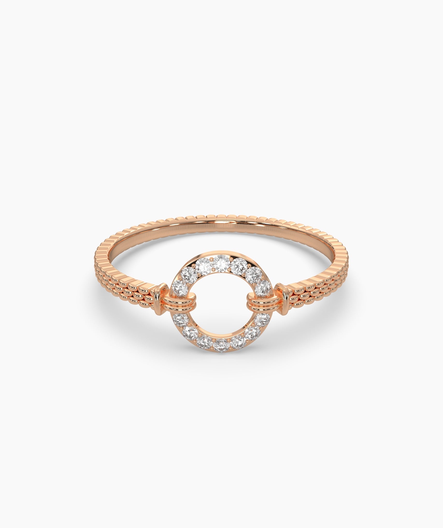 A stunning gold ring featuring a delicate diamond-encrusted circle, perfect for everyday elegance or stacking with other rings.