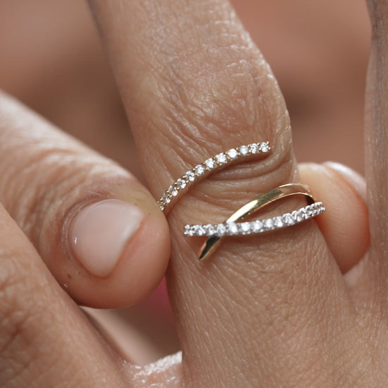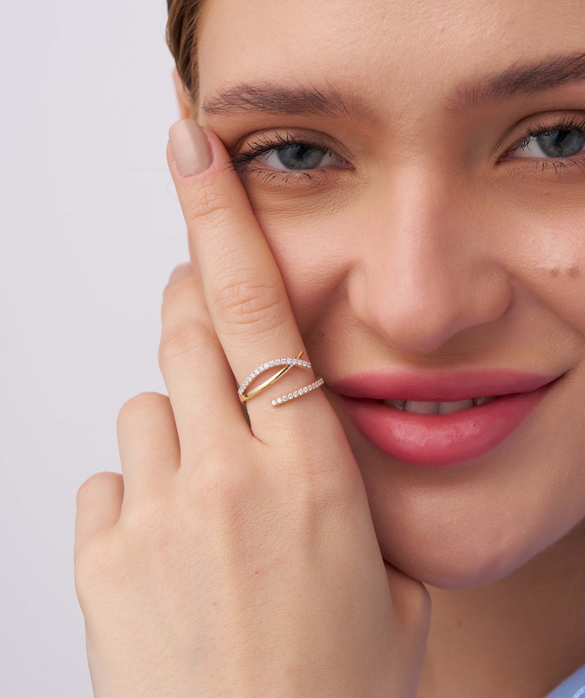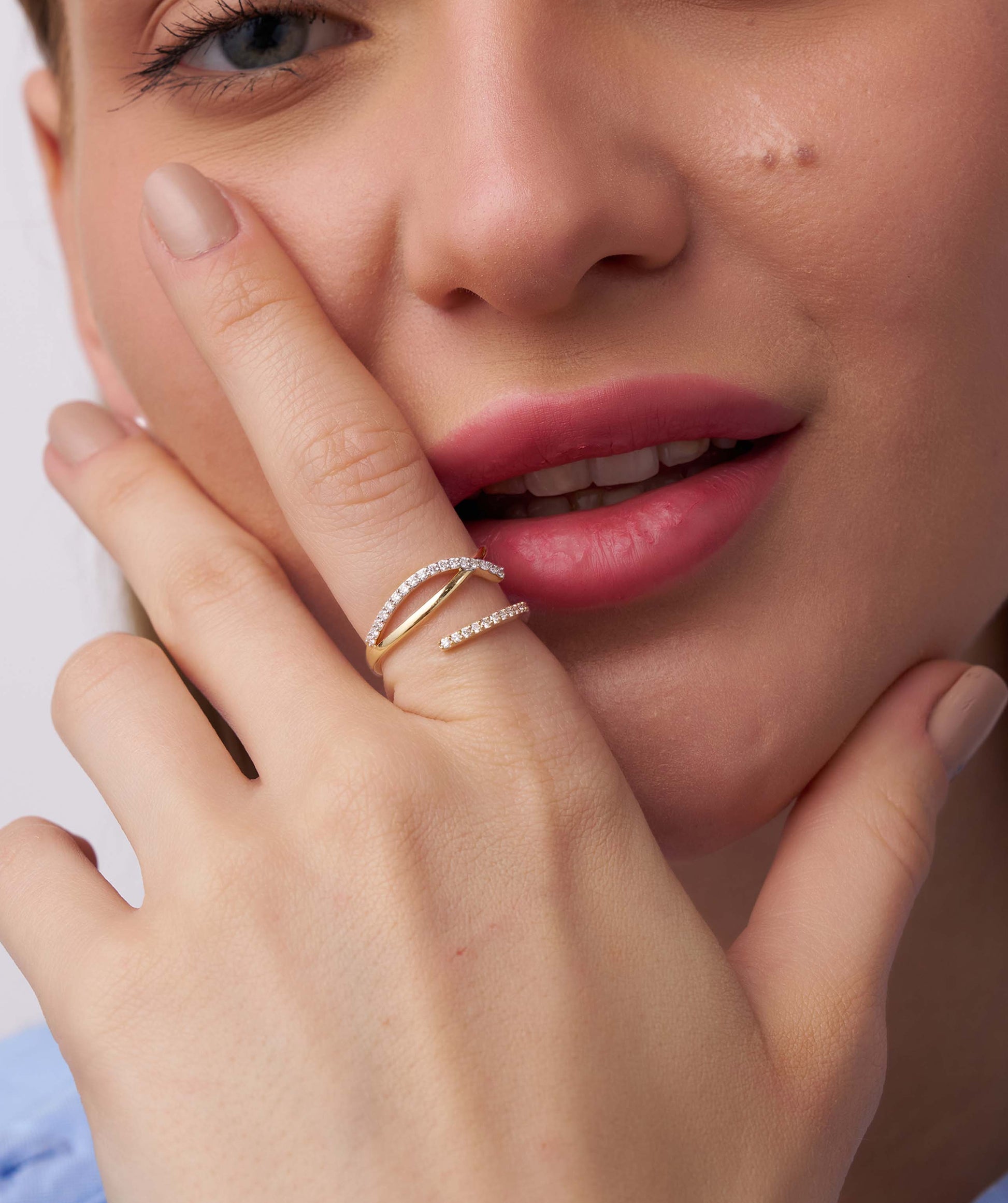 A swirl of brilliance—this sleek wrap design in 14K gold is elegantly accented by sparkling diamonds.