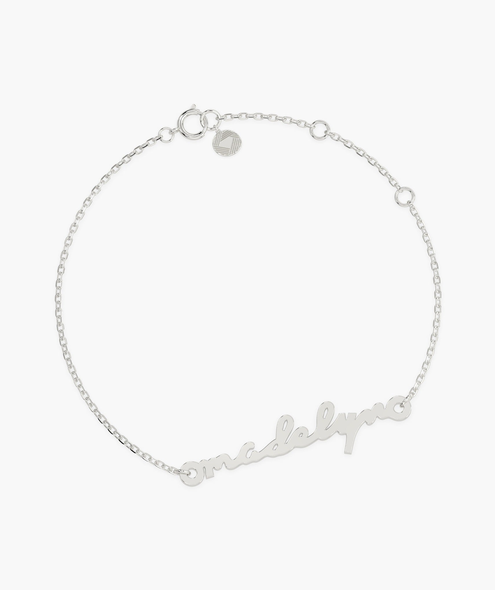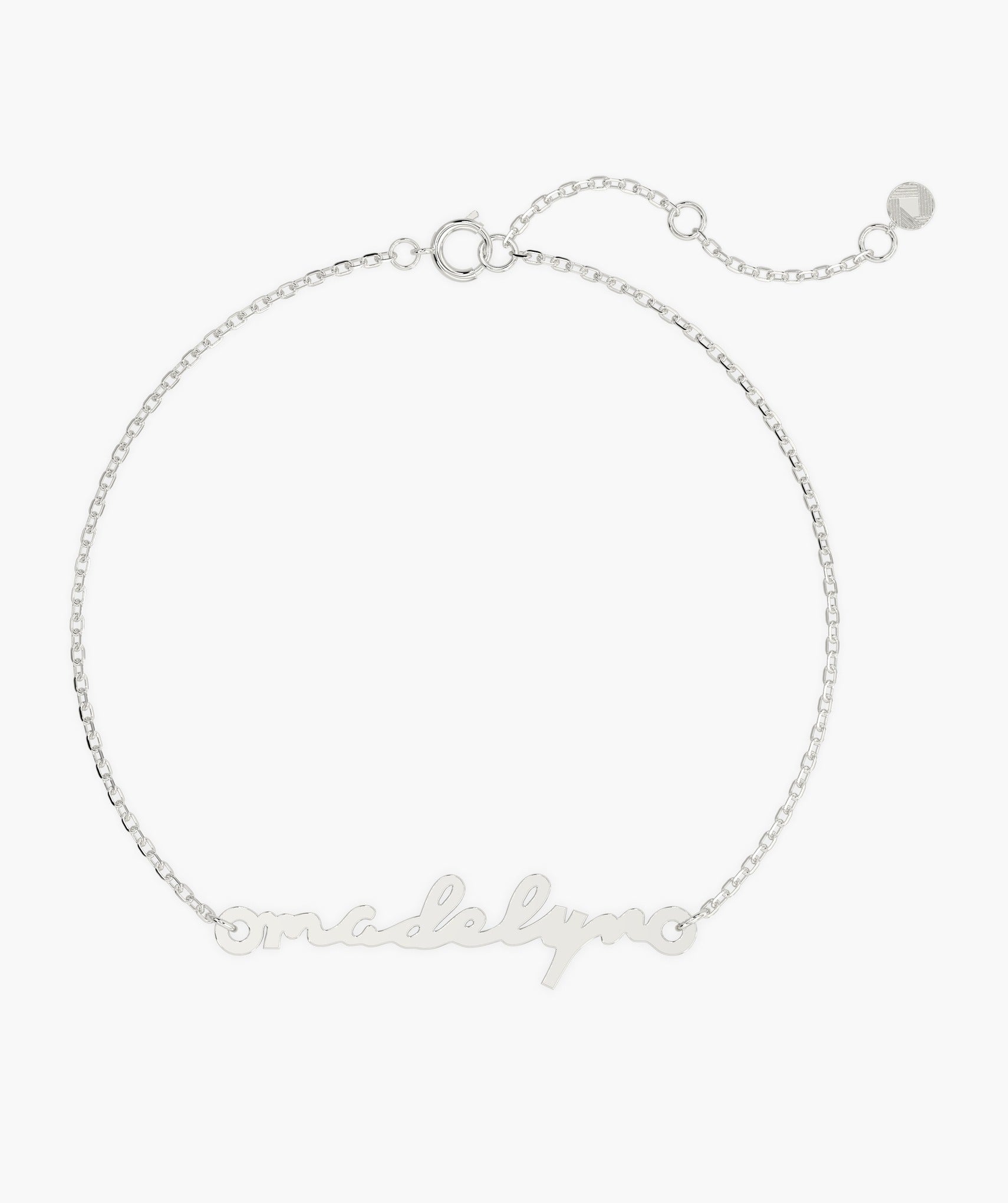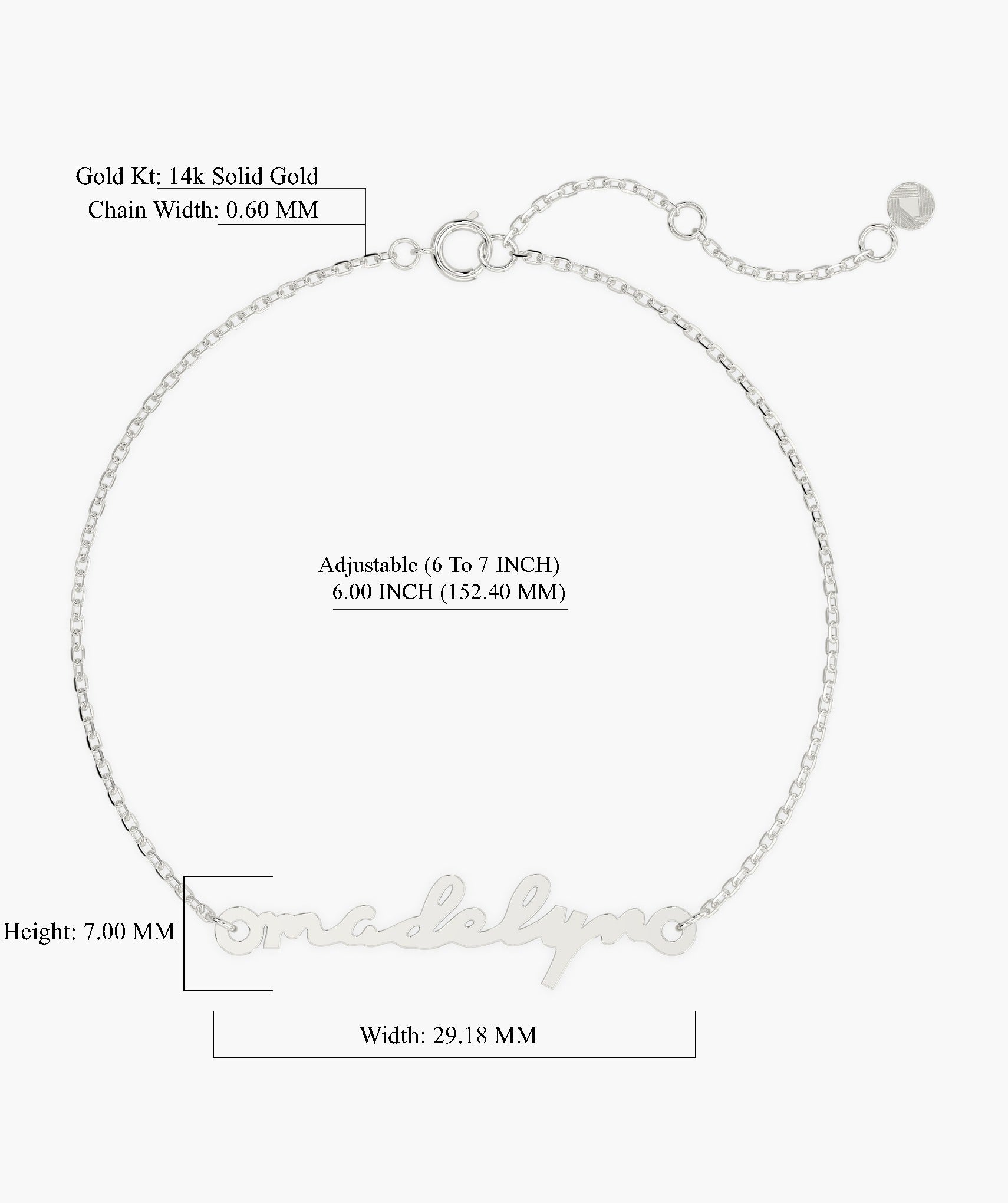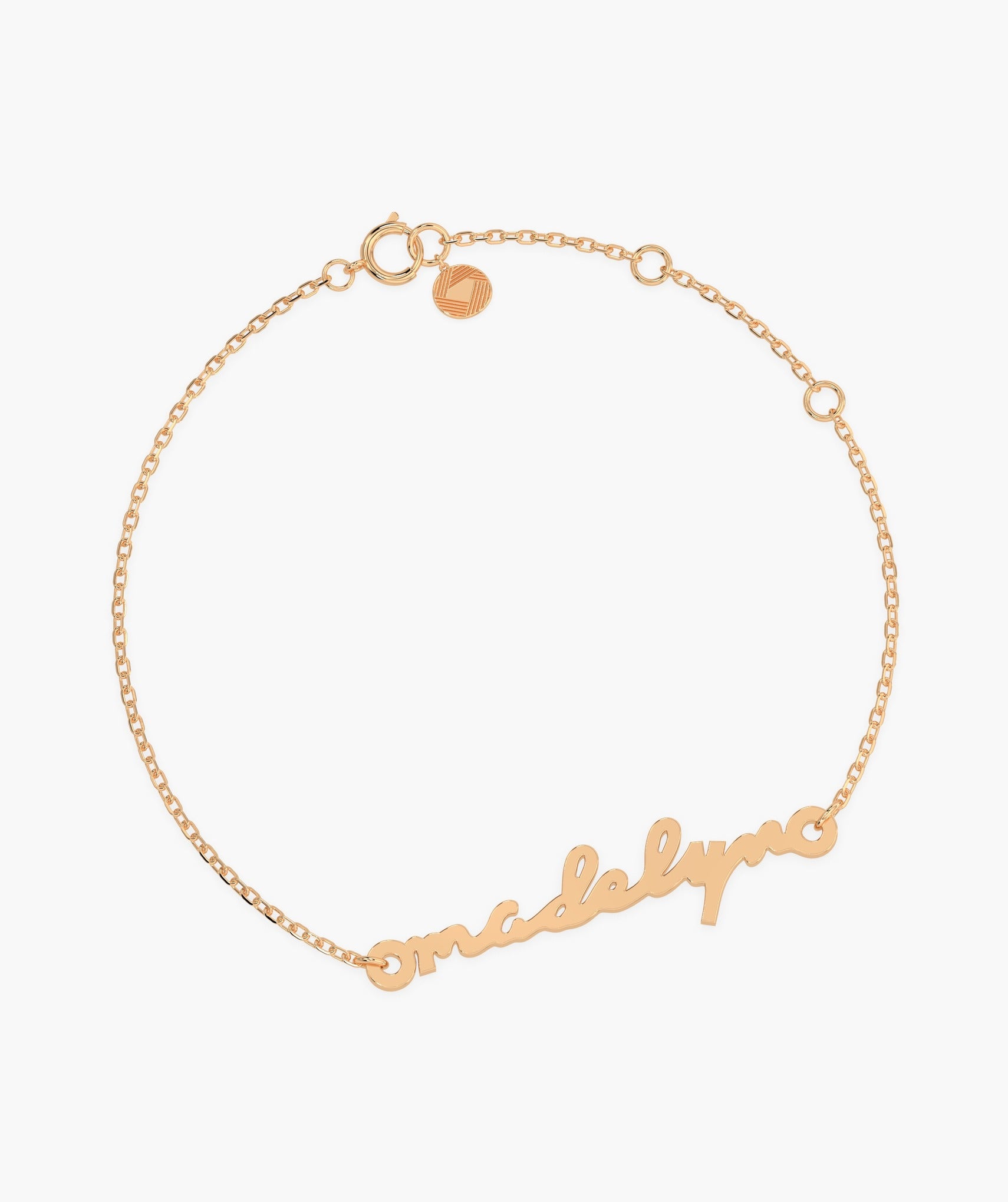Elegantly crafted, this 14K gold bracelet features the name 'madelynn' in a beautiful cursive script.