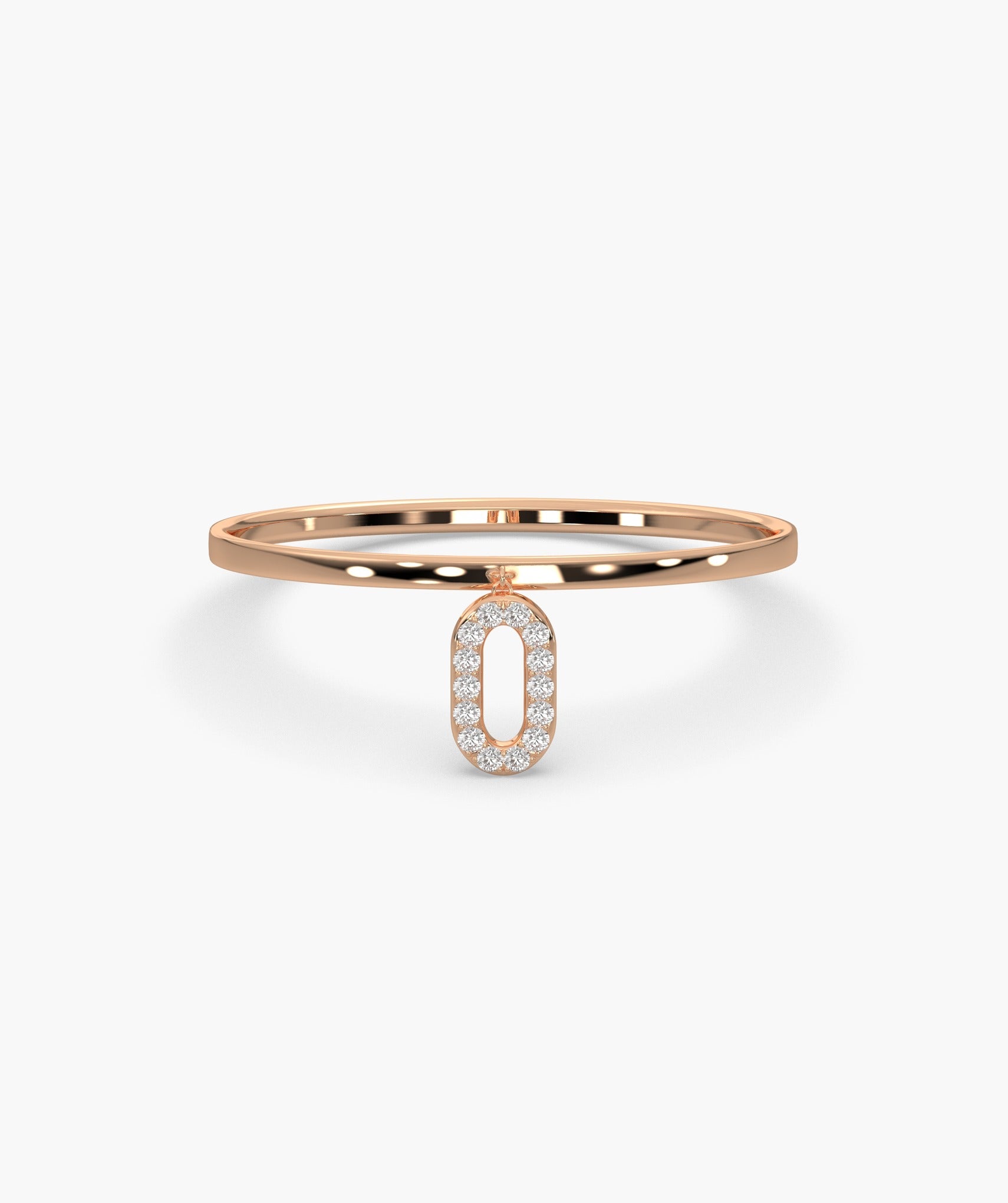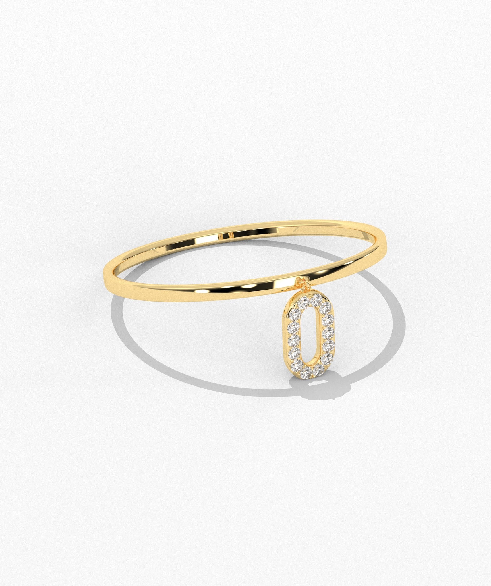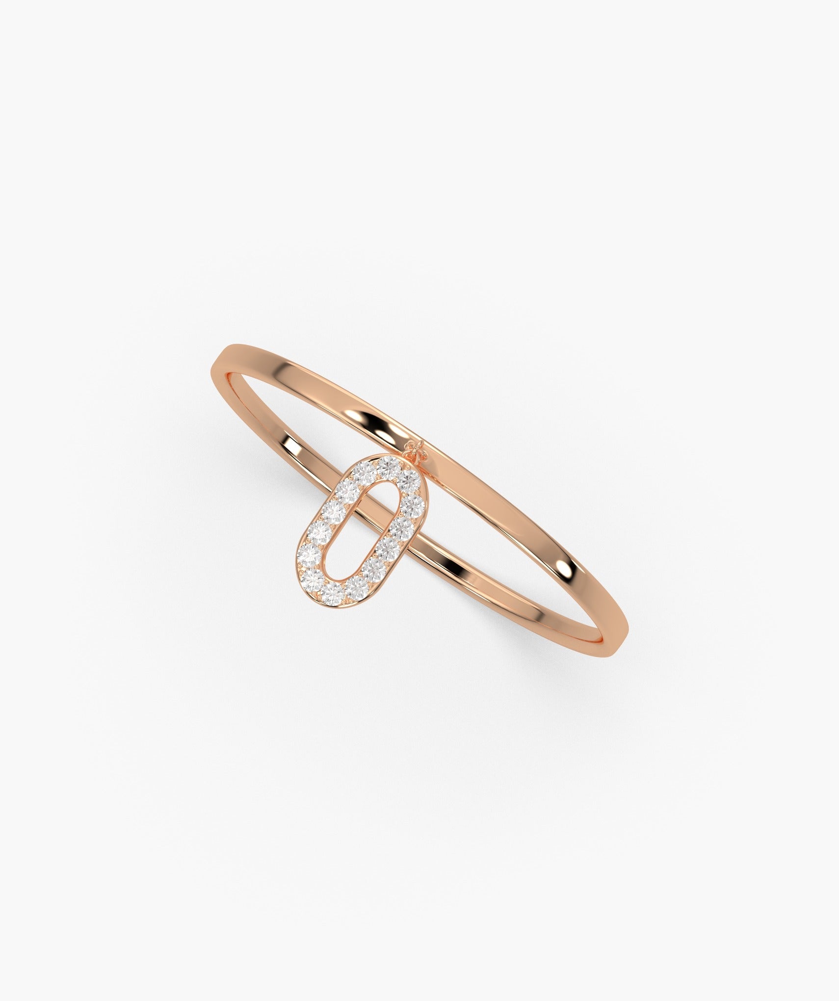 A 14K gold ring with a sparkling pavé diamond link charm, offering a blend of classic elegance and contemporary design.