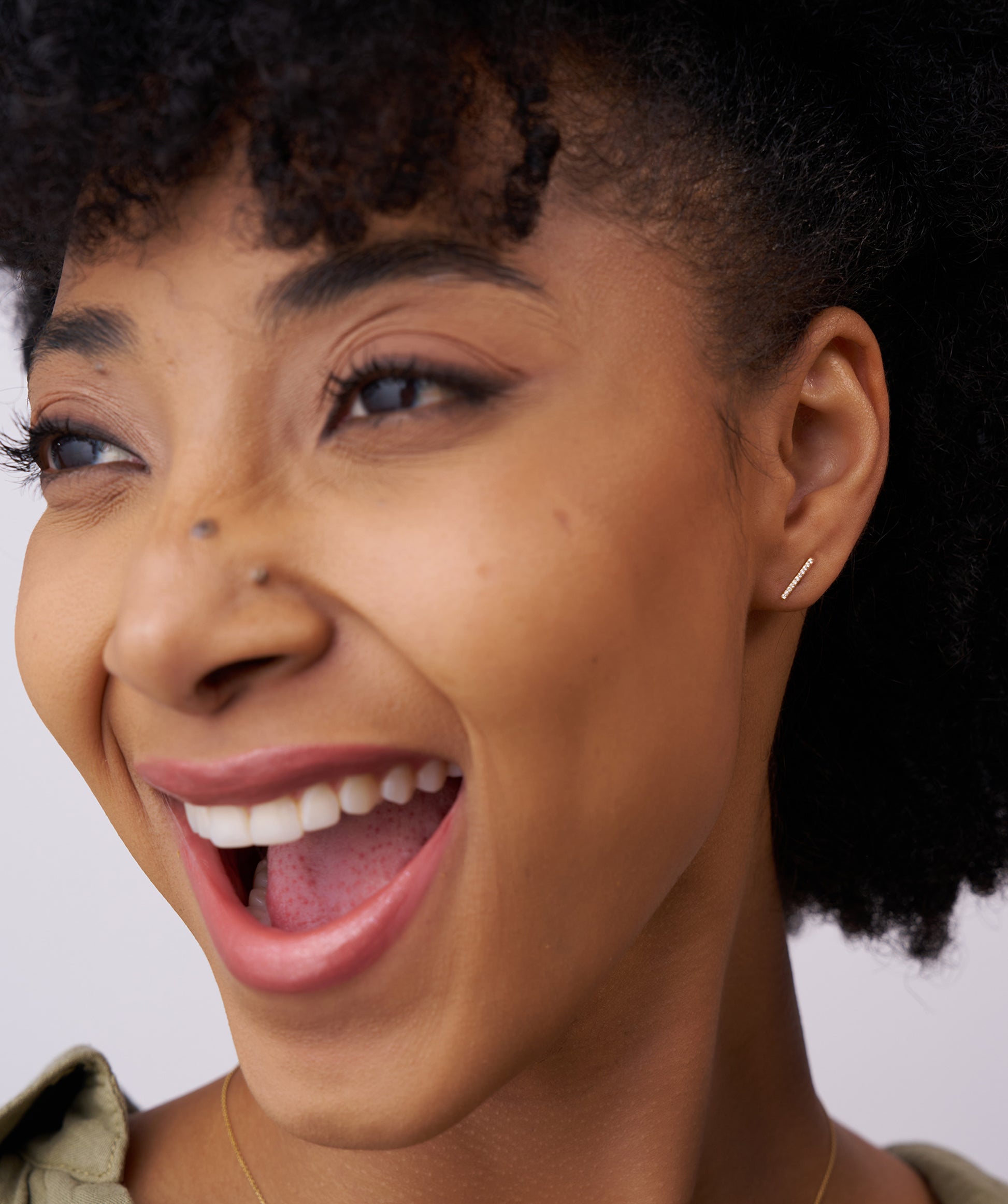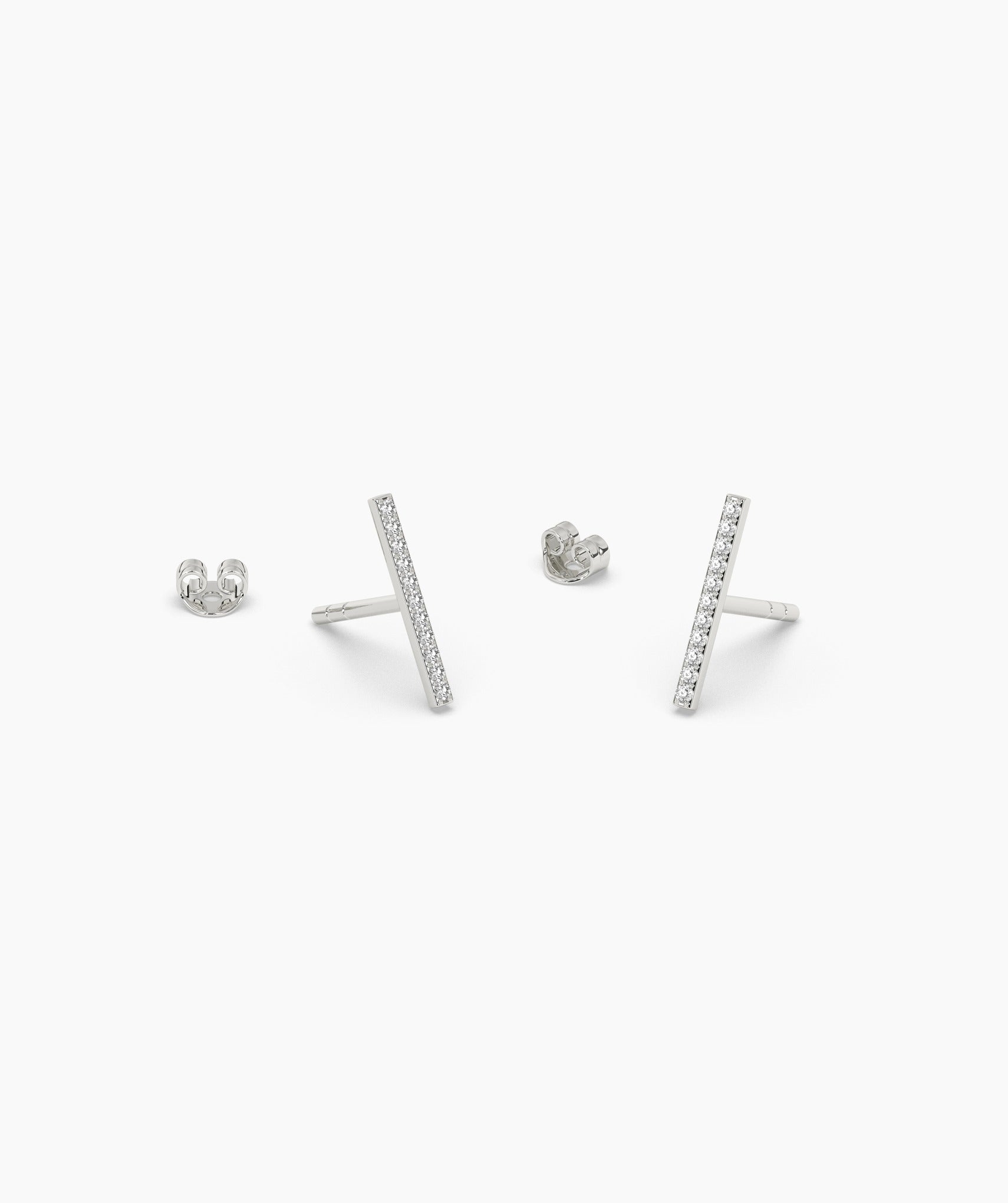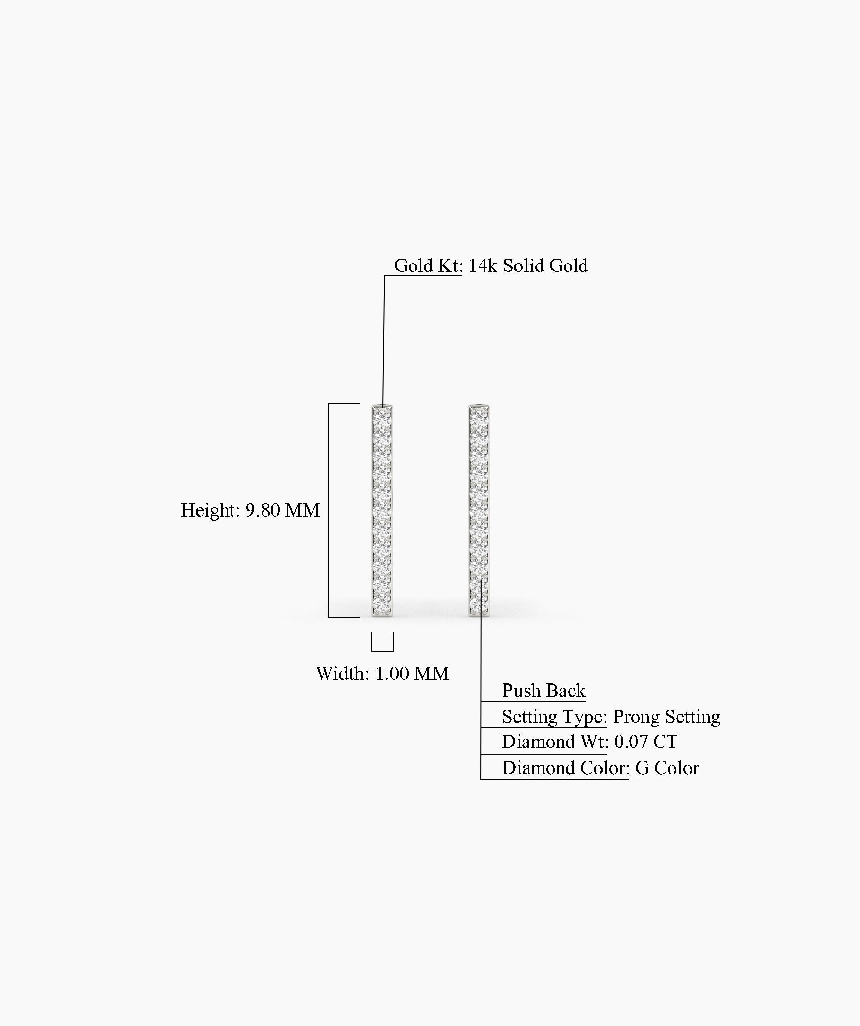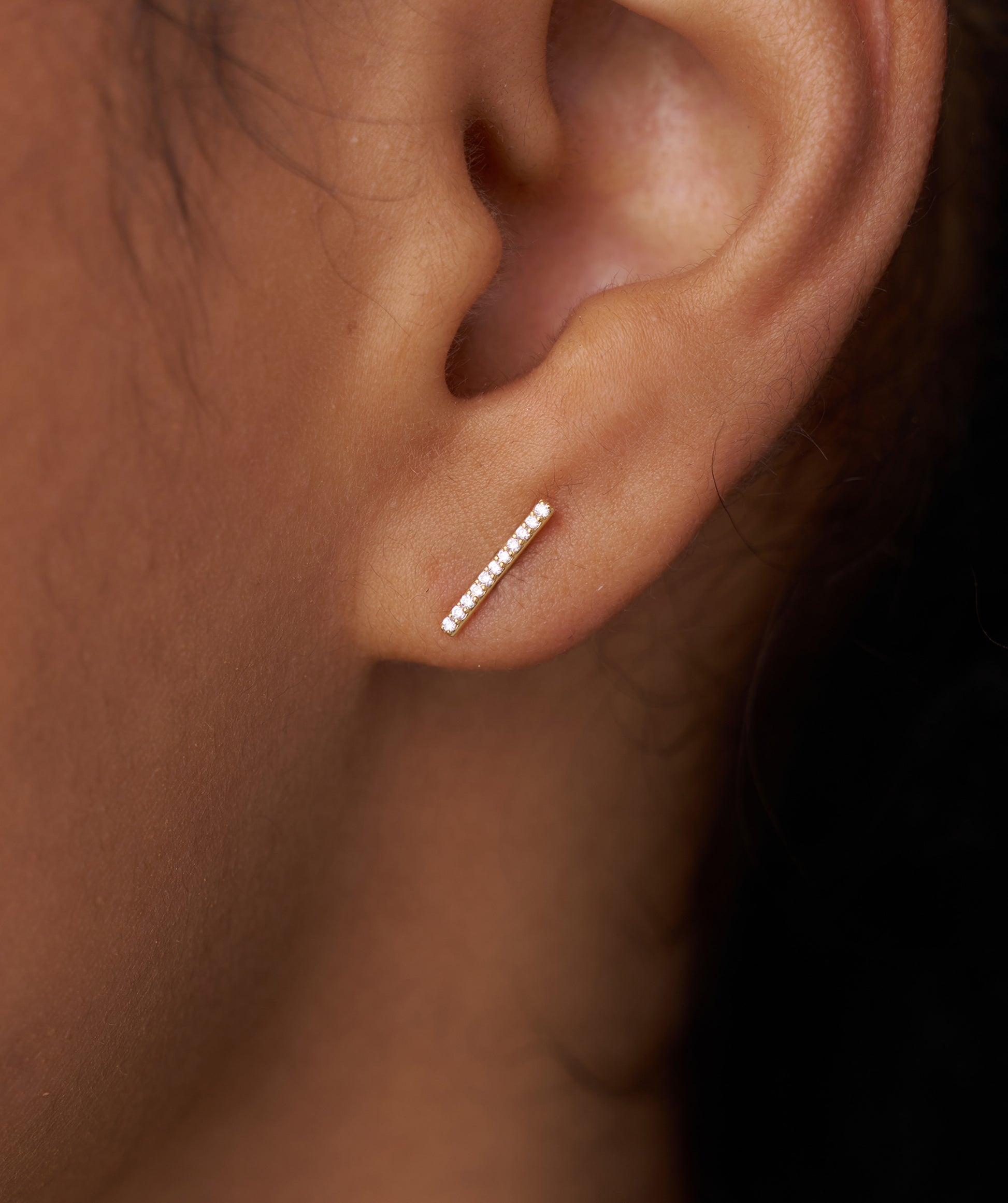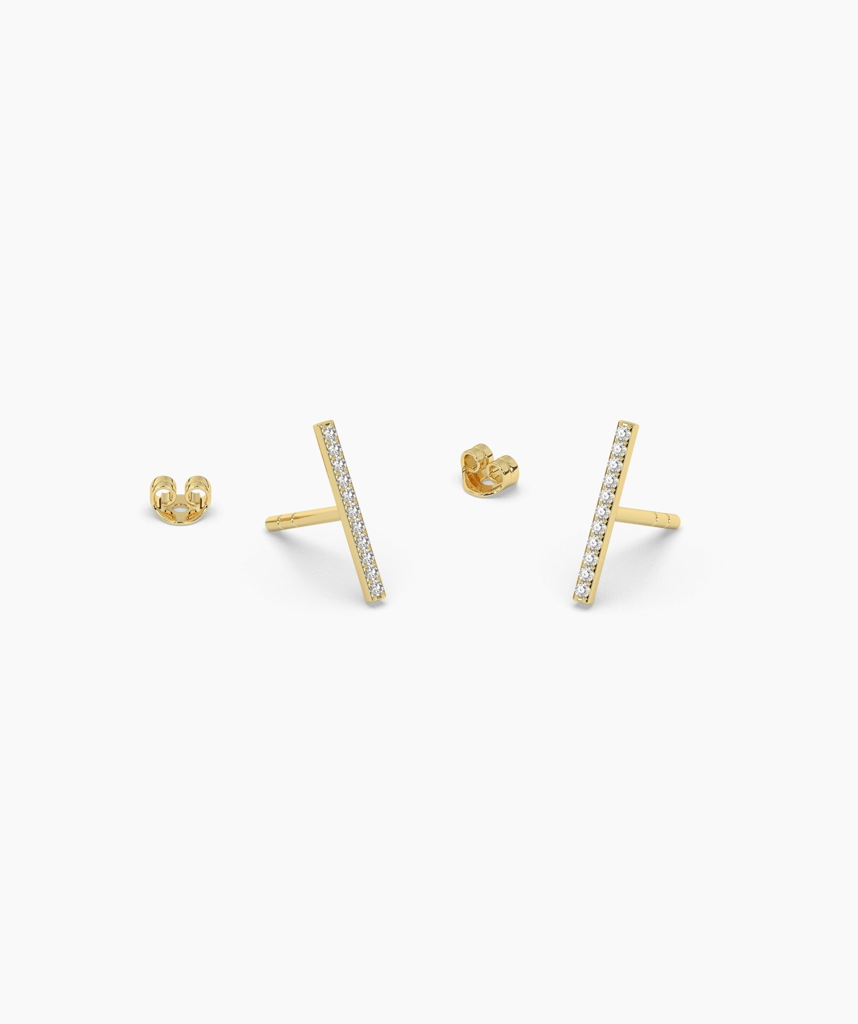 Crafted in 14K gold with dazzling pave-set diamonds, these vertical bar stud earrings are perfect for a chic, modern look.
