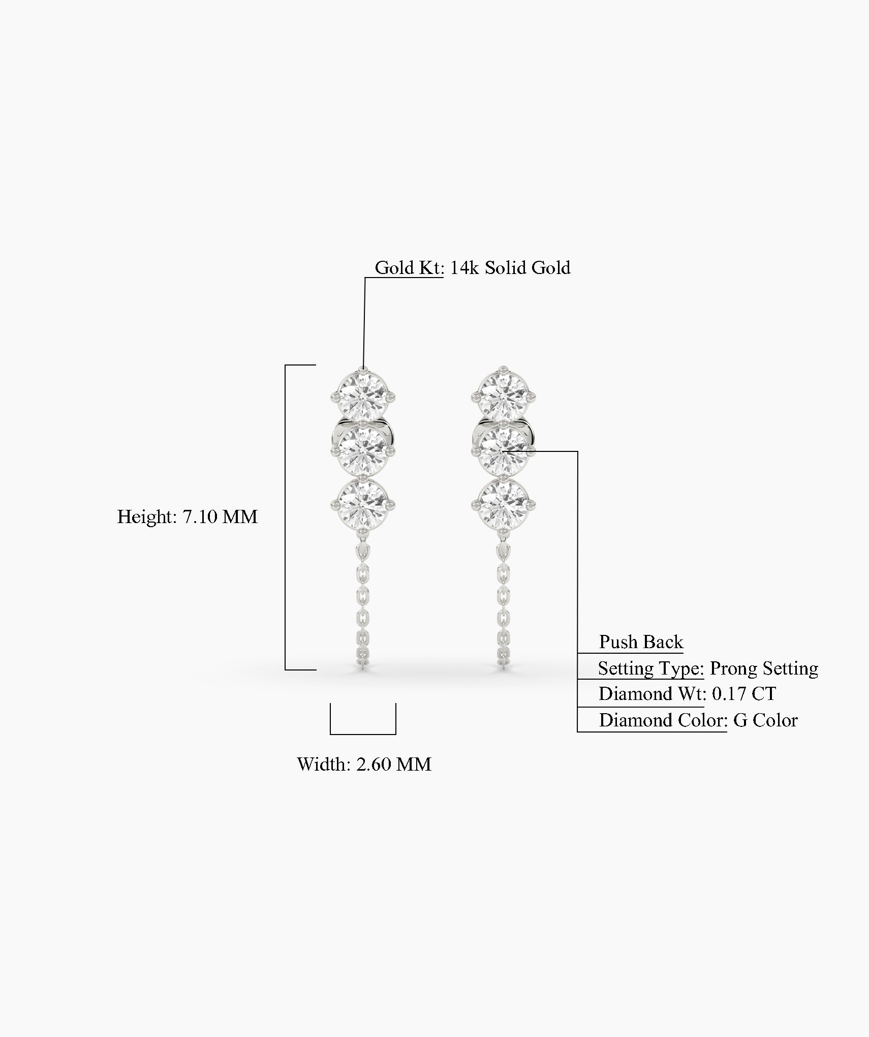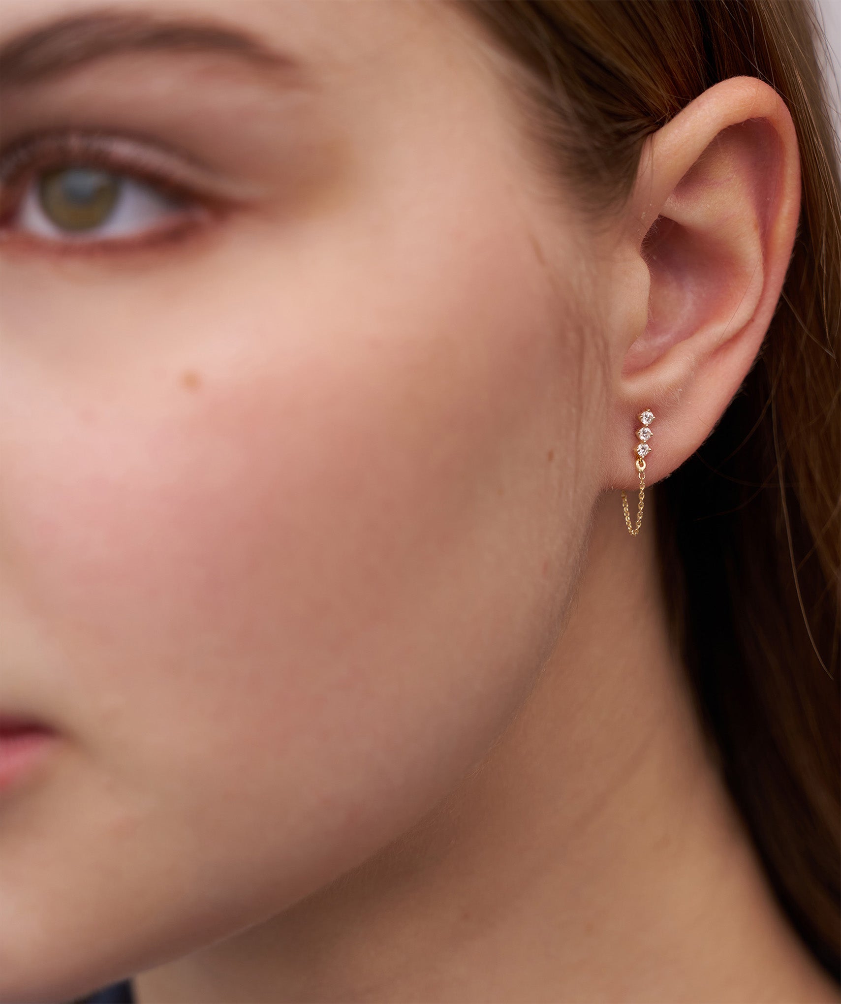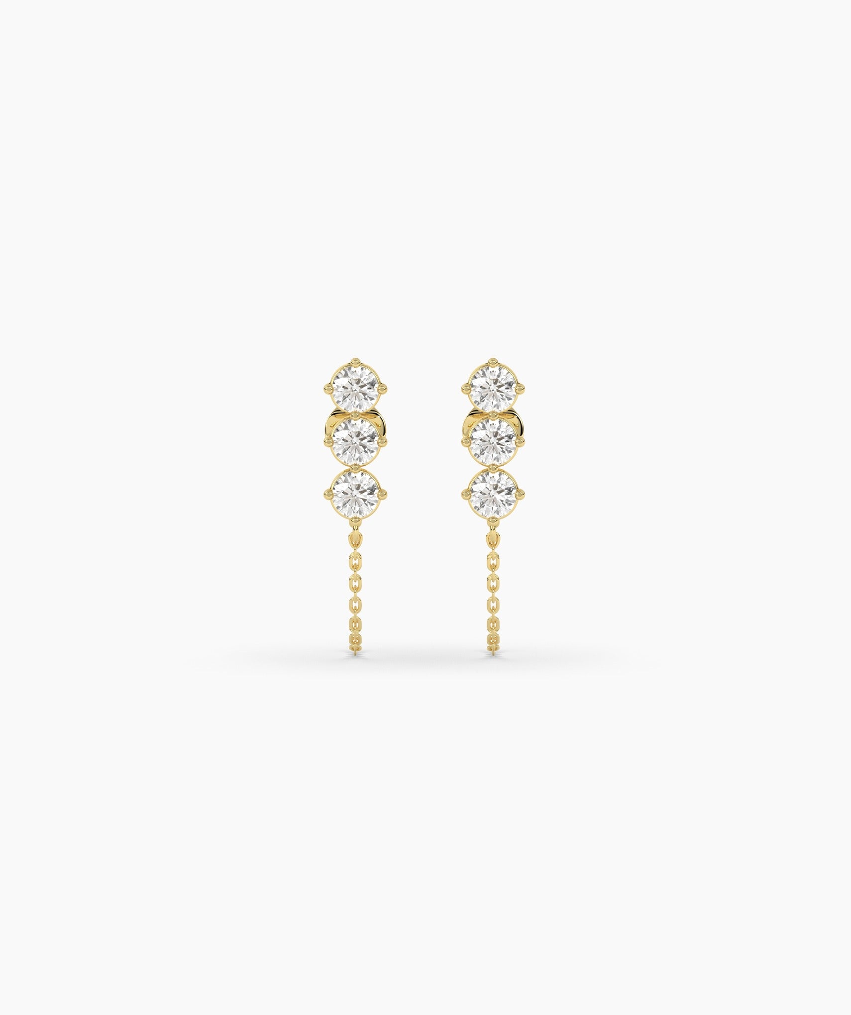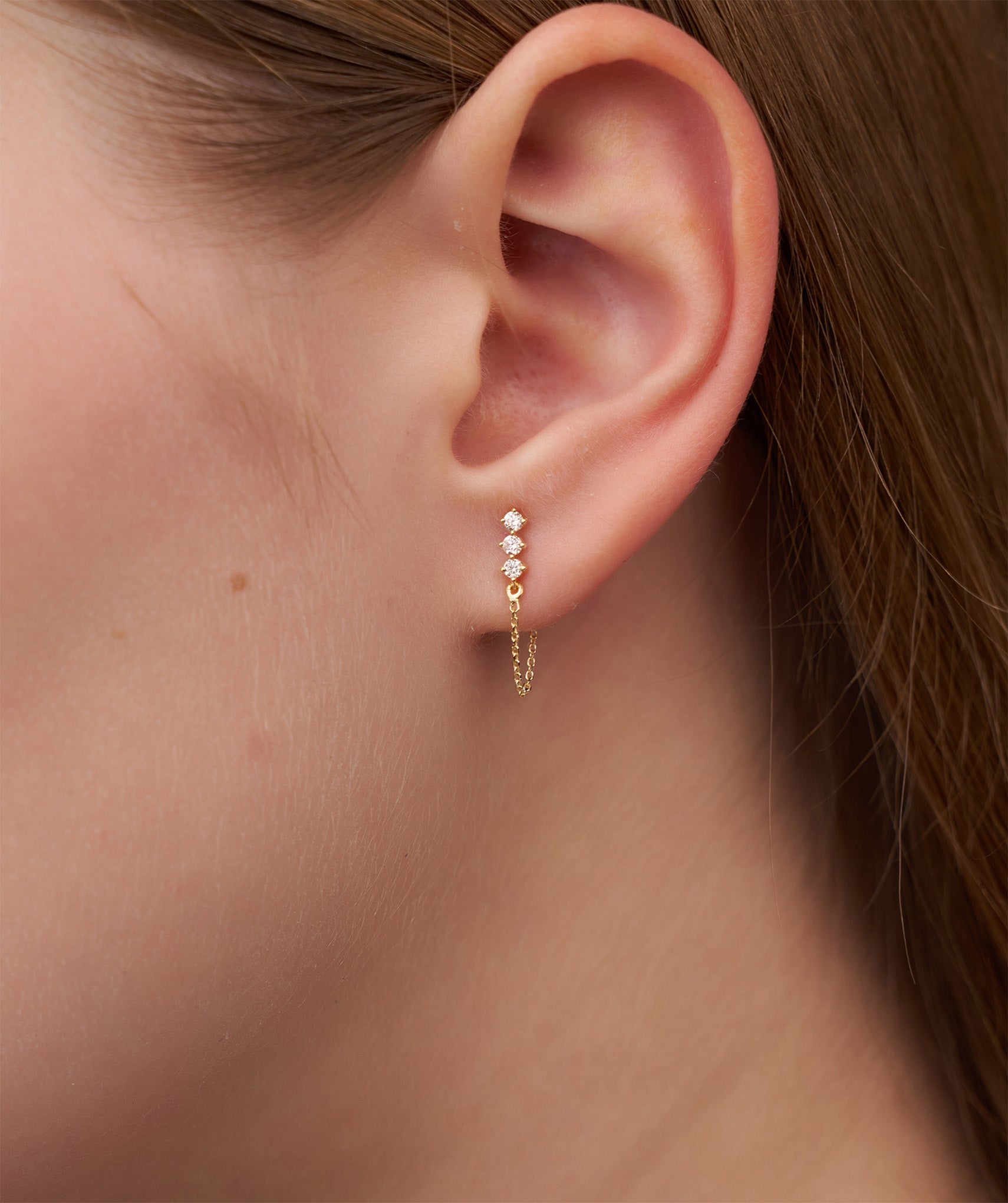 Crafted in solid 14K gold, these chic earrings showcase three sparkling diamonds with a dainty chain accent for an elegant, modern touch.