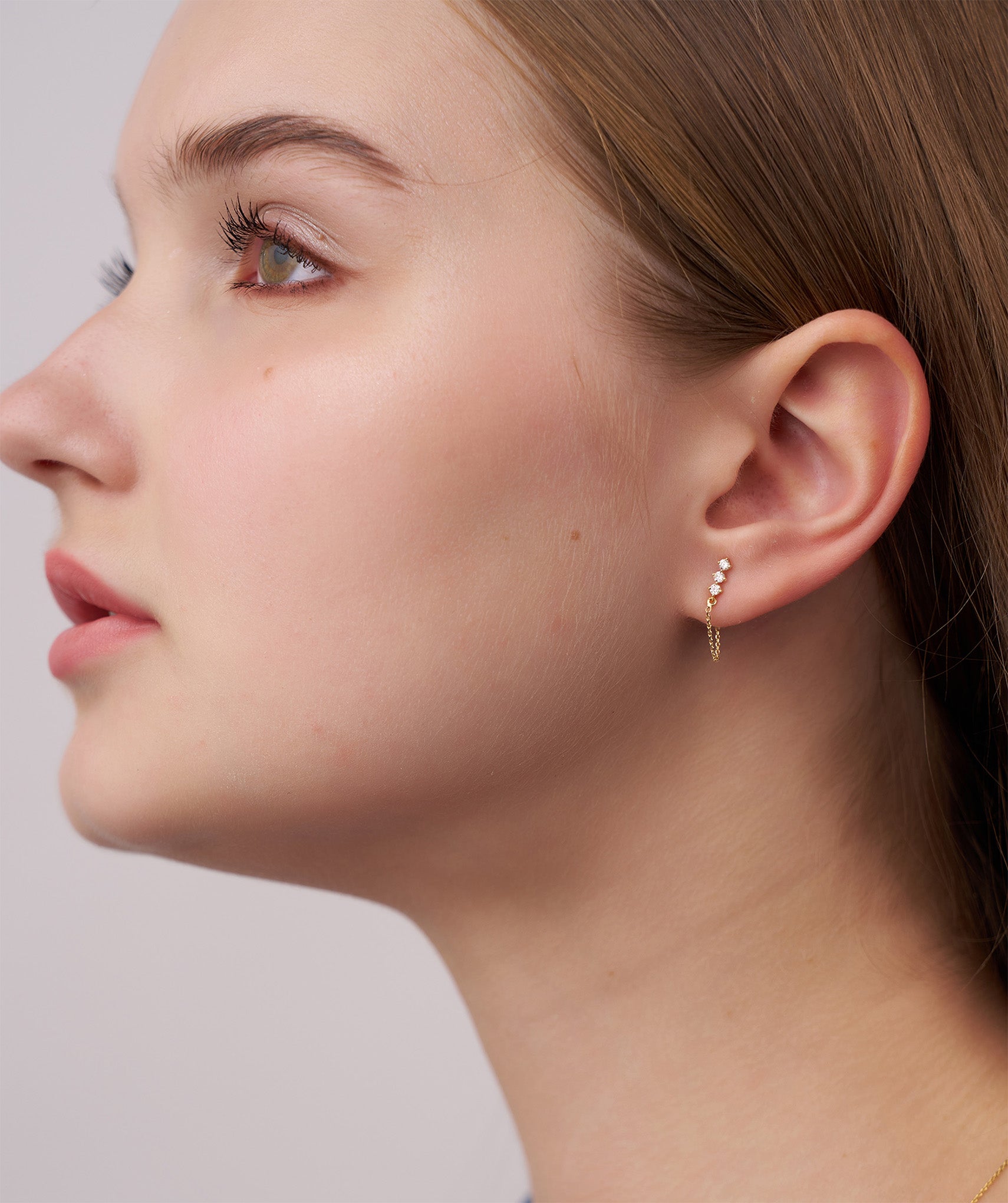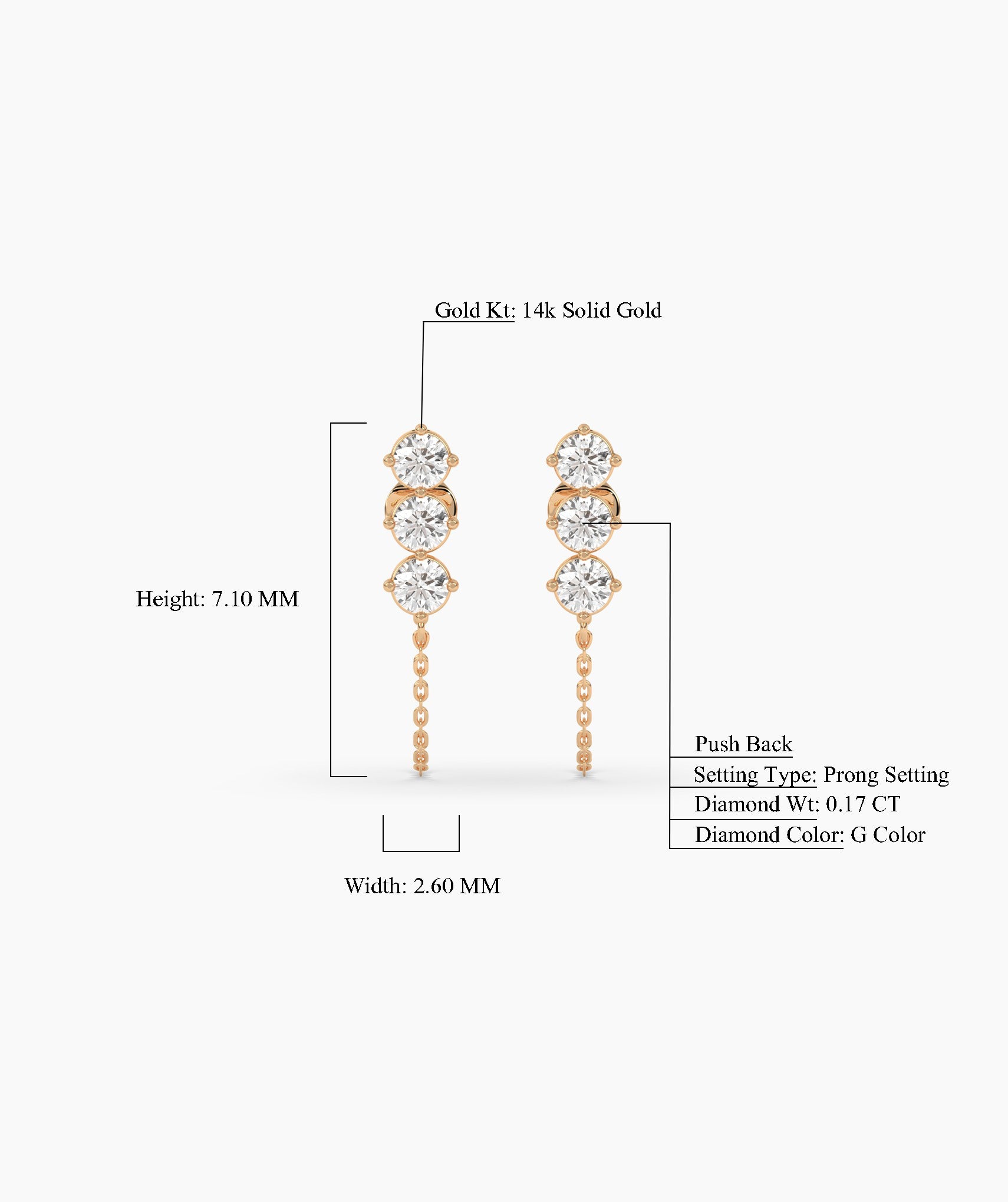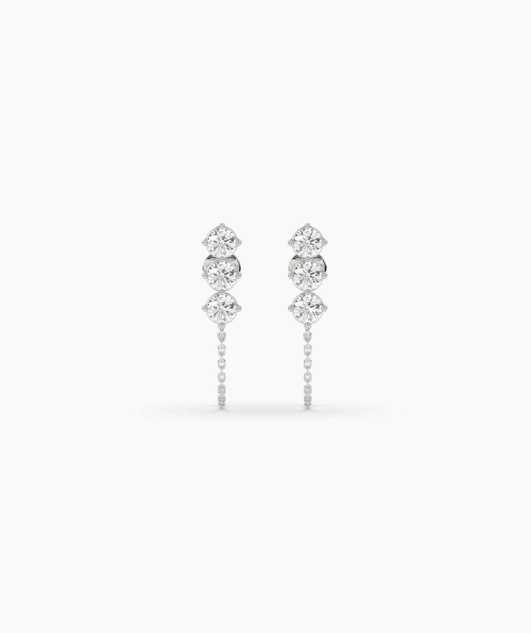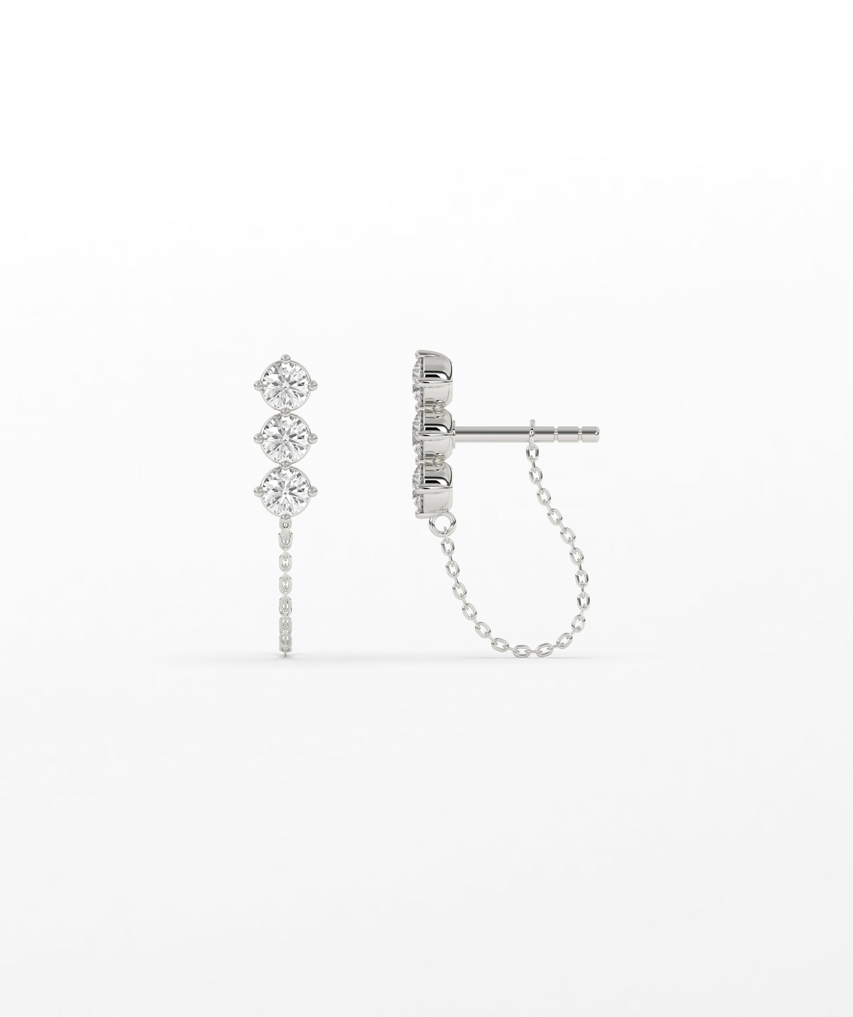 Crafted in solid 14K gold, these chic earrings showcase three sparkling diamonds with a dainty chain accent for an elegant, modern touch.