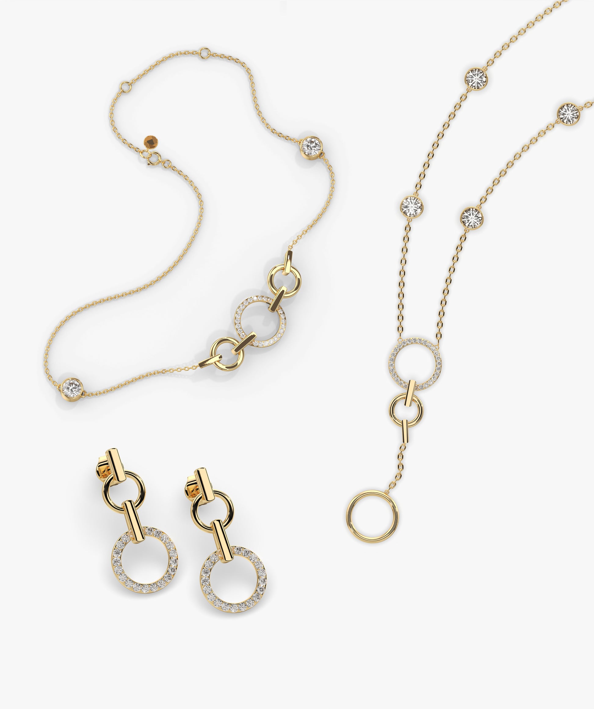 Gold and Diamond Circle Drop Earrings