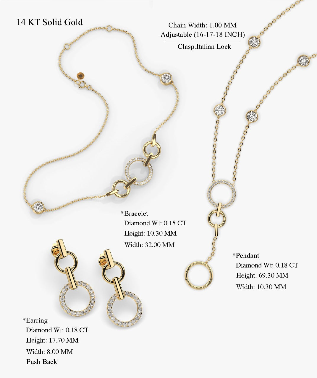 This elegant 14k solid gold jewelry set includes a diamond circle pendant necklace and matching earrings, each adorned with natural round-cut diamonds. With a sleek, minimalist design and an adjustable 16–18 inch chain, it’s perfect for everyday wear or as a meaningful gift for birthdays, anniversaries, or bridesmaids.