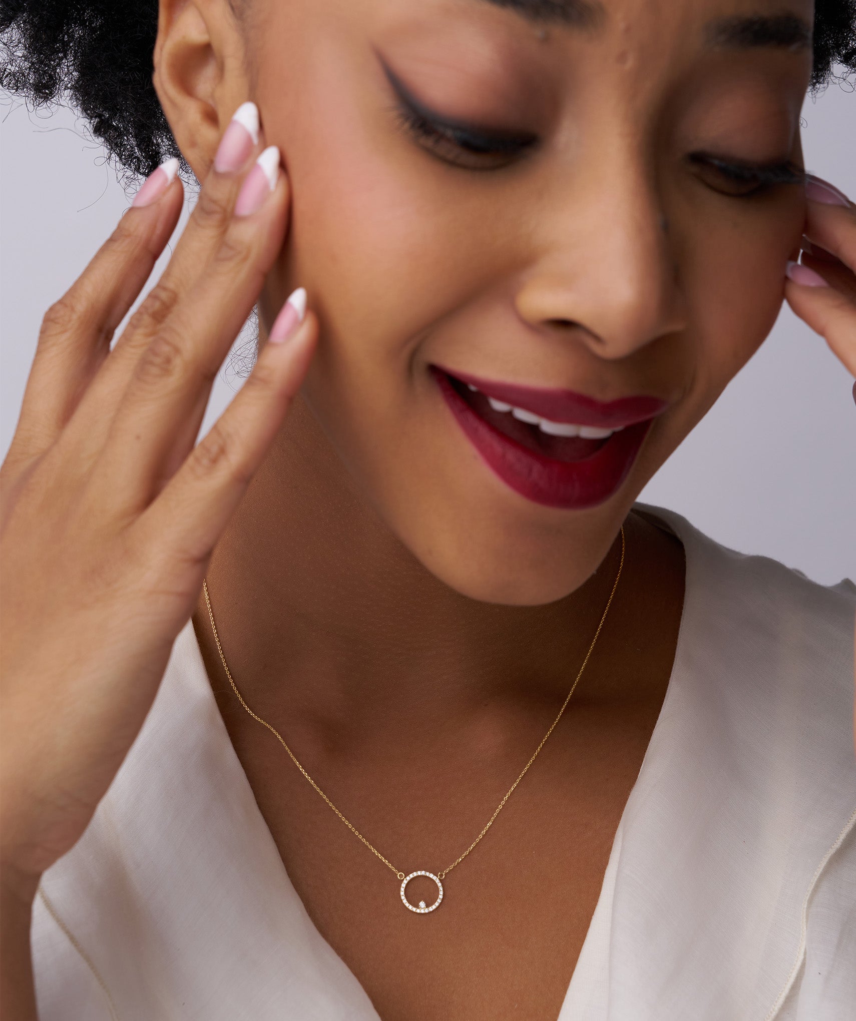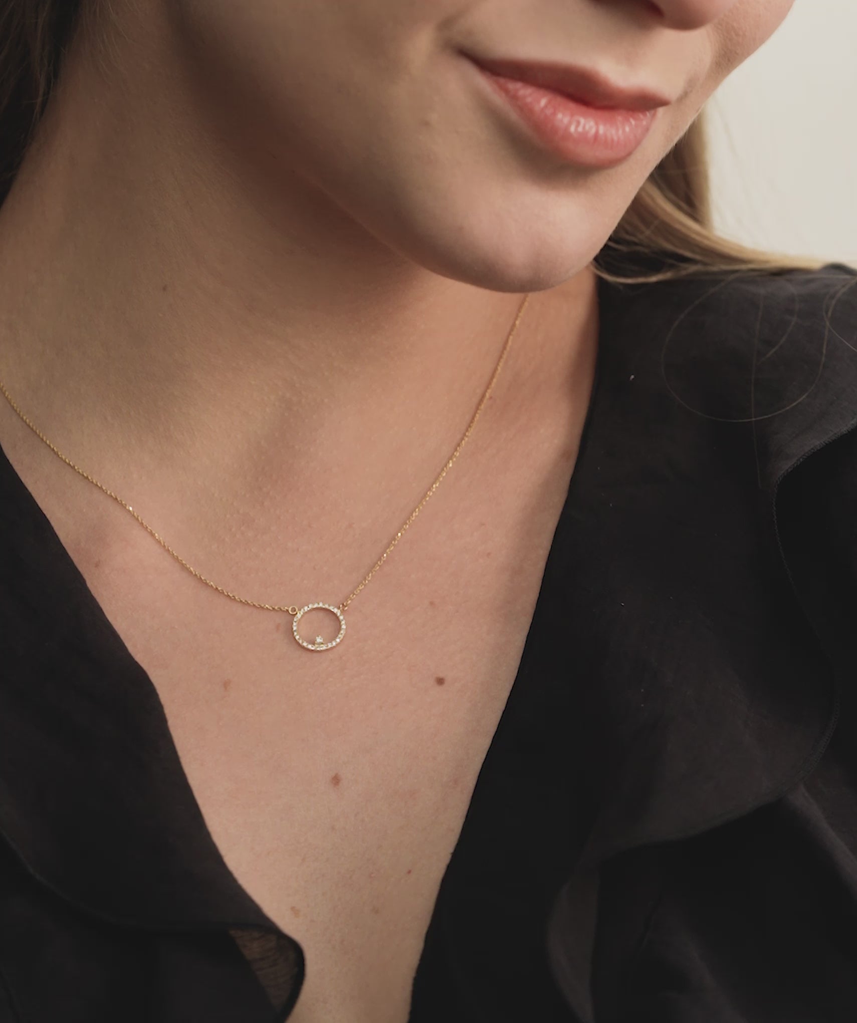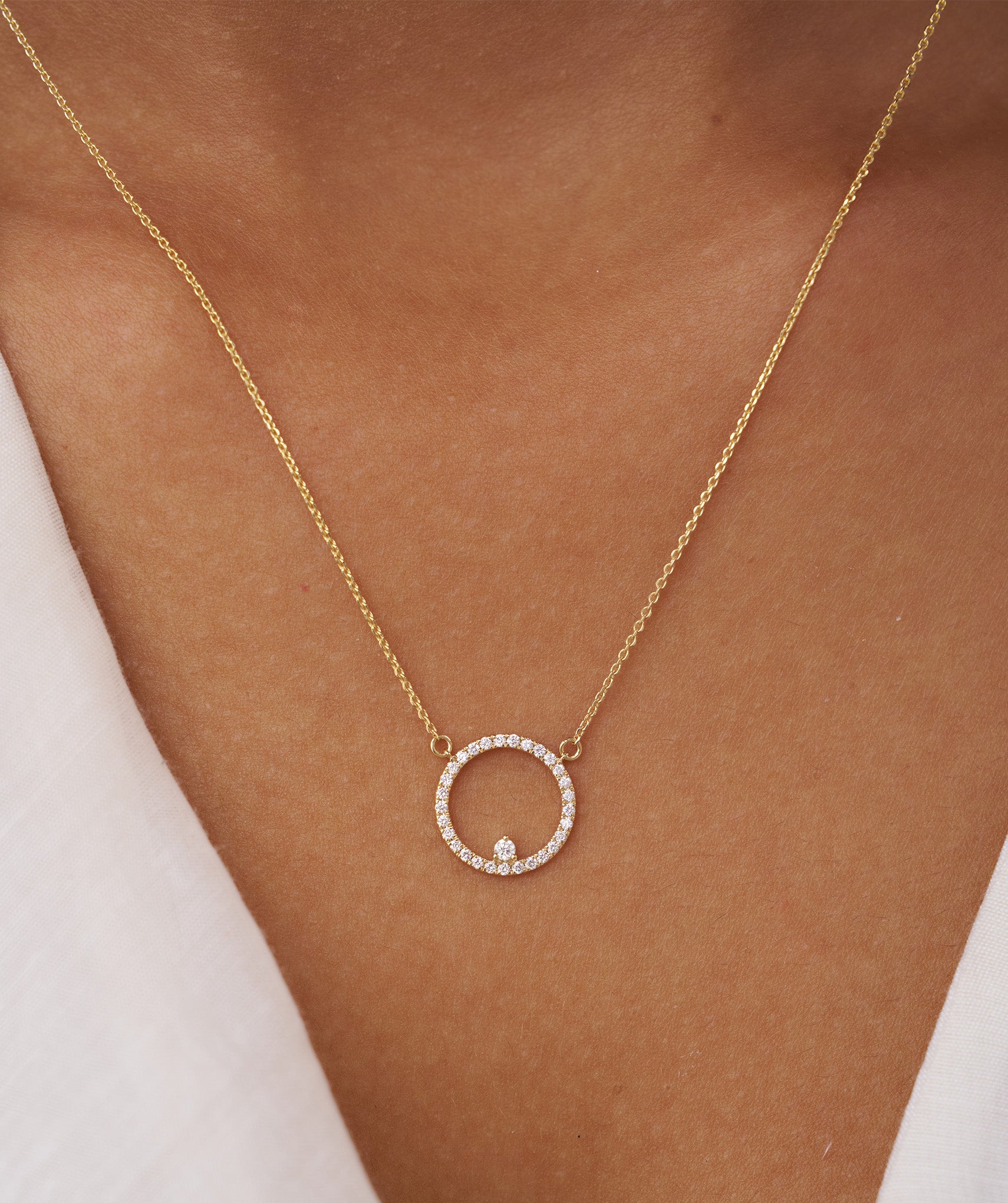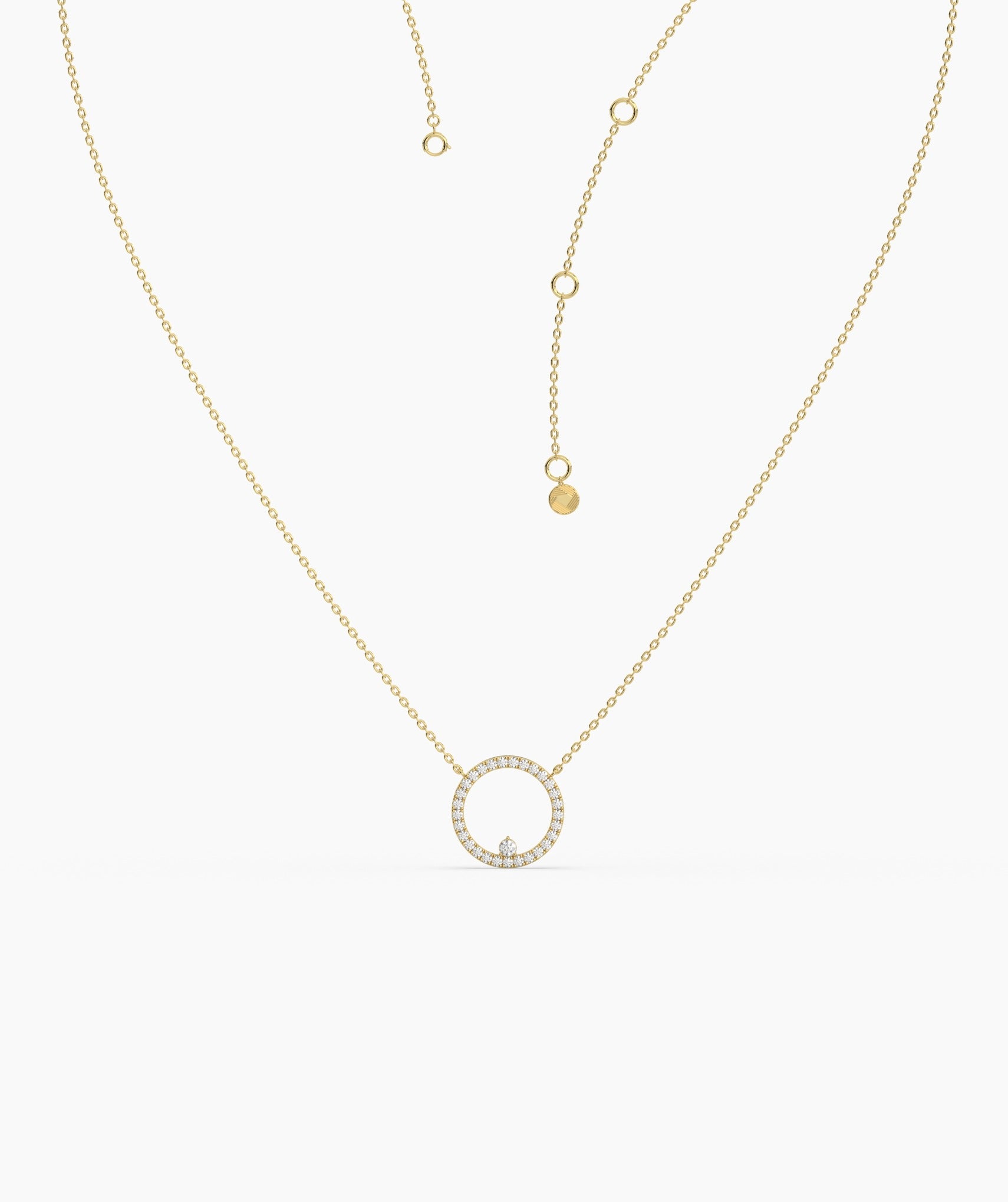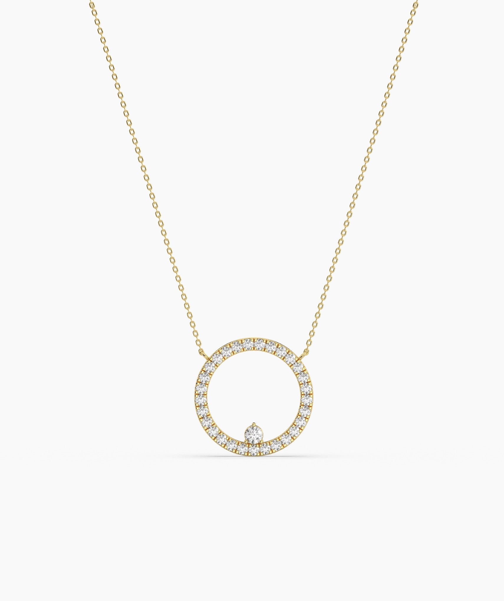 Diamond Halo Circle Pendant Necklace