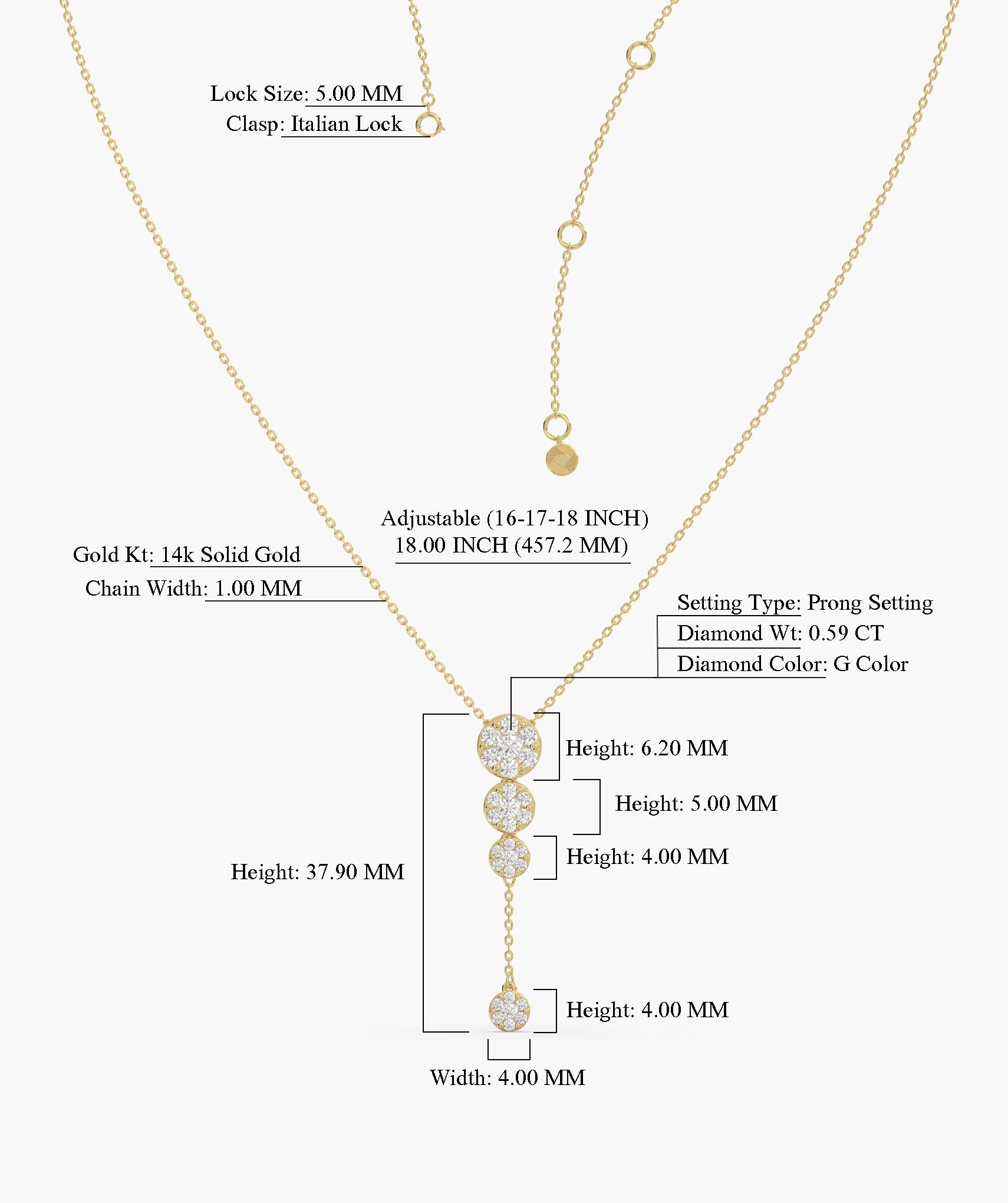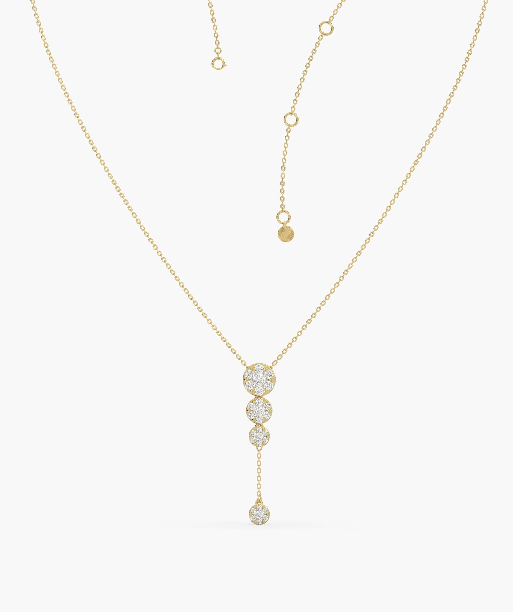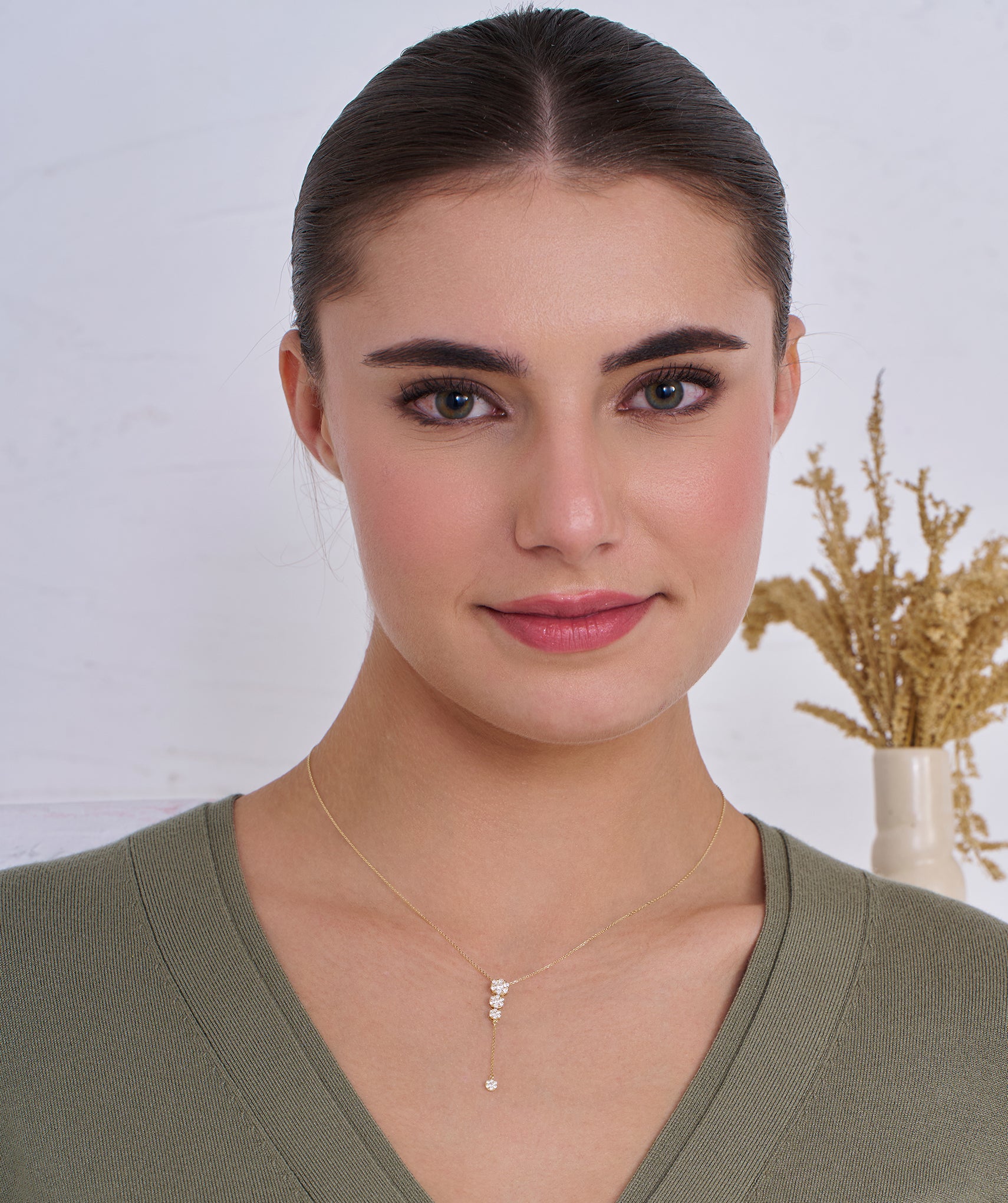 Grace your neckline with the timeless elegance of this 14K solid gold necklace, featuring a vertical sequence of dazzling diamonds.