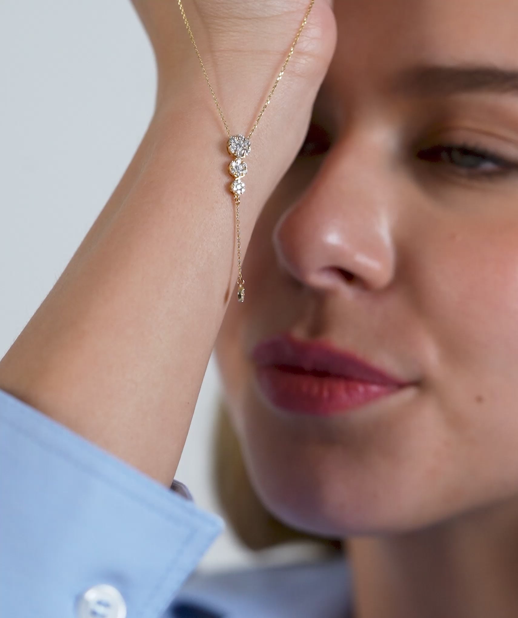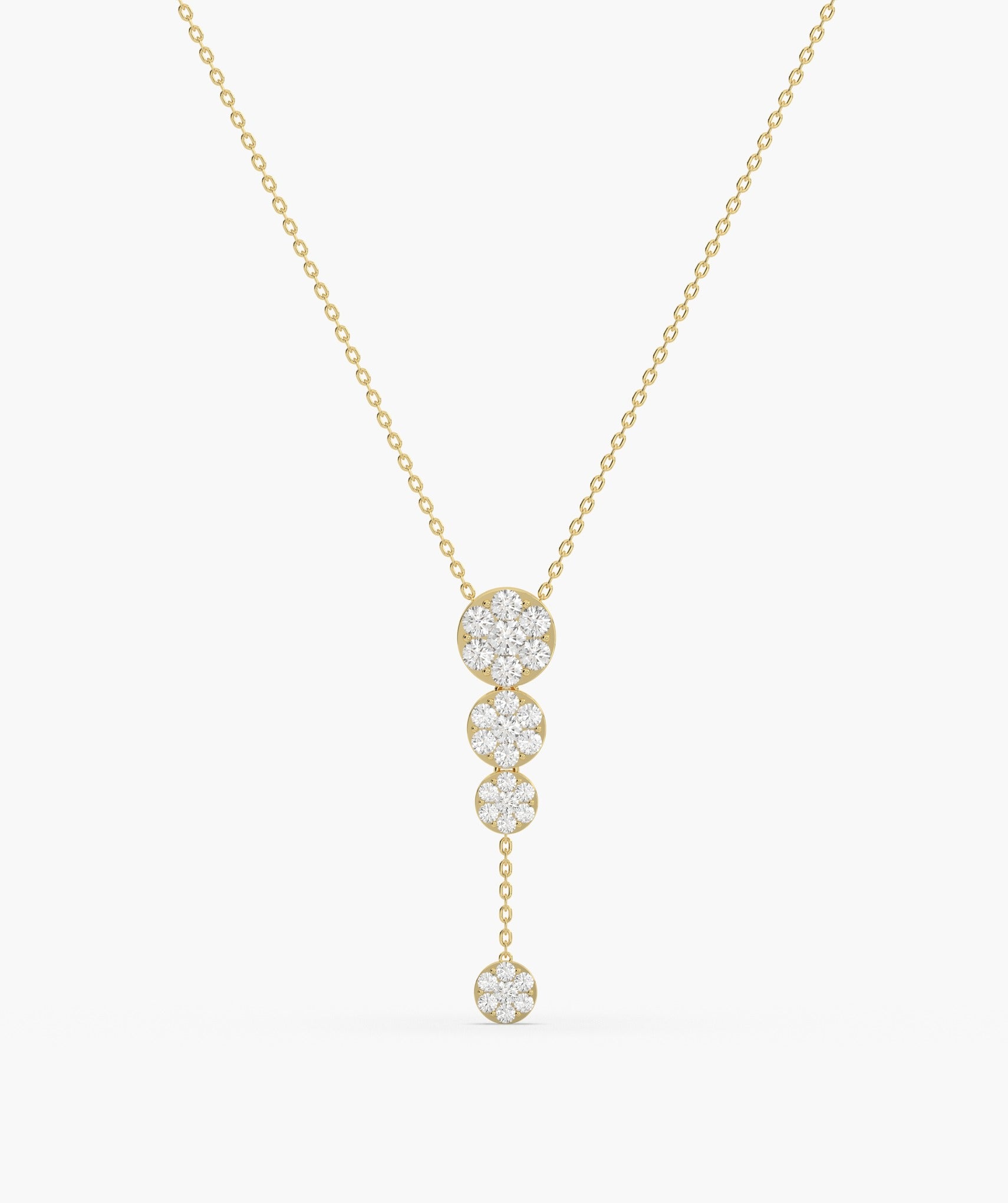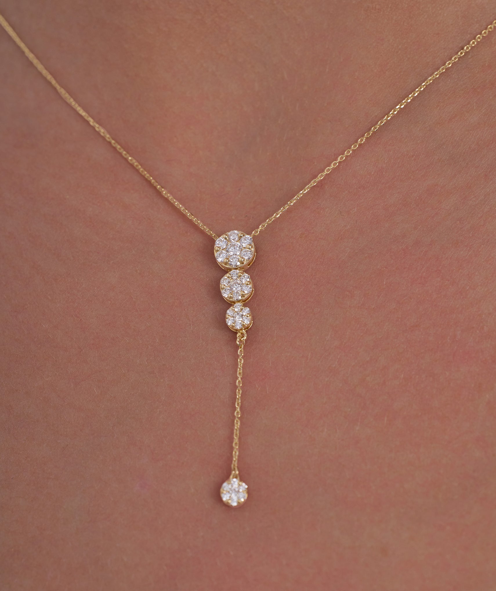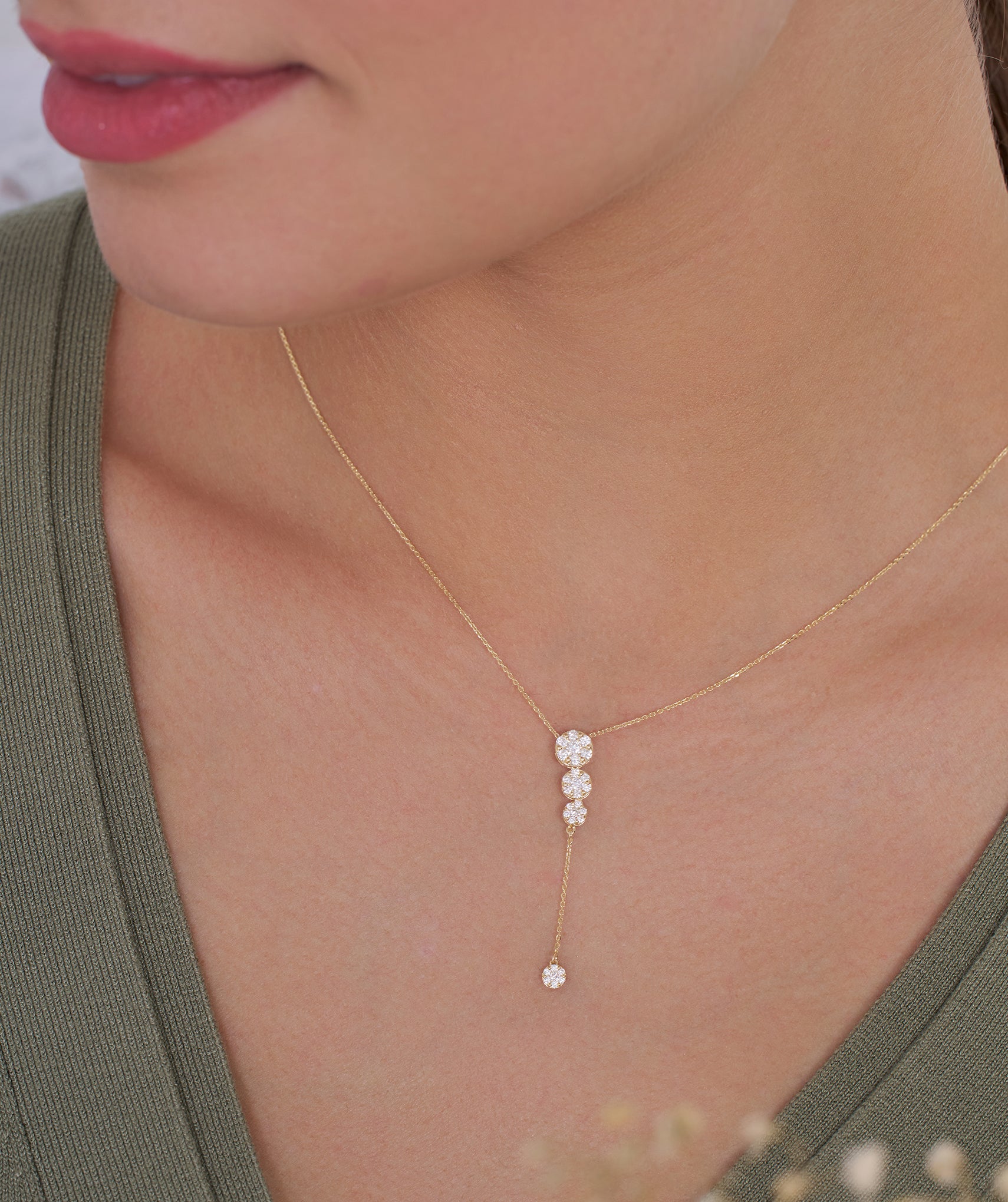 Grace your neckline with the timeless elegance of this 14K solid gold necklace, featuring a vertical sequence of dazzling diamonds.