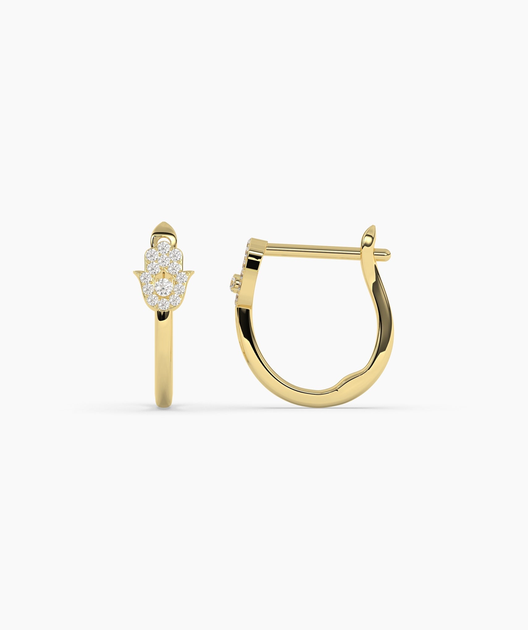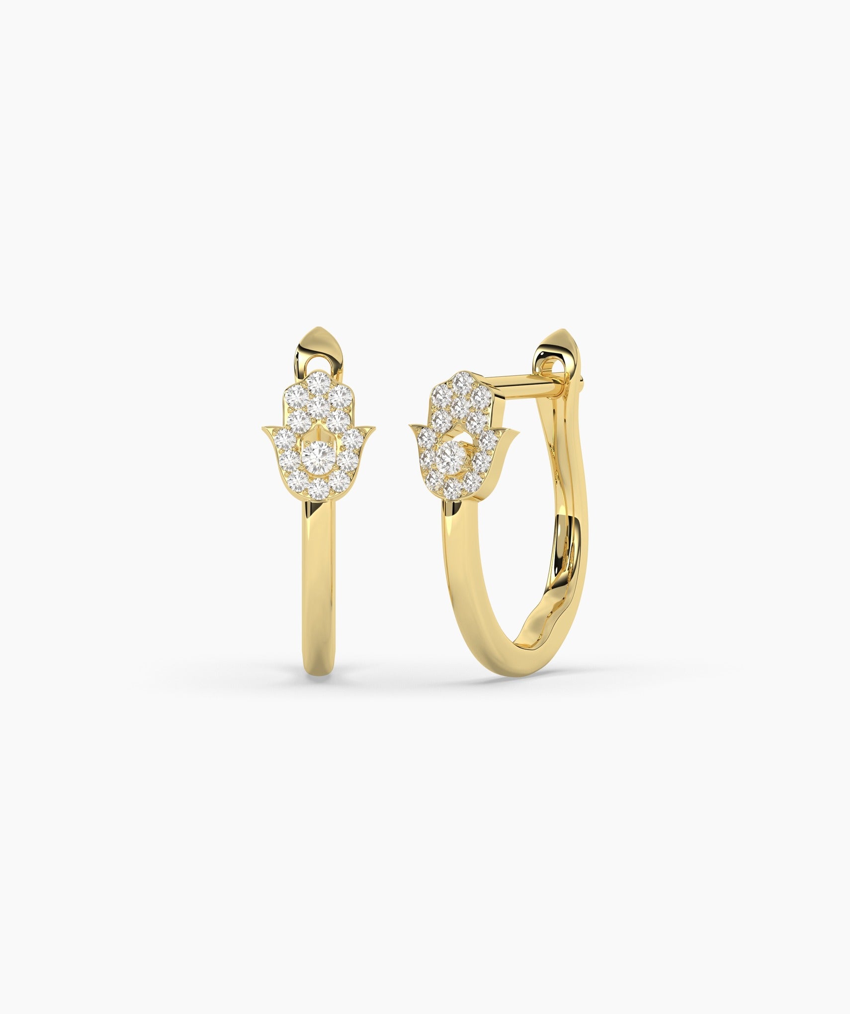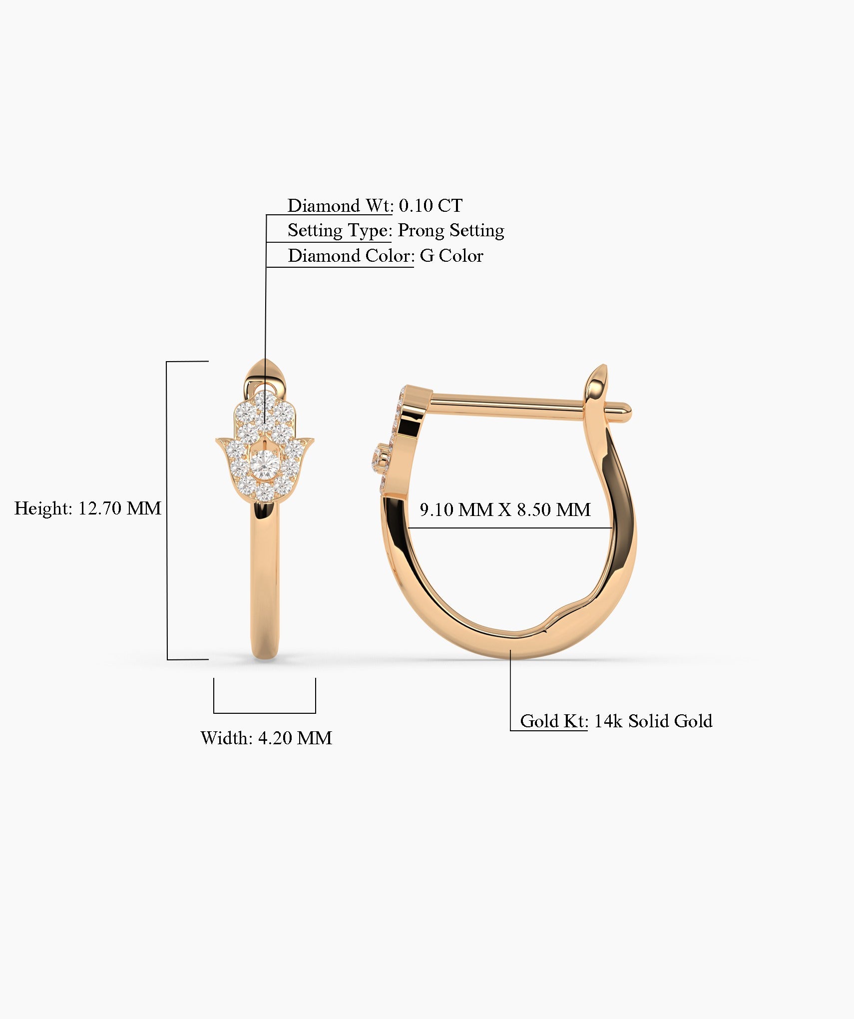 Minimalist yet luxurious, these diamond Hamsa hoop earrings in solid 14K gold add a timeless charm to your collection.