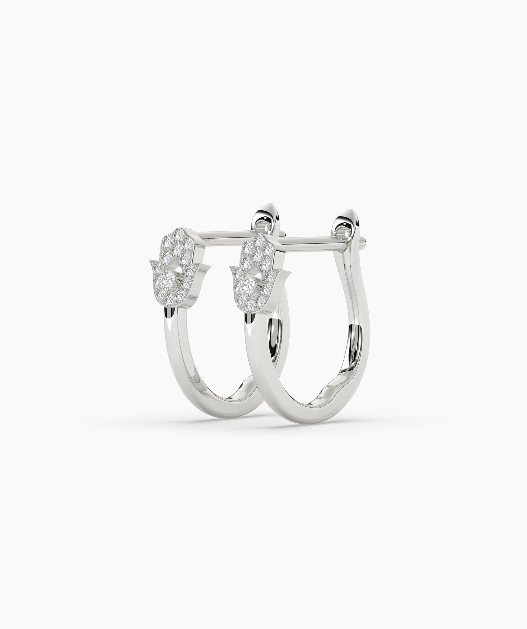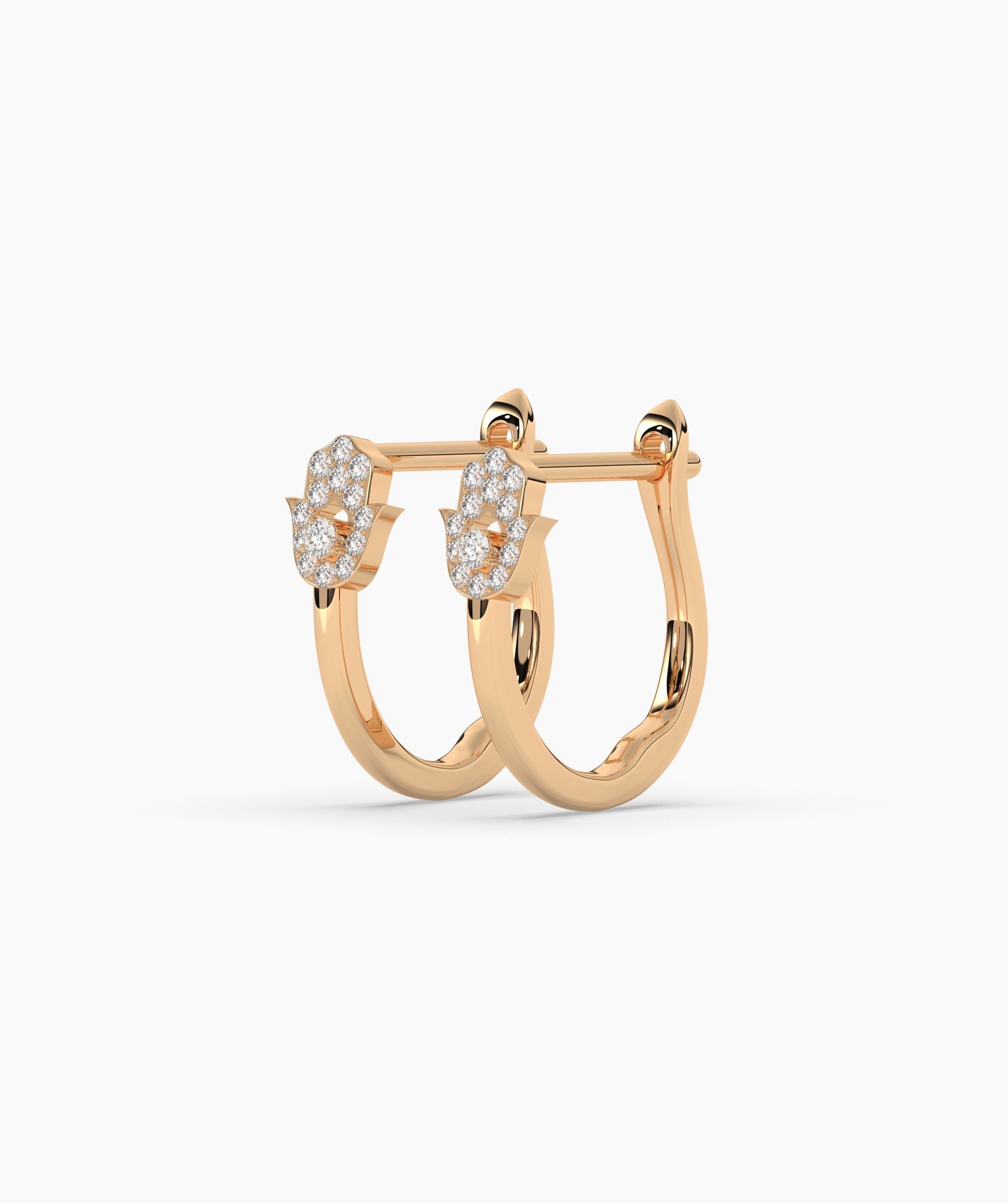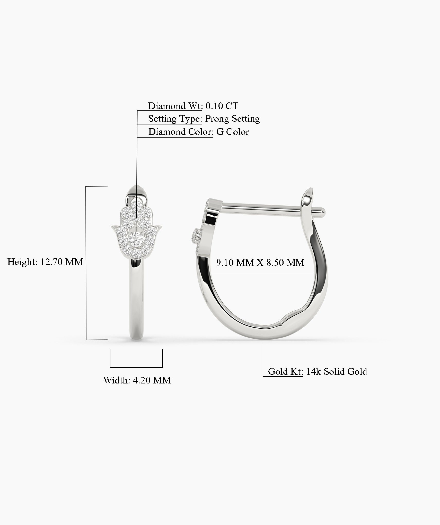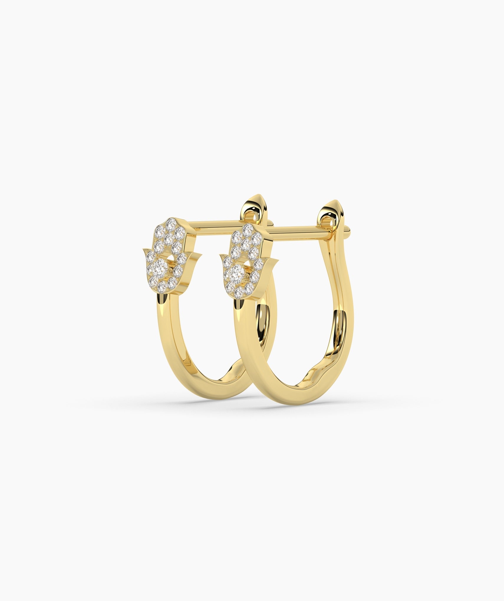 Minimalist yet luxurious, these diamond Hamsa hoop earrings in solid 14K gold add a timeless charm to your collection.