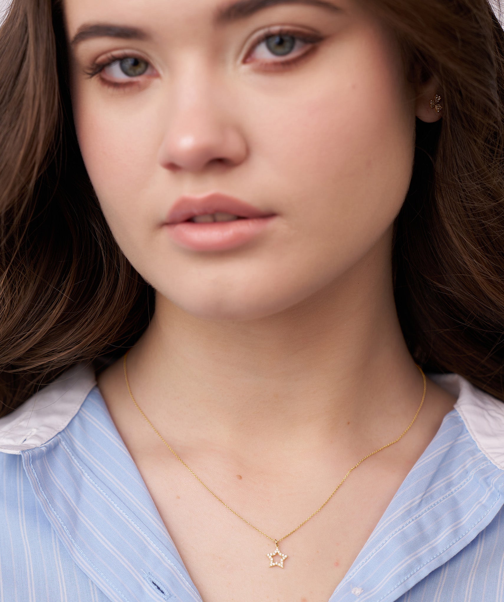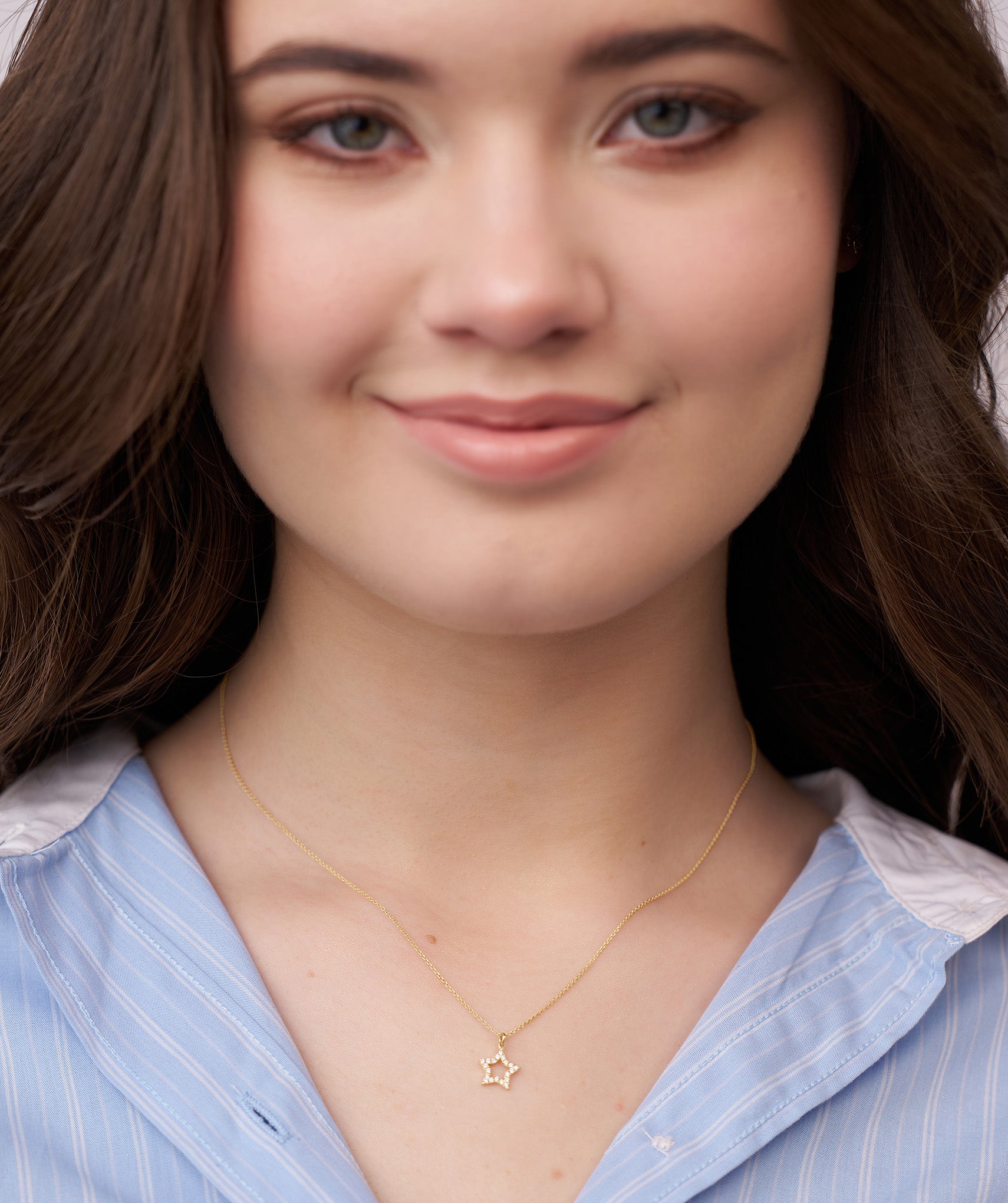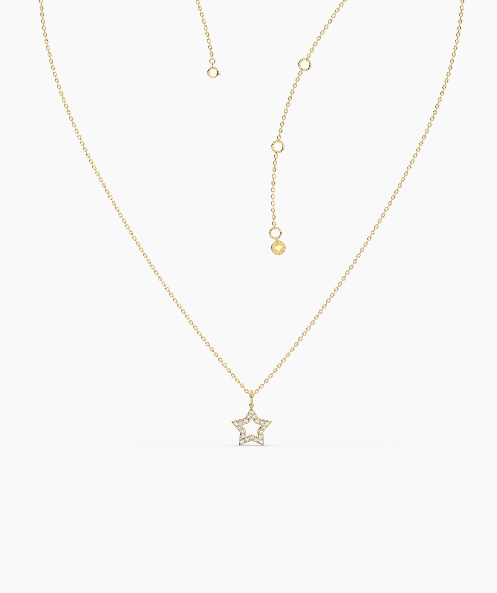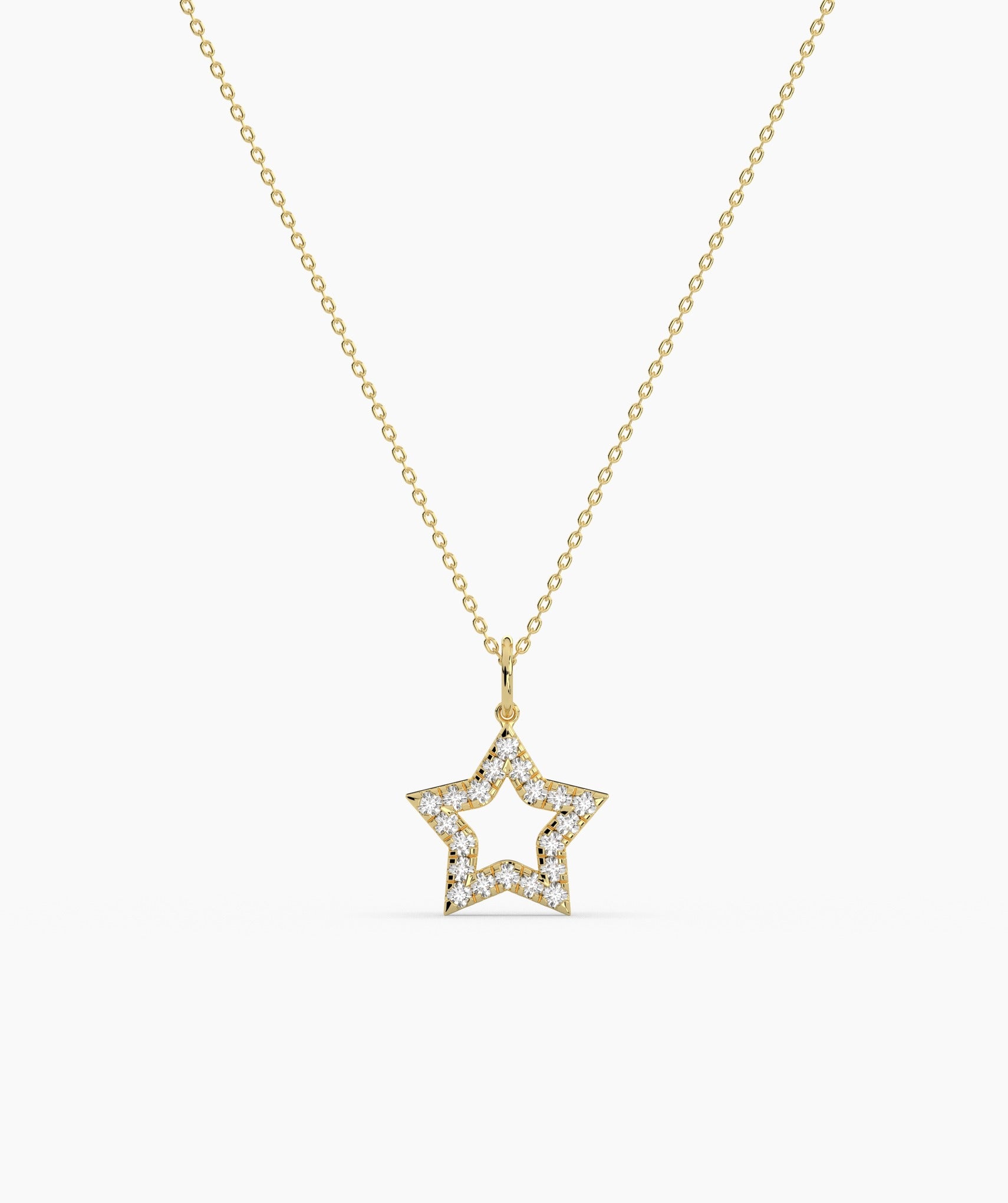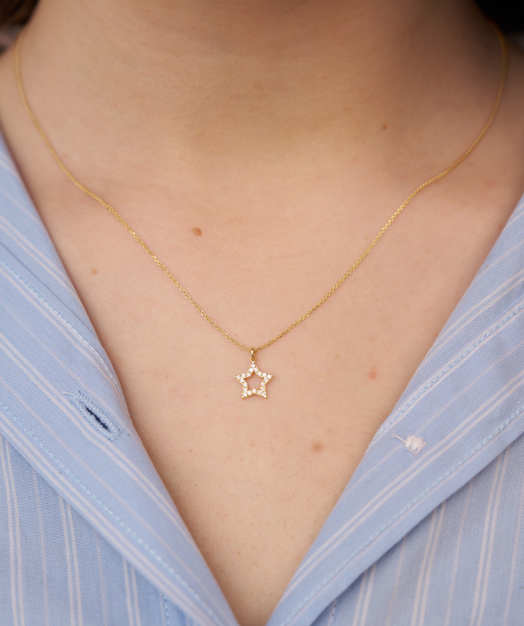 A delicate open star pendant in 14K gold, featuring brilliant diamonds, is a perfect gift for dreamers and star lovers.