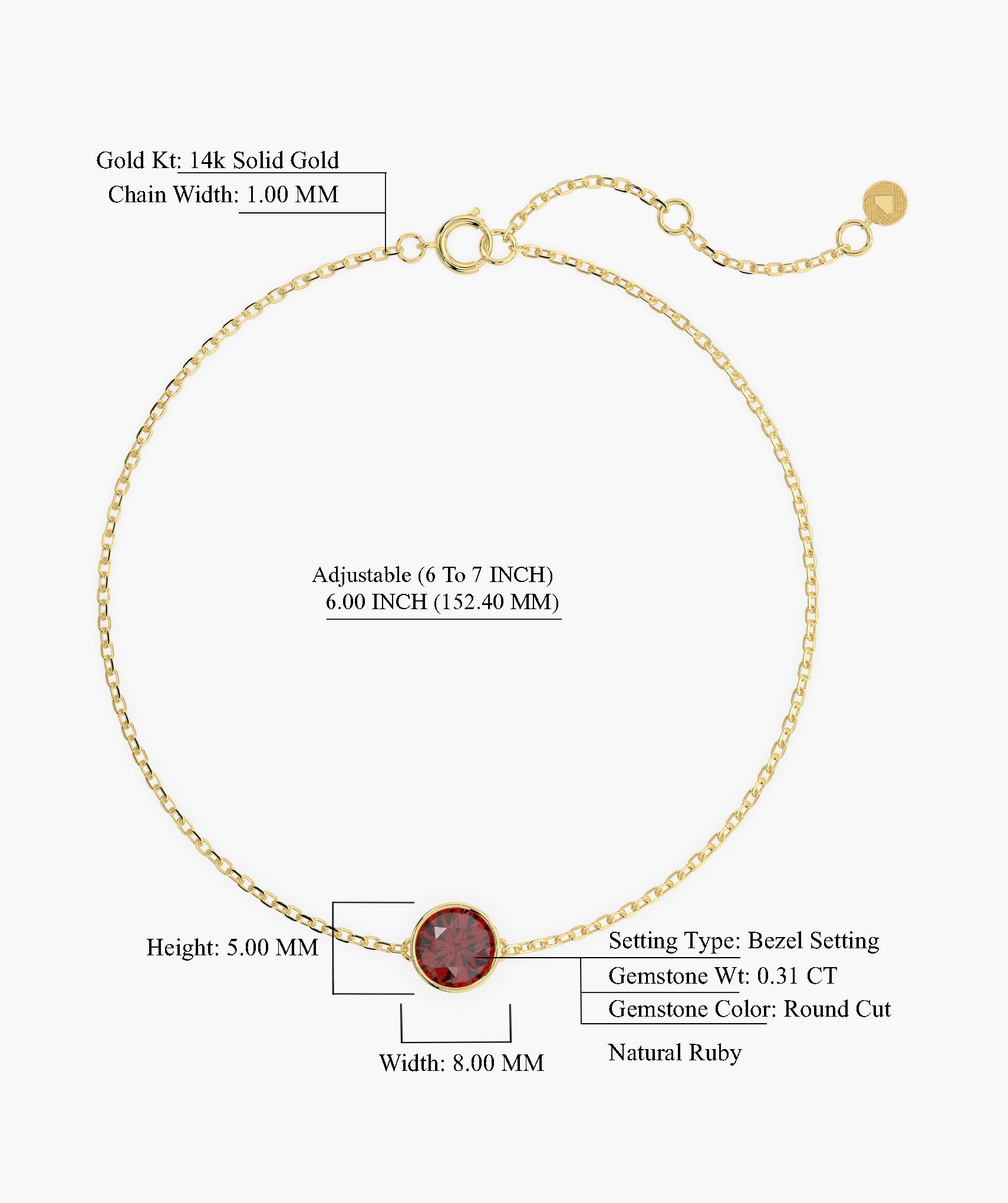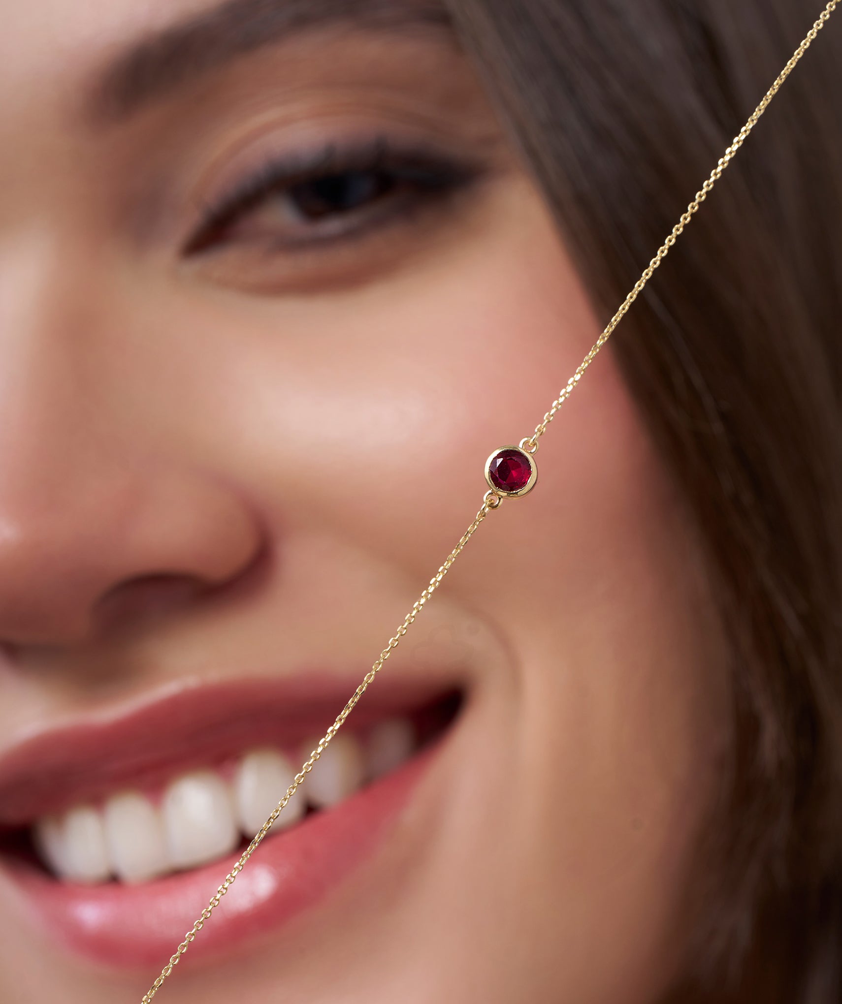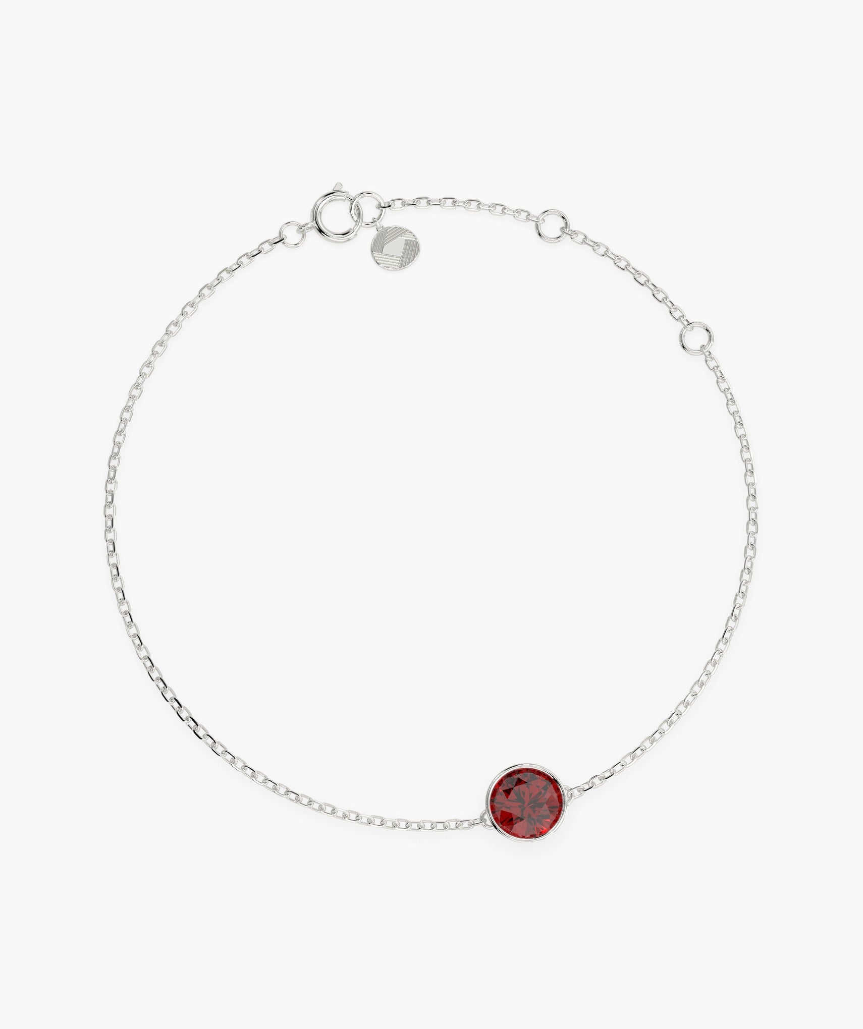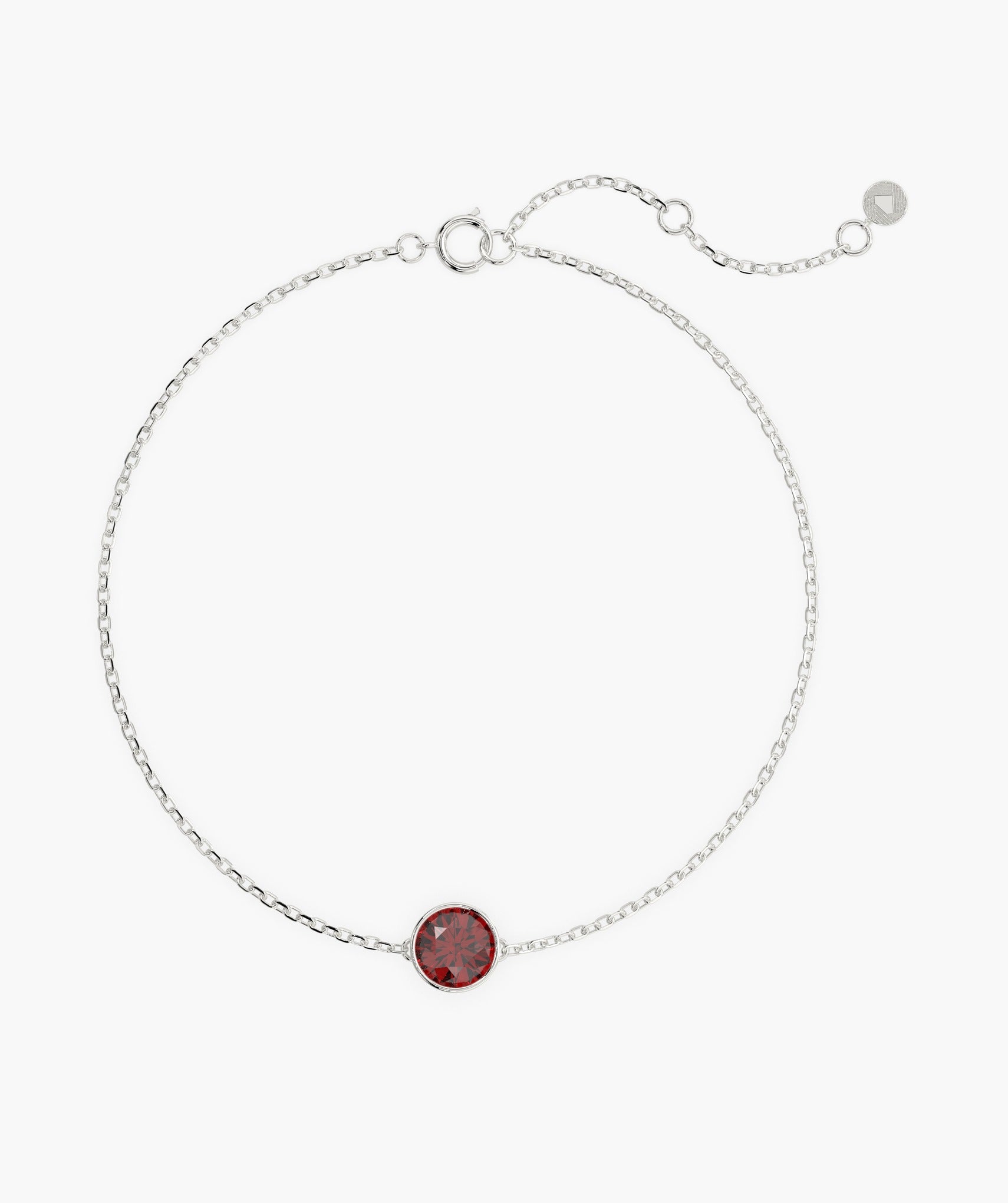 Delicate and elegant, this 14K yellow gold bracelet features a striking round-cut garnet in a bezel setting.
