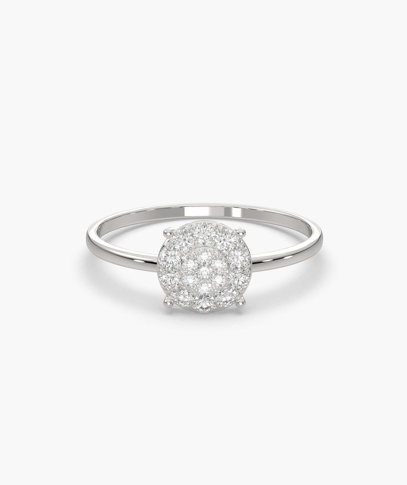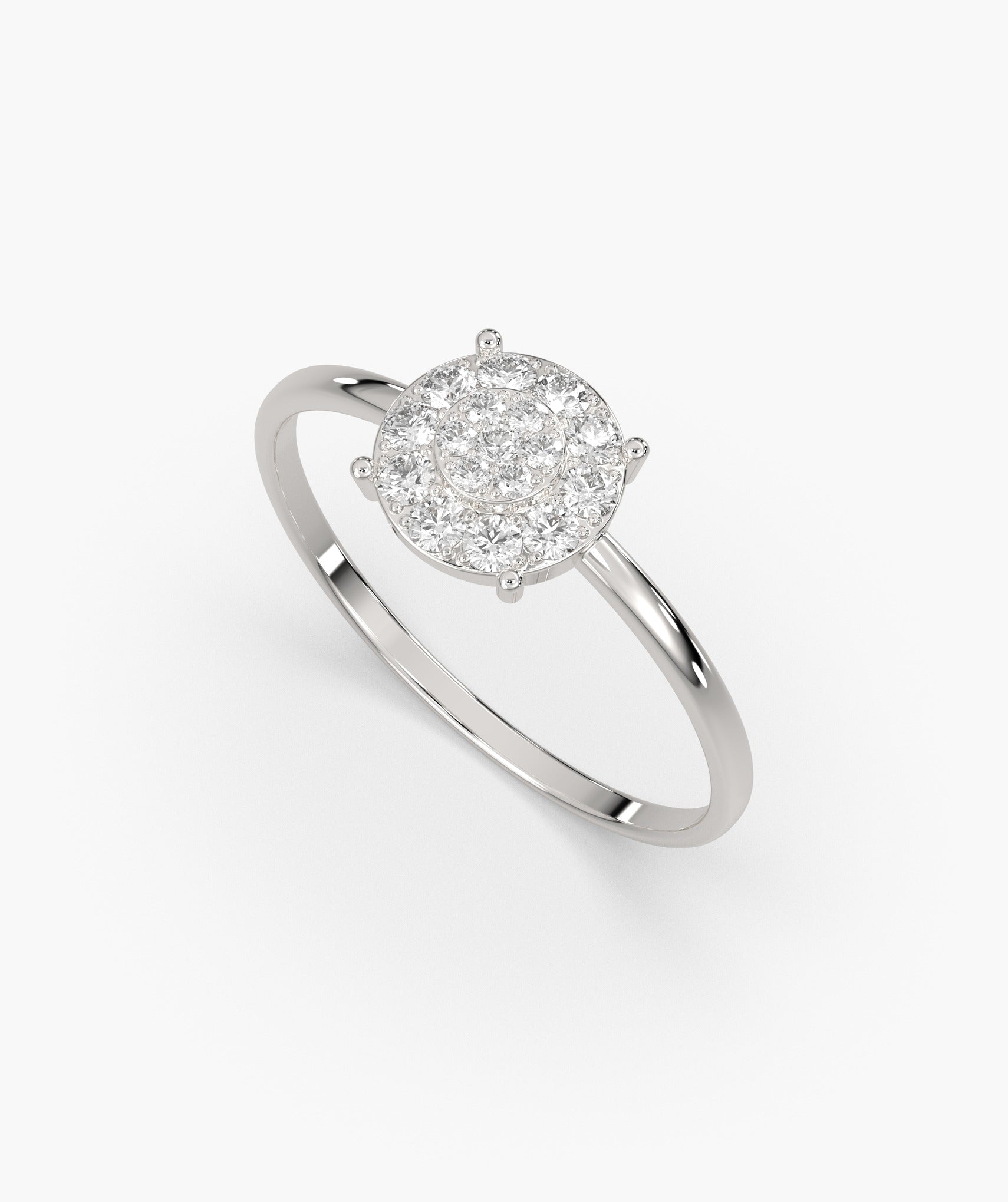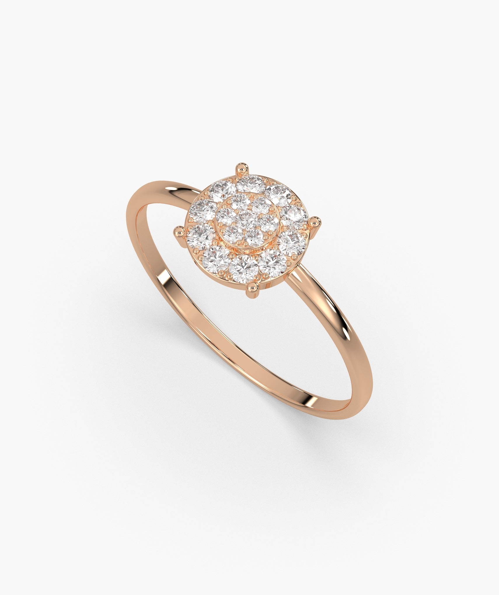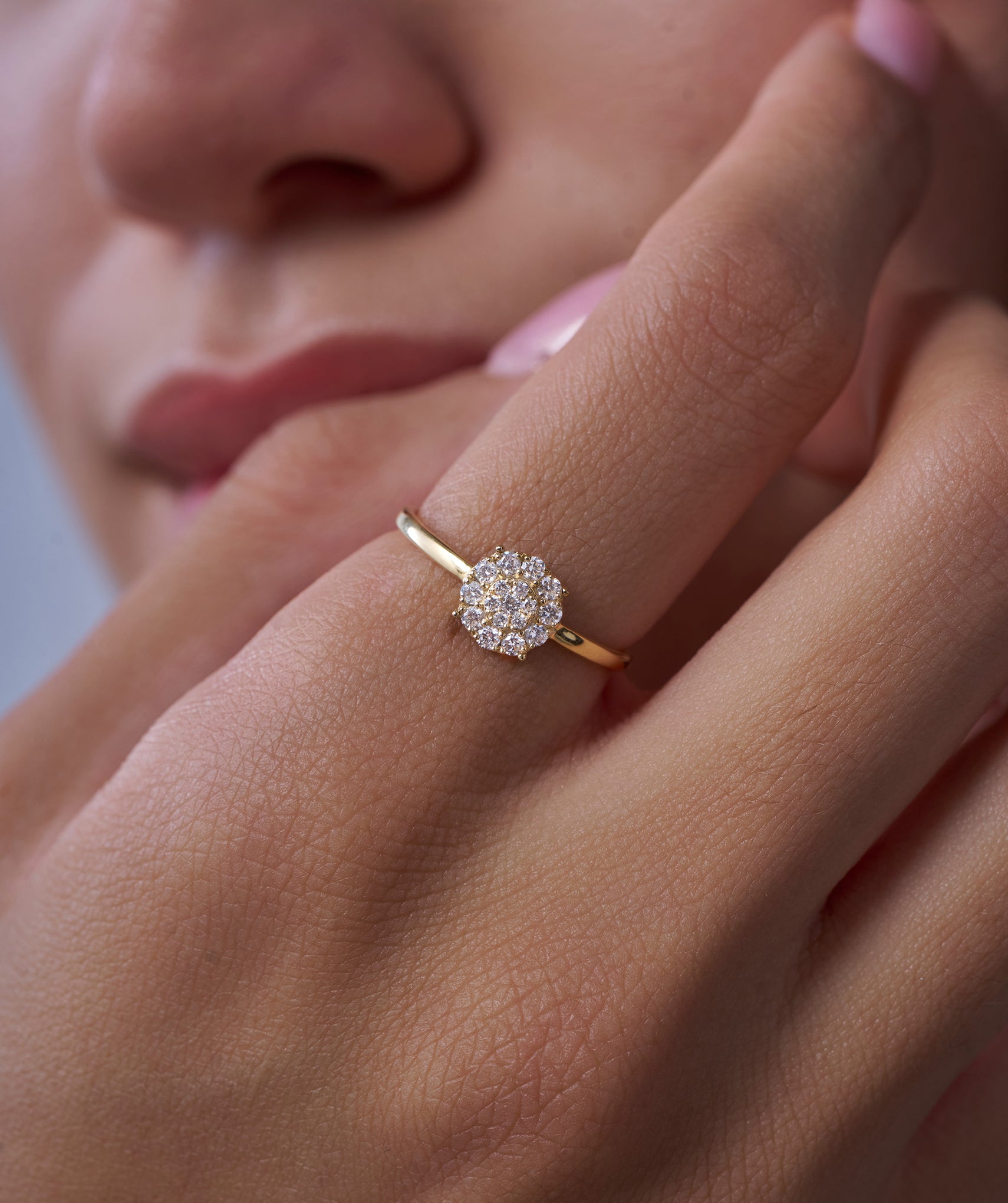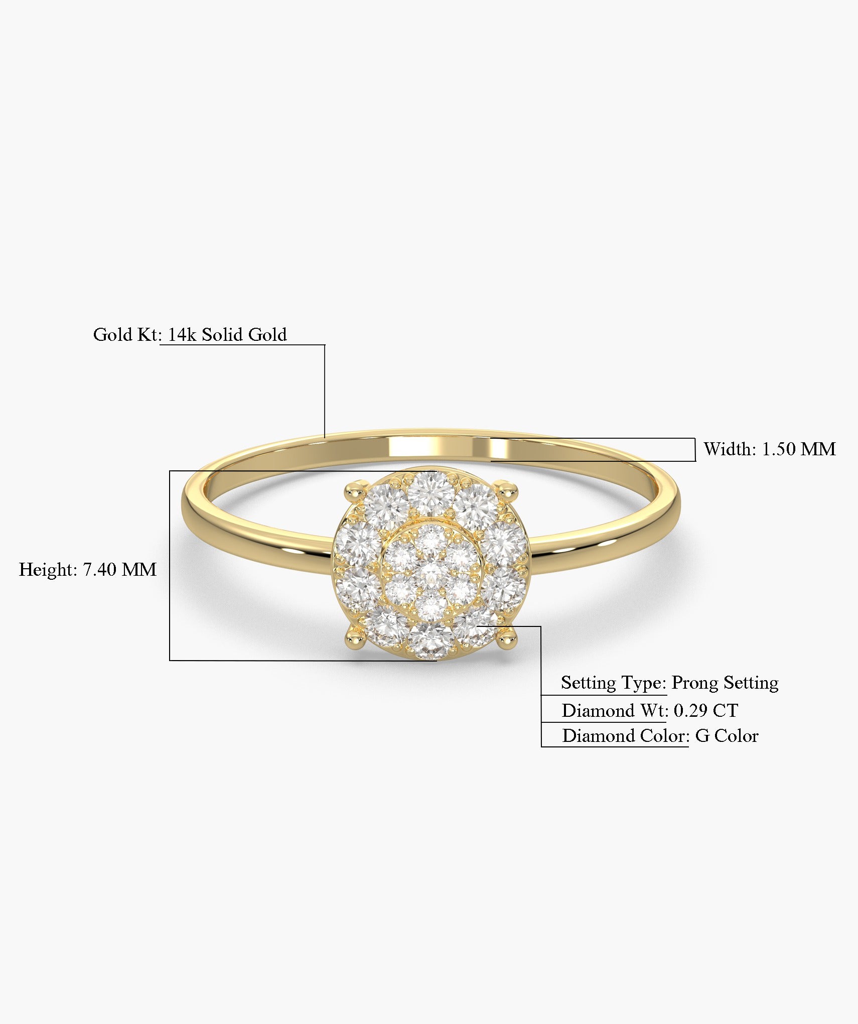 Dazzle and shine with this exquisite 14K solid gold ring, featuring a central cluster of sparkling diamonds surrounded by a radiant halo.