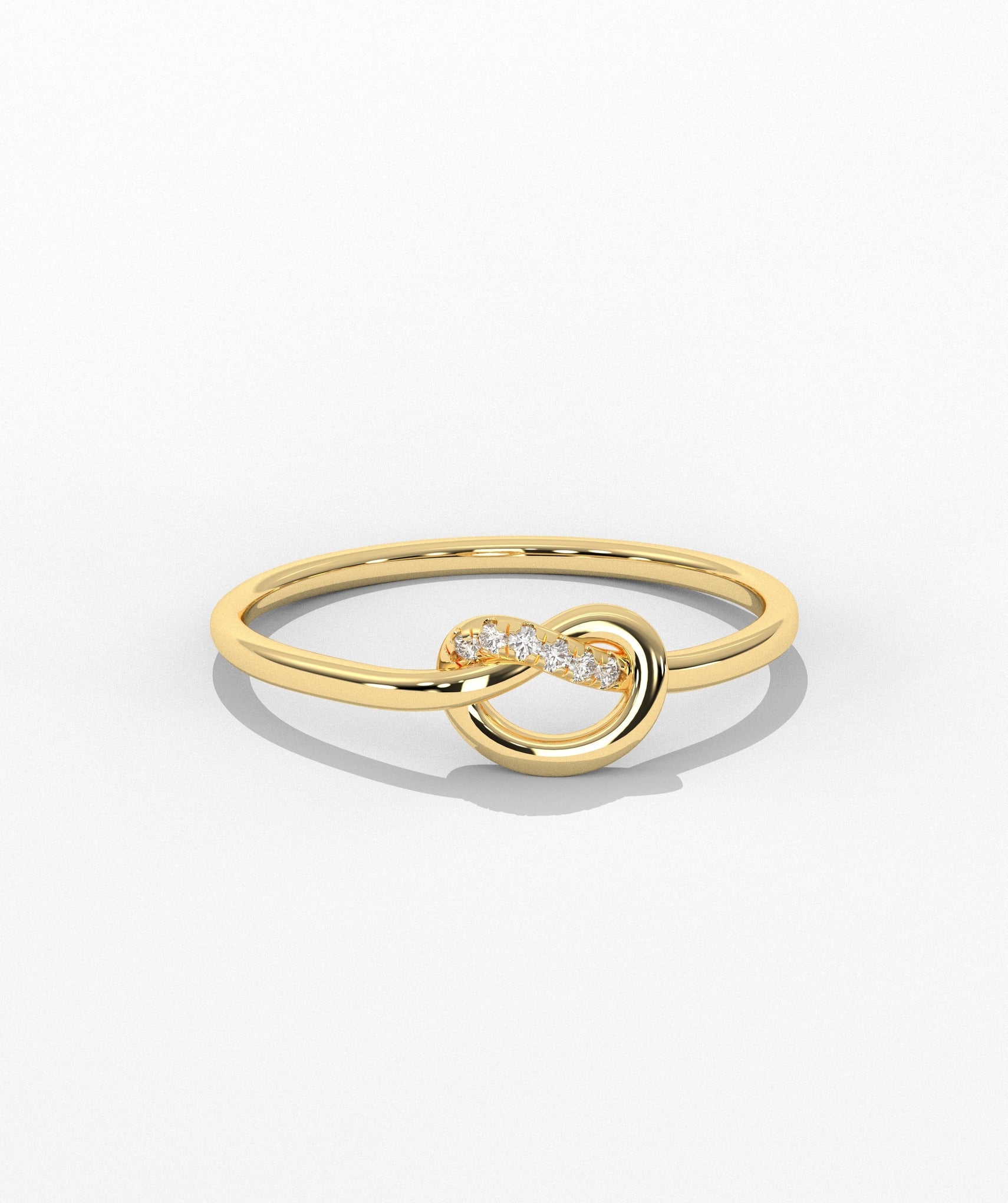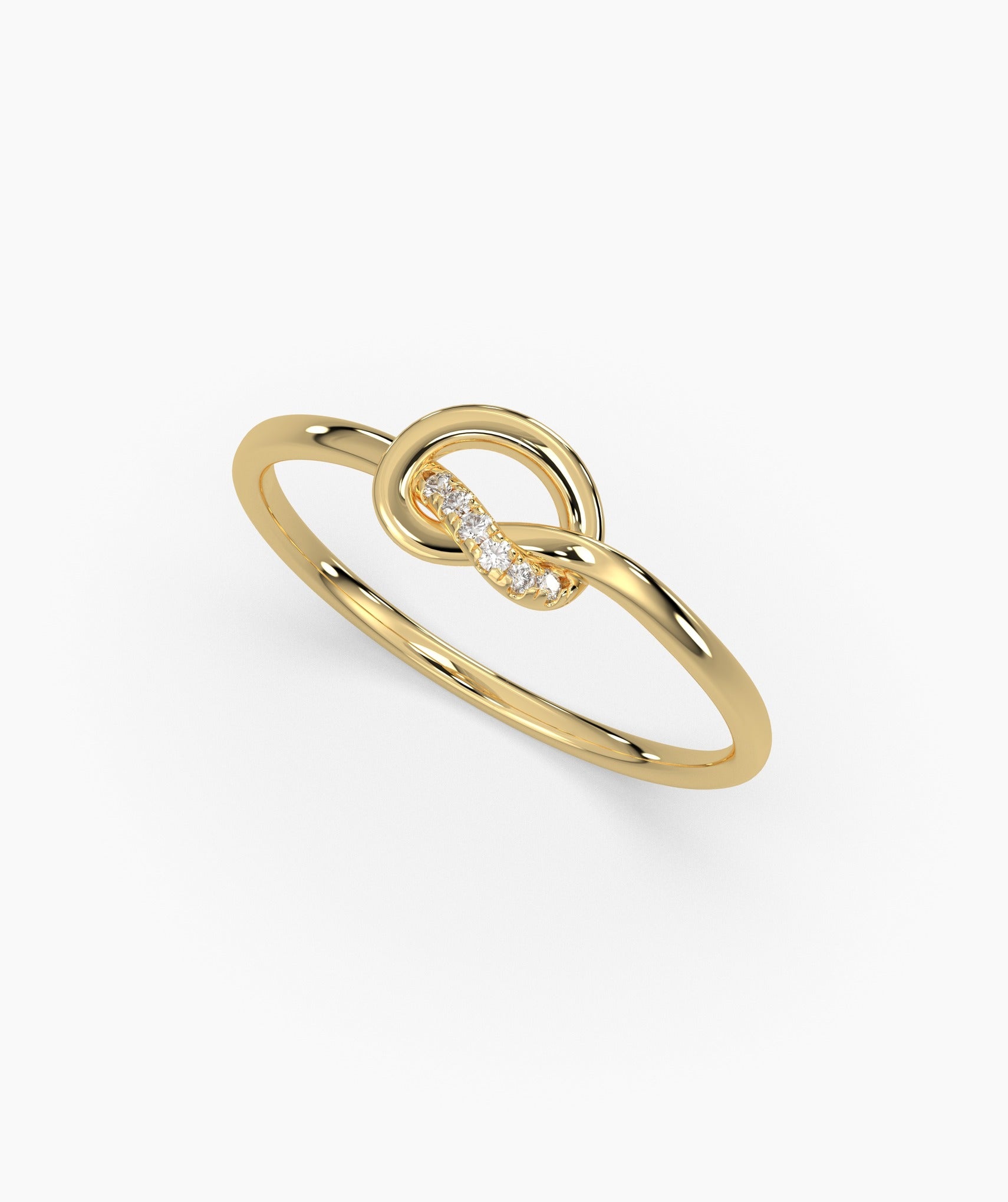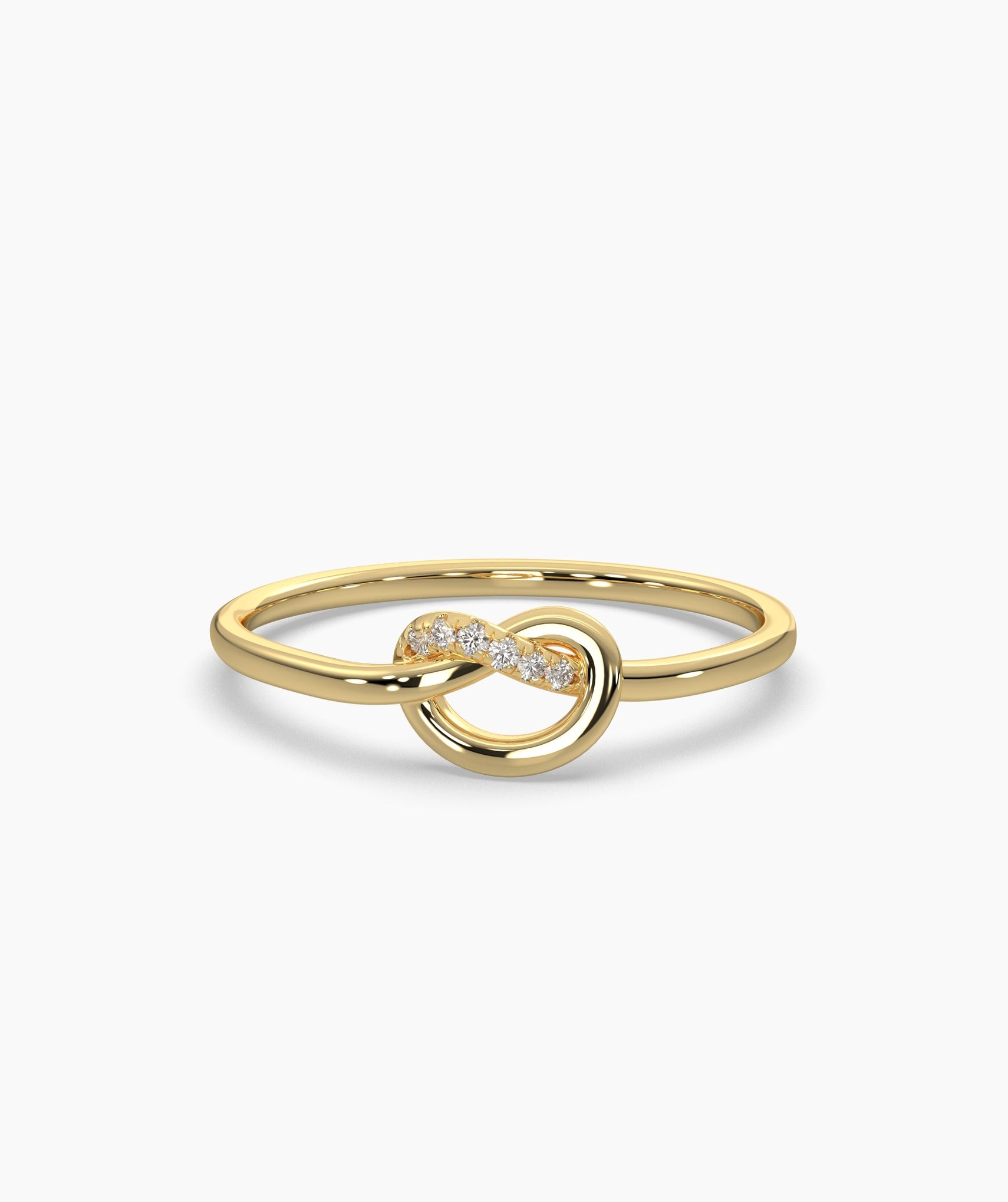 A symbol of unity and devotion—this elegant knot design in gold features a row of diamonds for added sparkle.