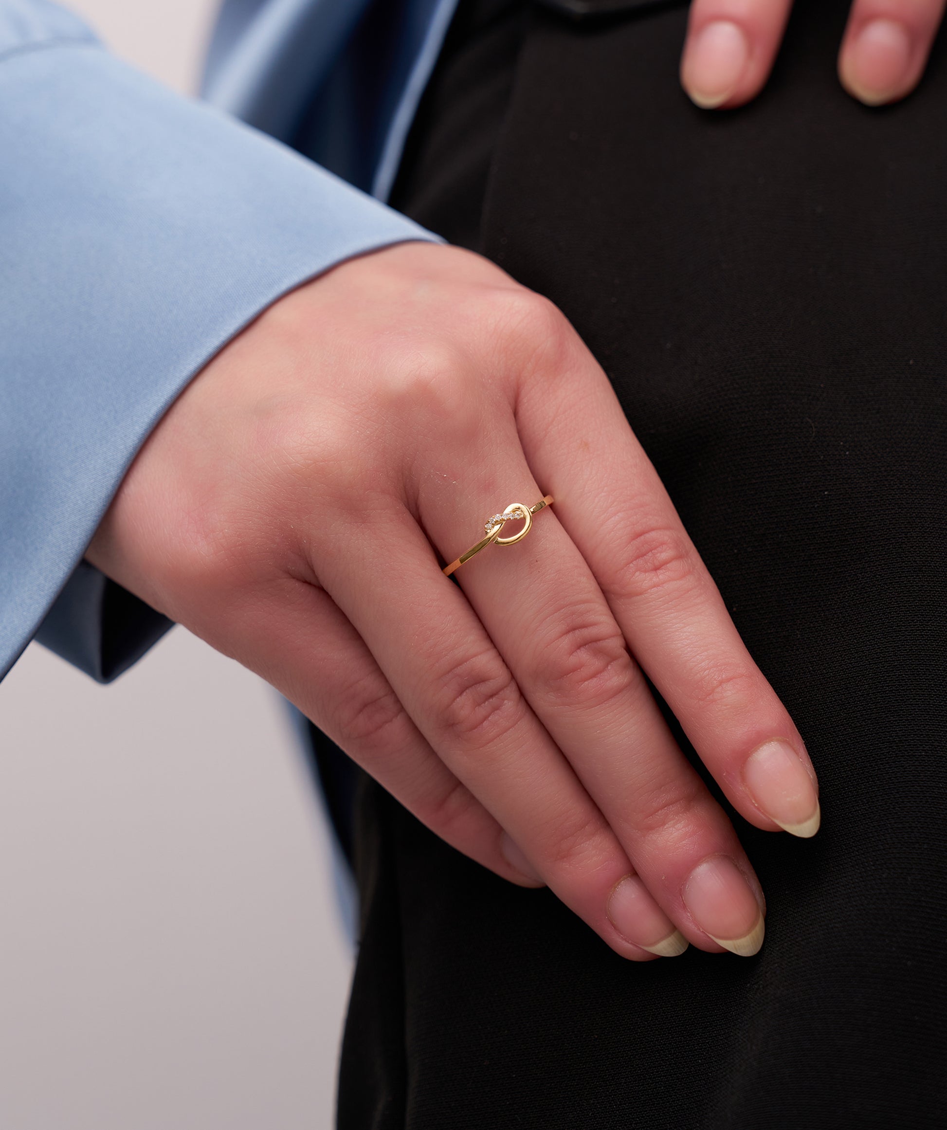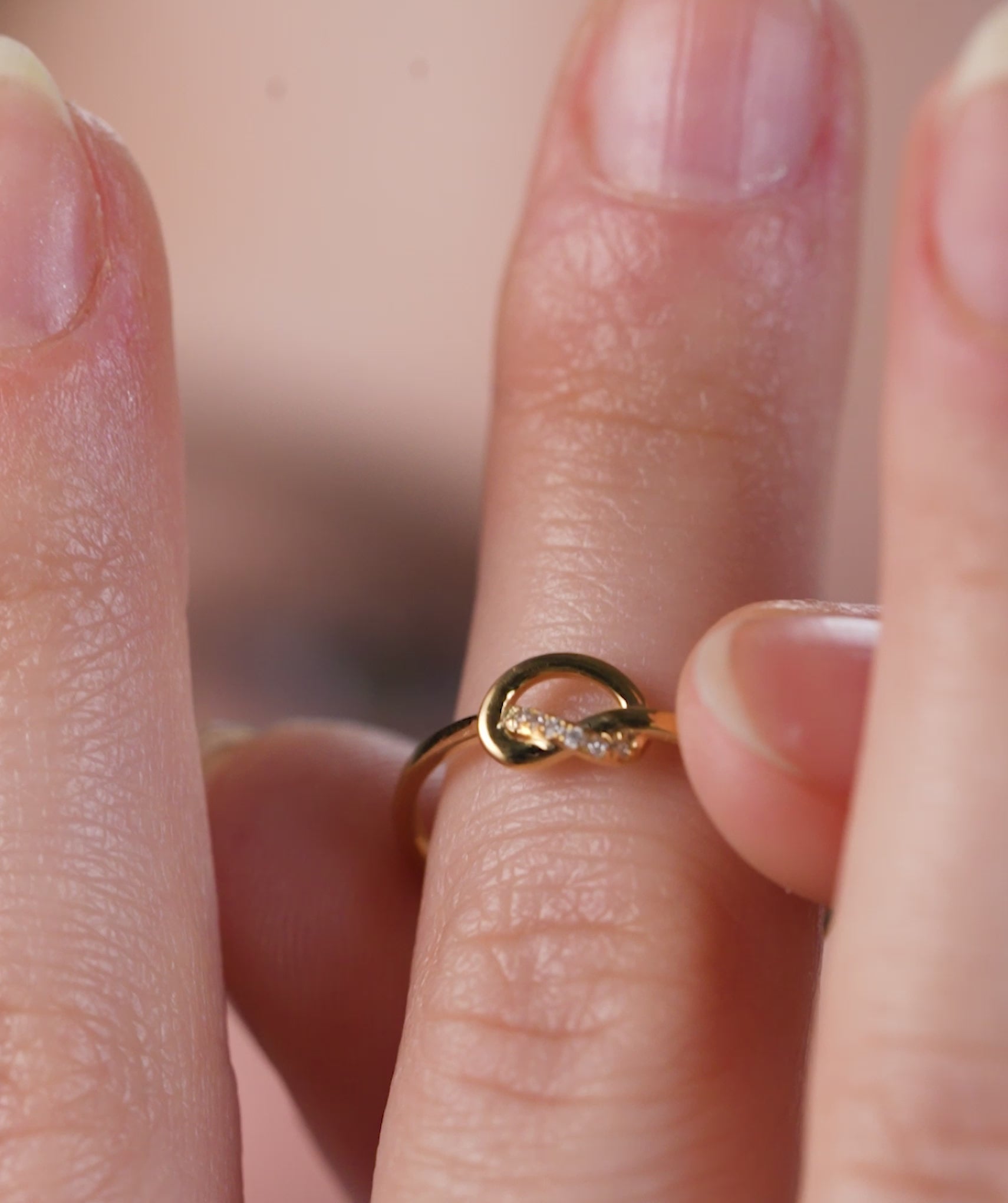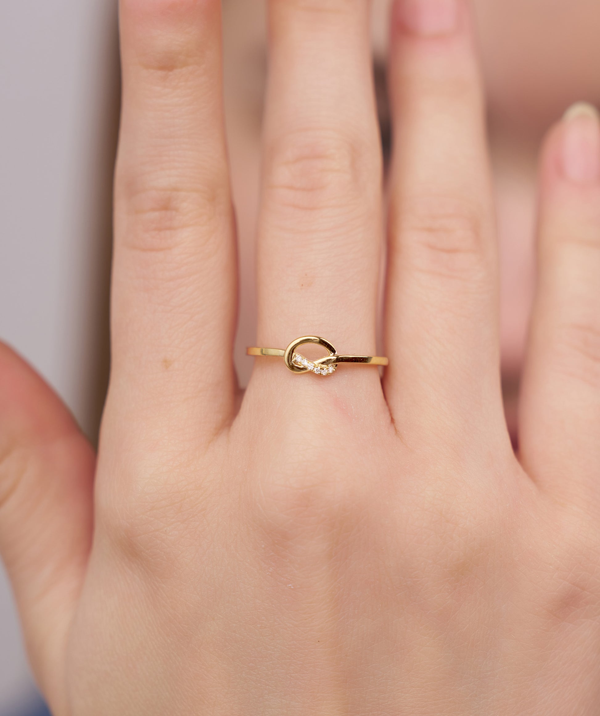 A symbol of unity and devotion—this elegant knot design in gold features a row of diamonds for added sparkle.
