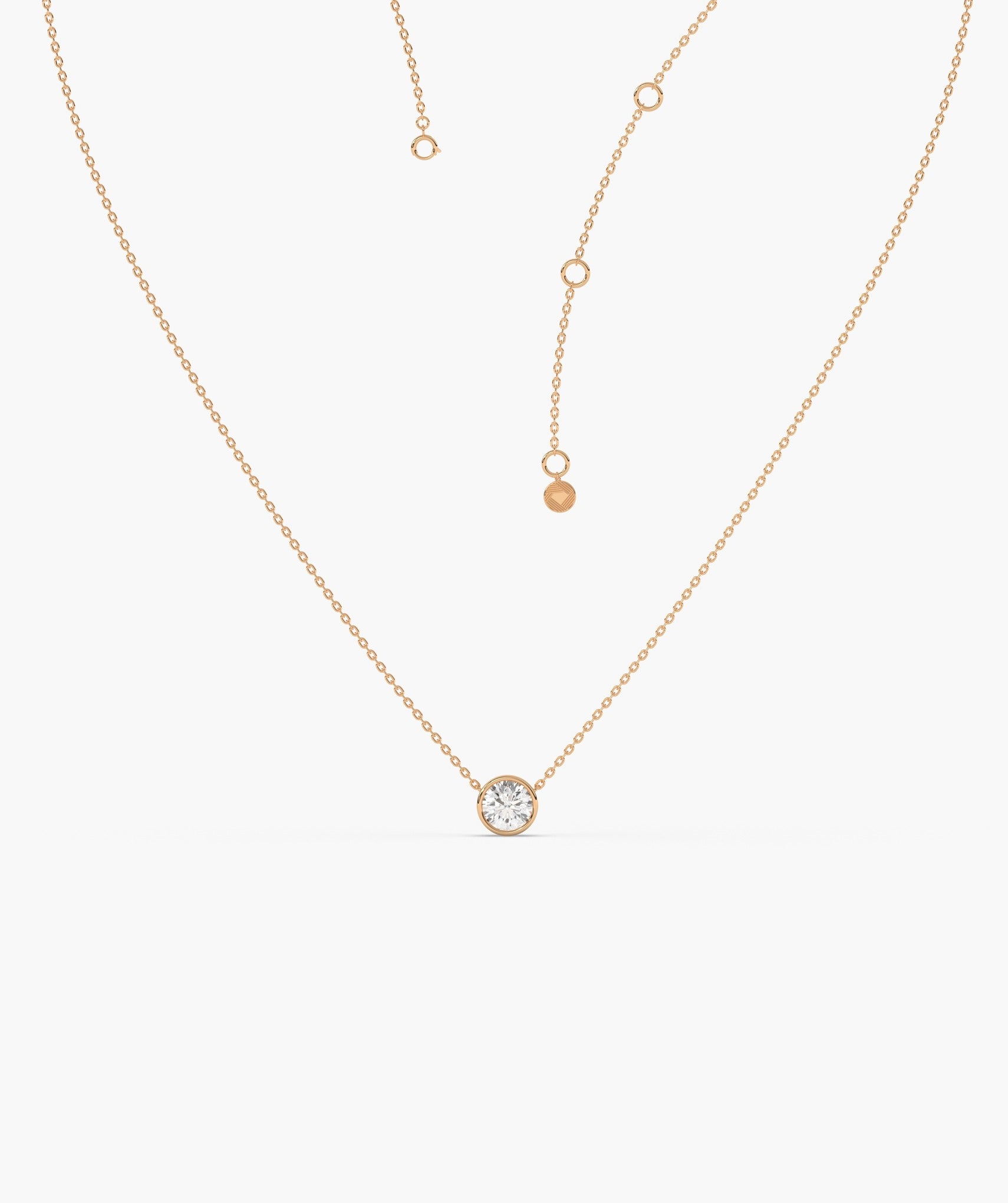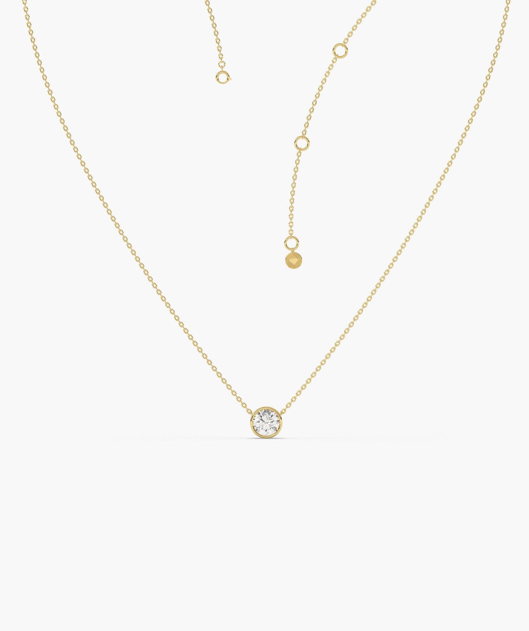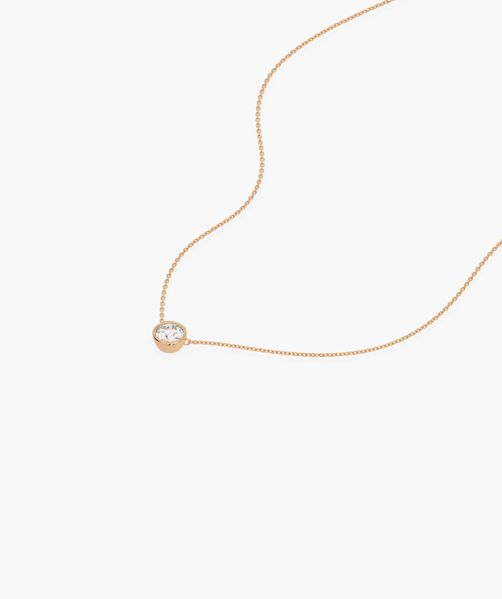This 14K gold necklace centers a solitary, brilliant diamond, a quintessential piece for every jewelry lover.