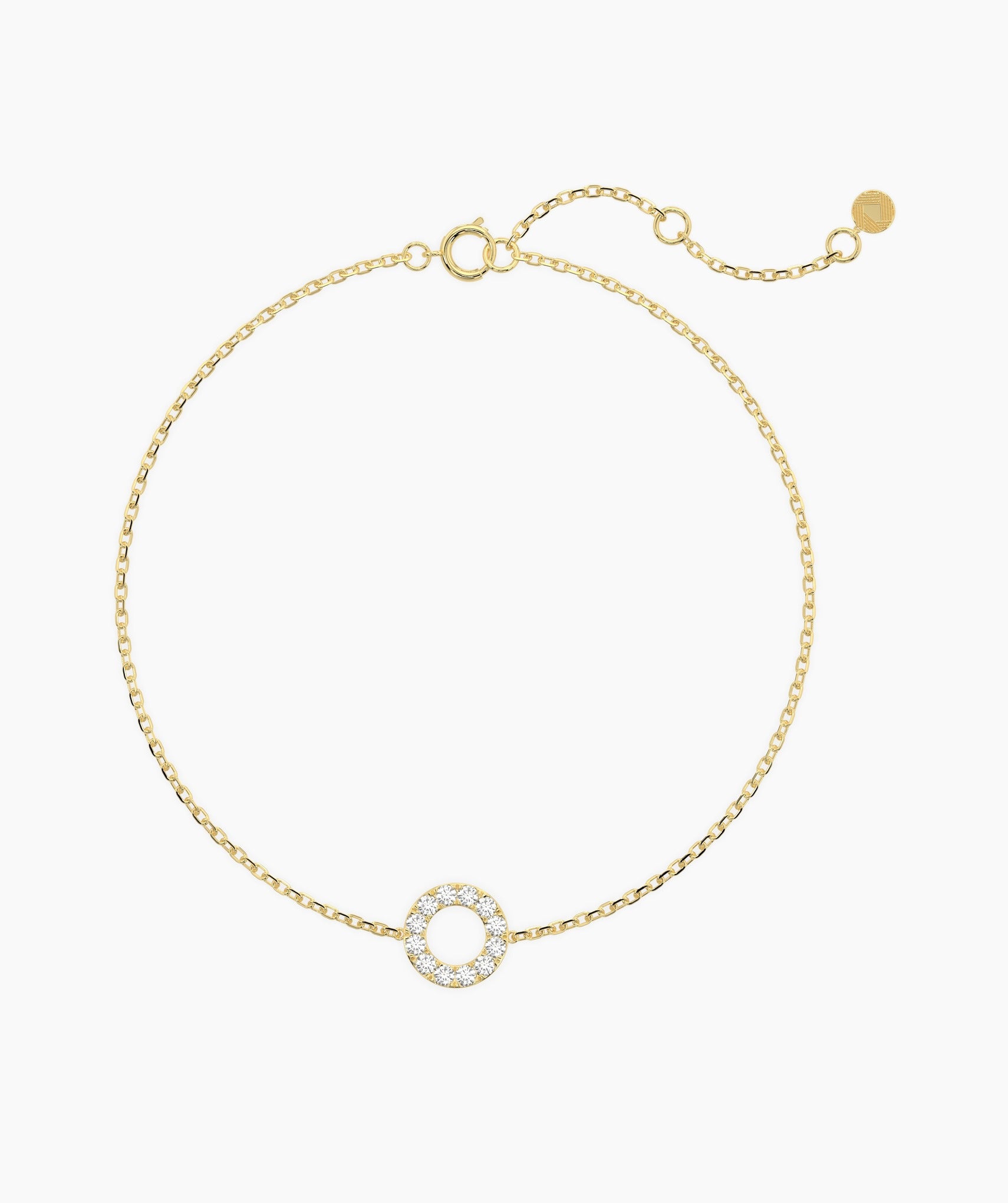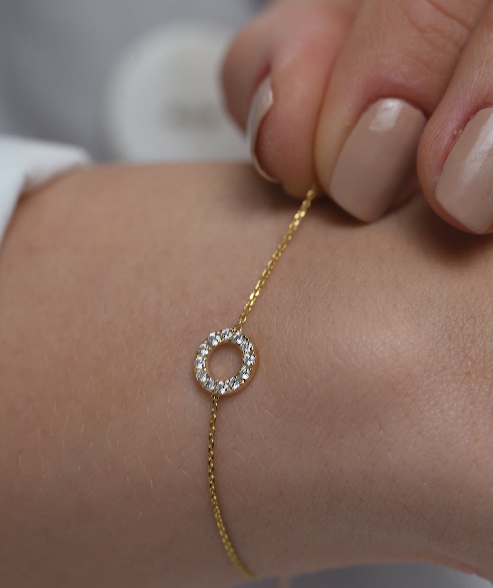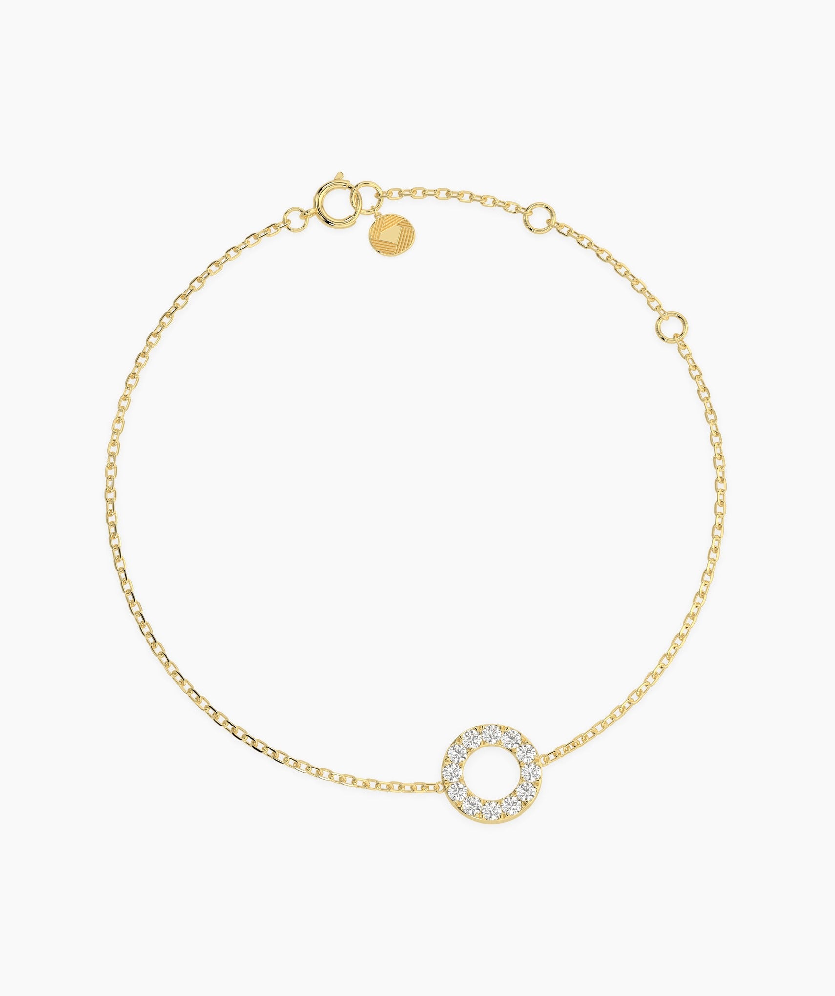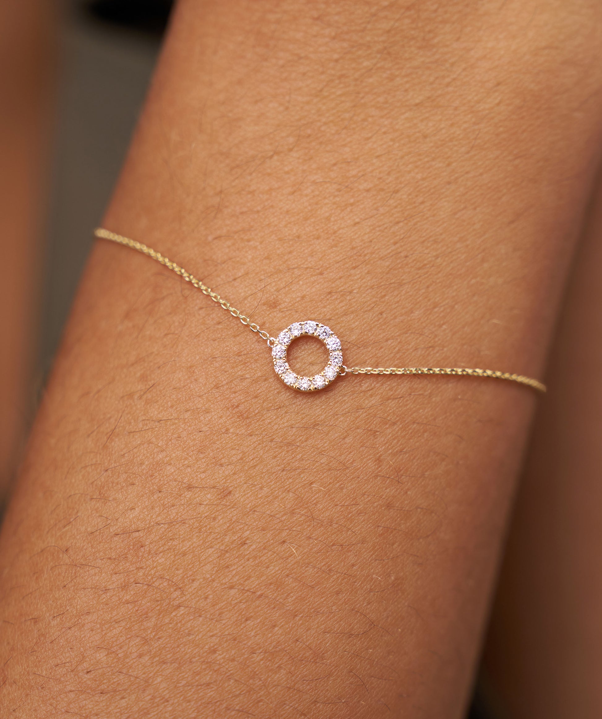 Designed for everyday elegance, this 14K gold open-circle bracelet with shimmering diamonds is both modern and timeless.