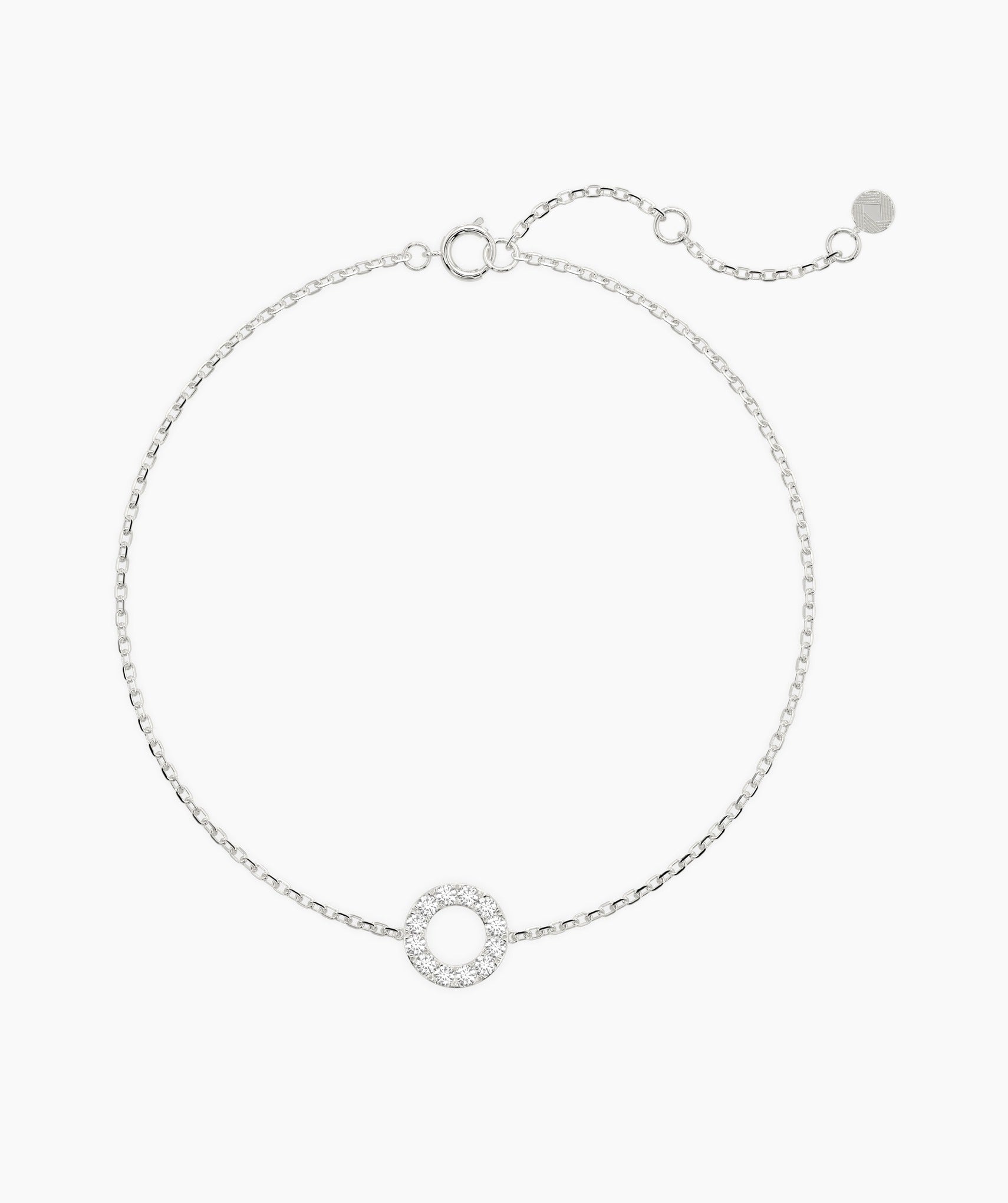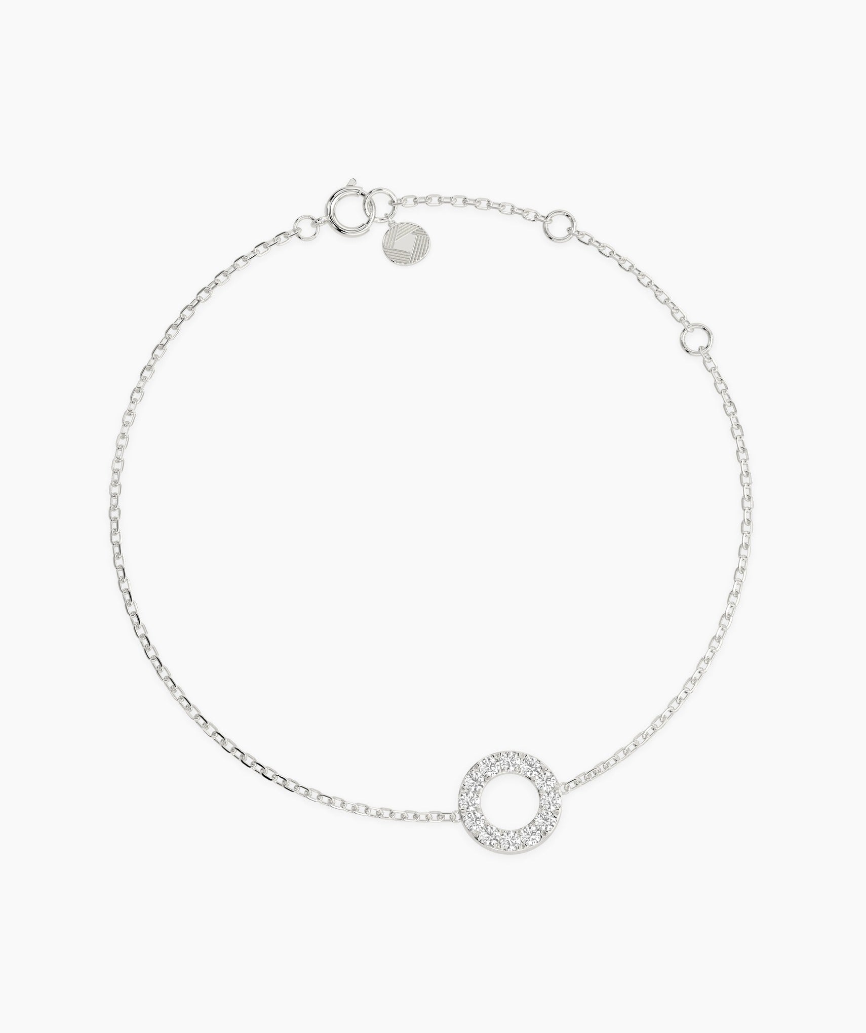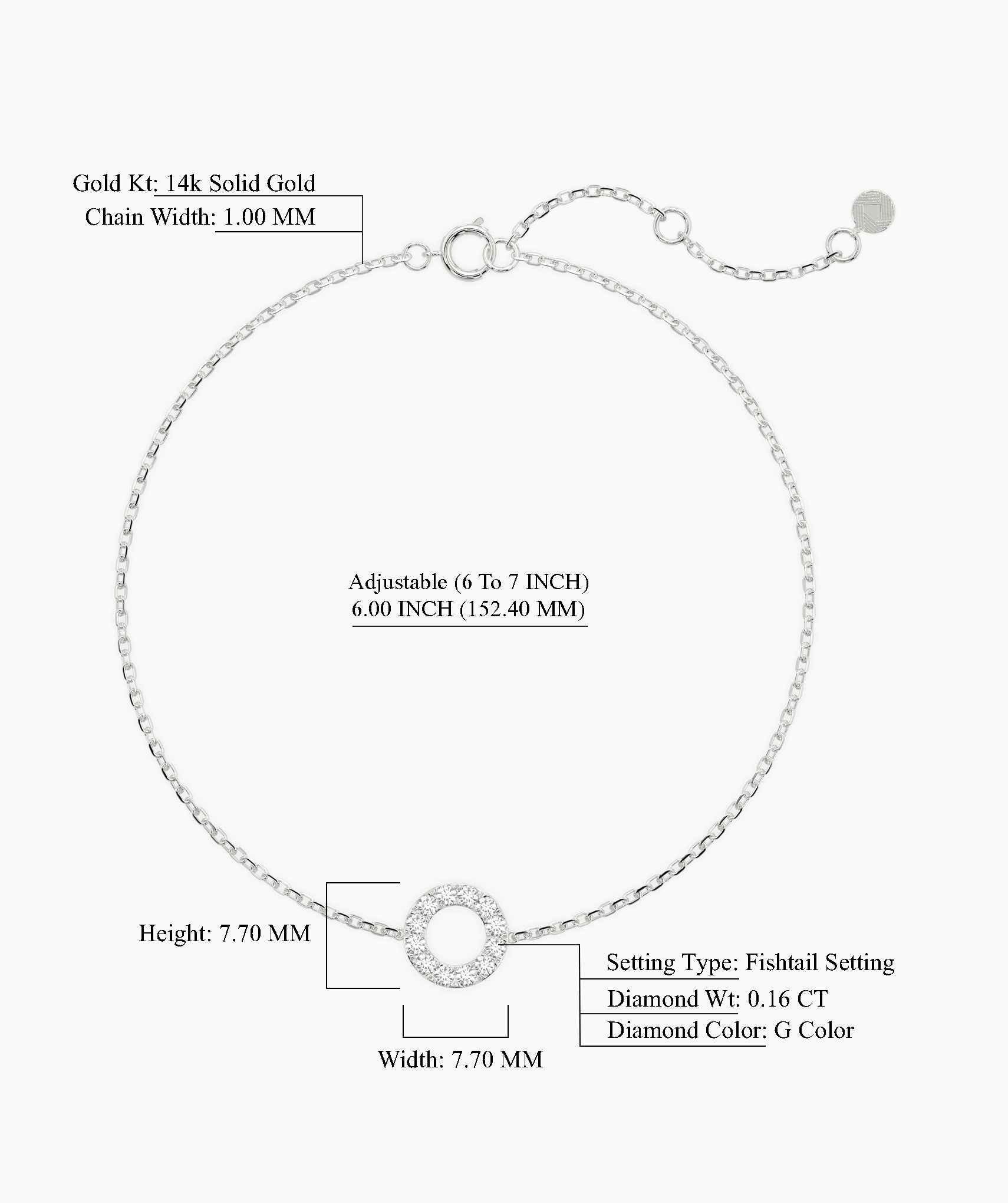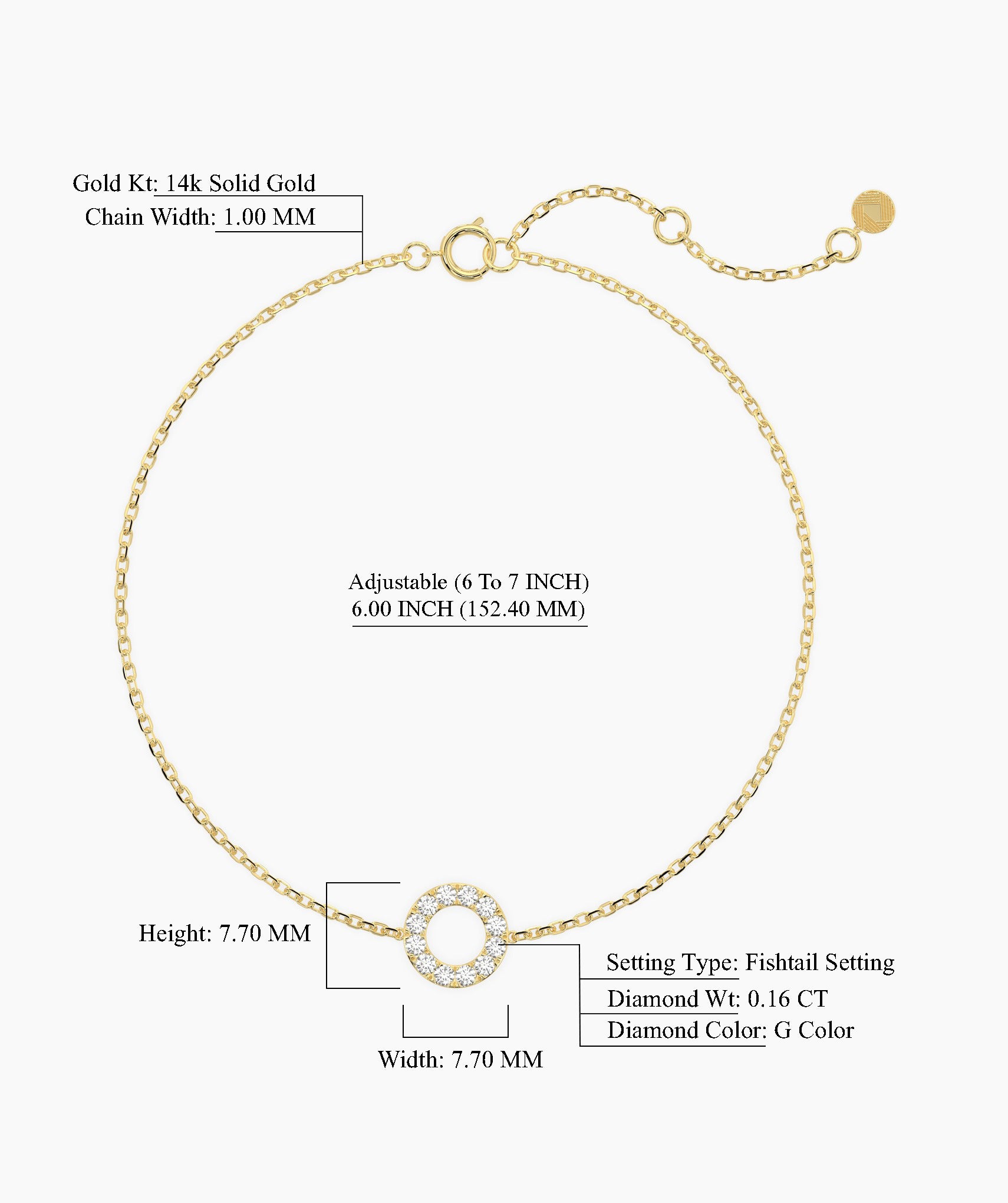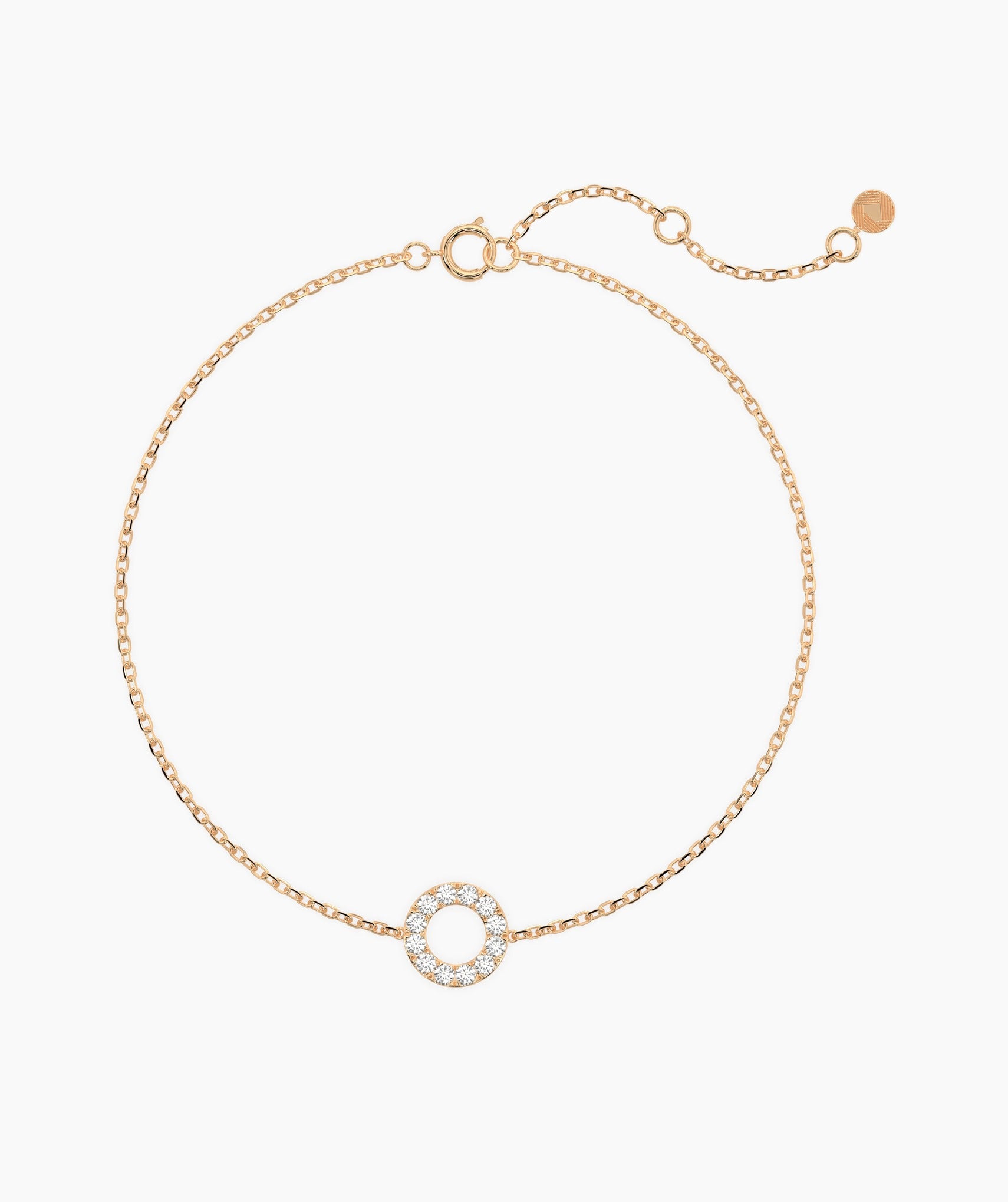 Designed for everyday elegance, this 14K gold open-circle bracelet with shimmering diamonds is both modern and timeless.