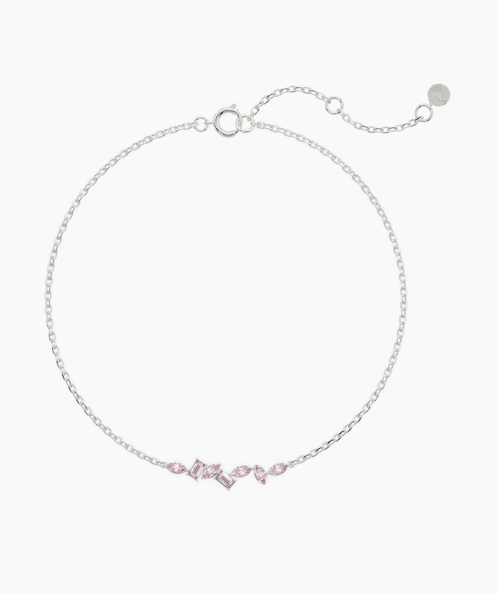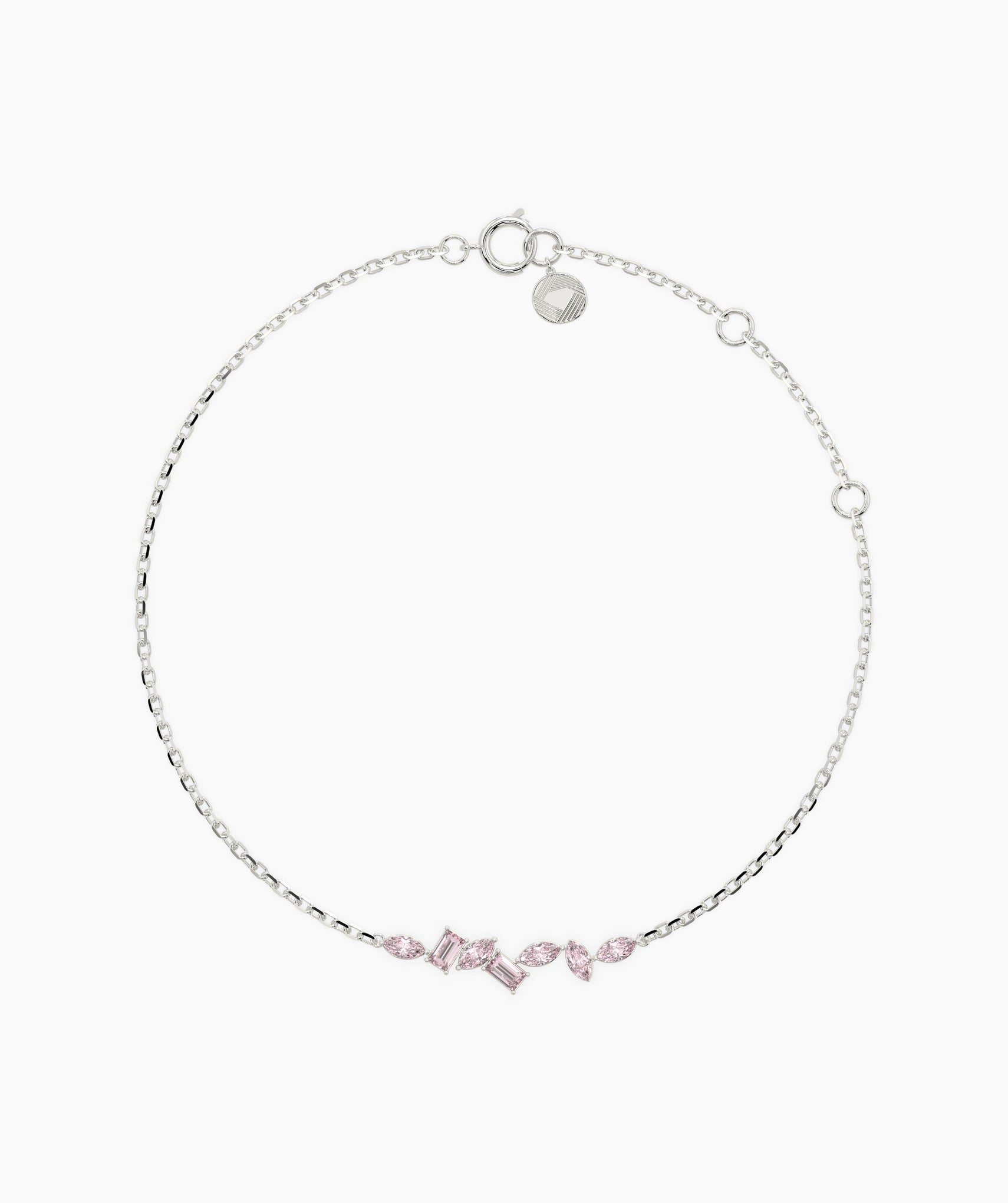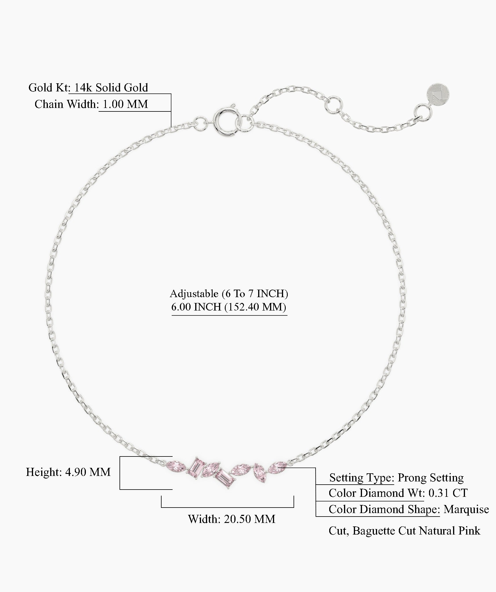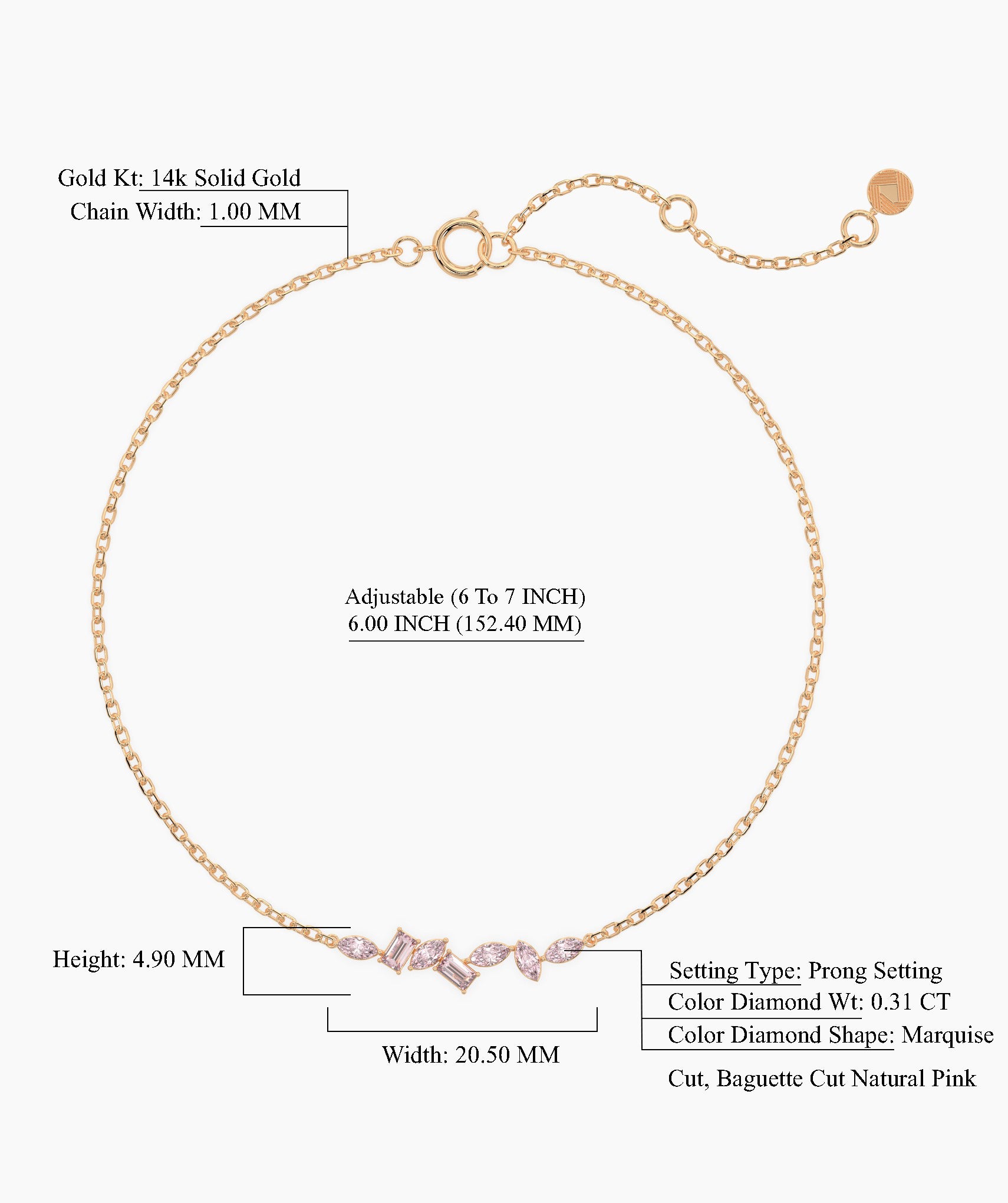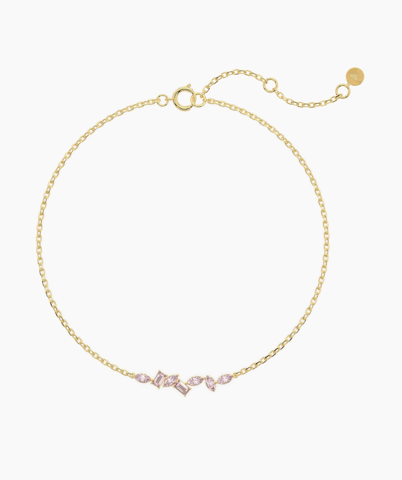 This minimalist bracelet features marquise and baguette-cut pink stones, set in 14K gold for a feminine look.