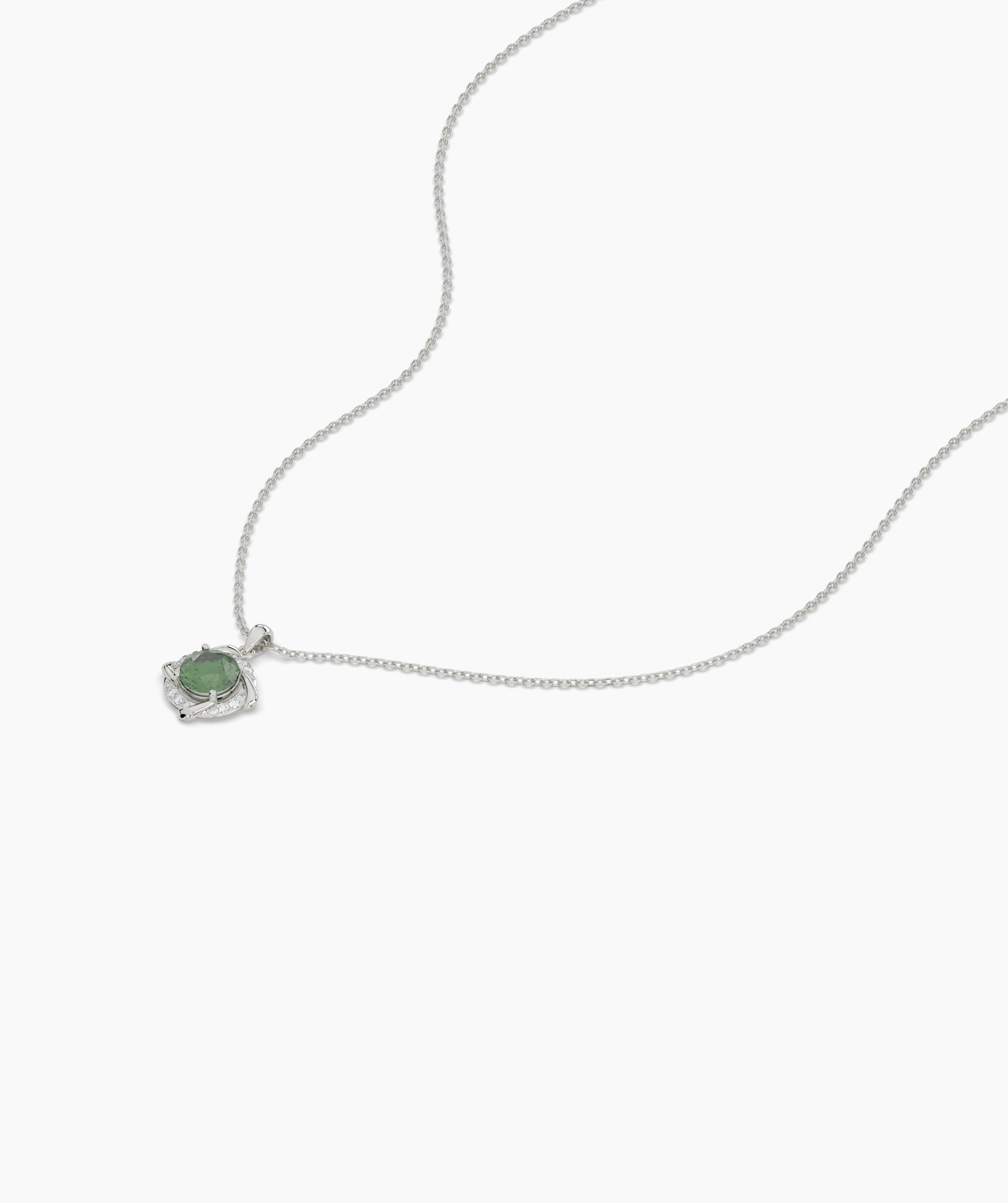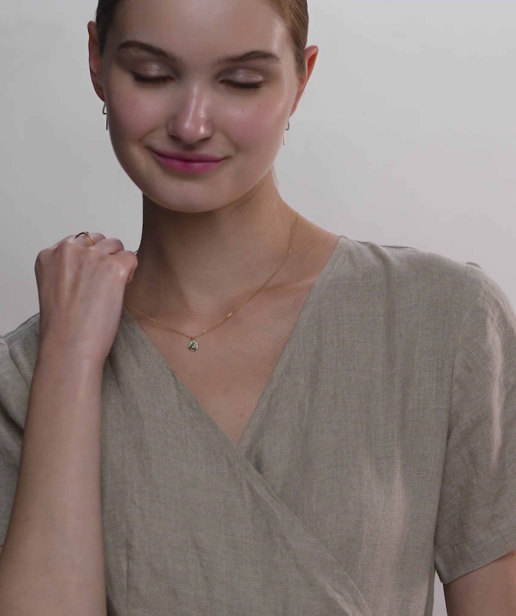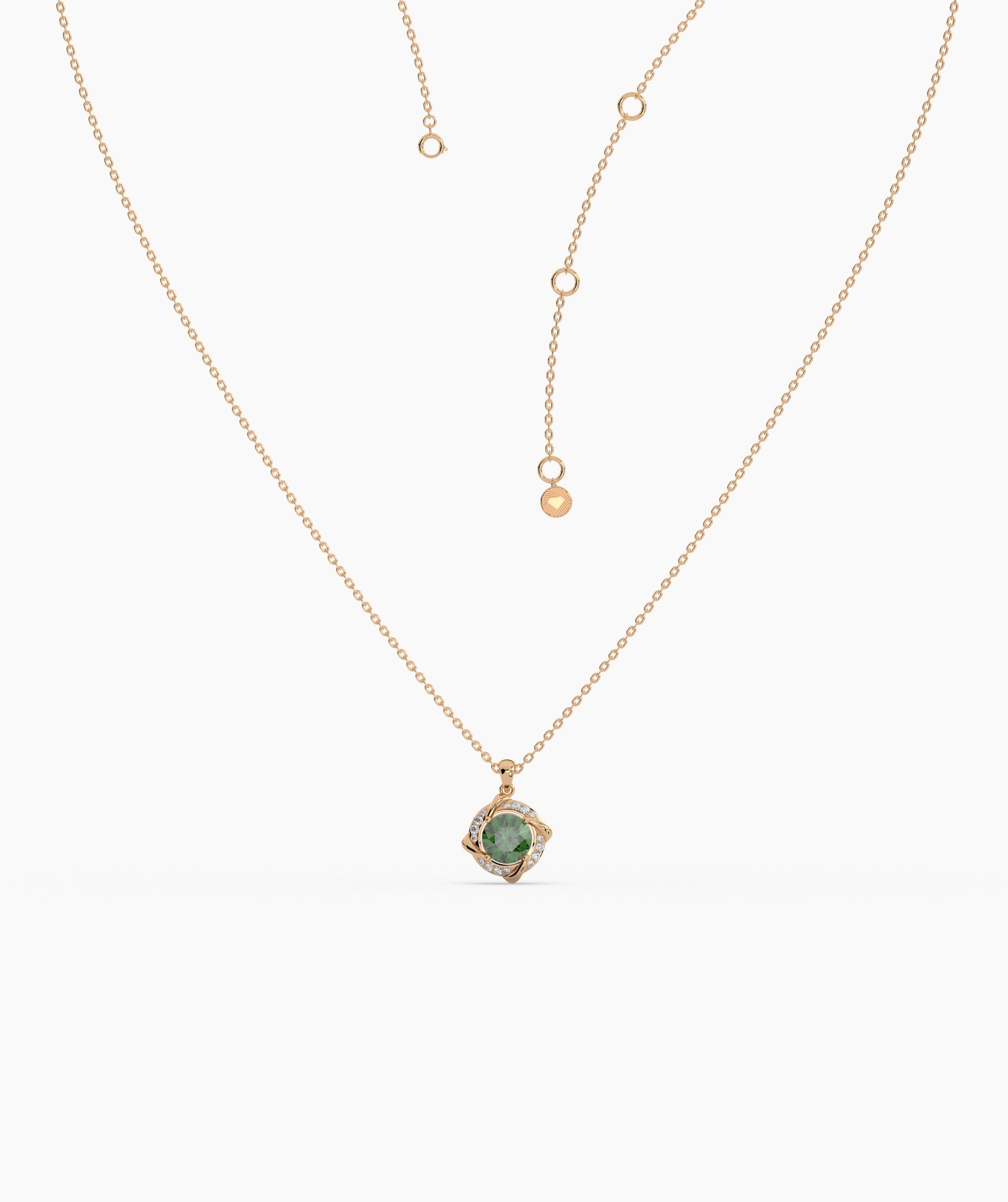 Circle Pendant Necklace with Green Gemstone & Diamonds