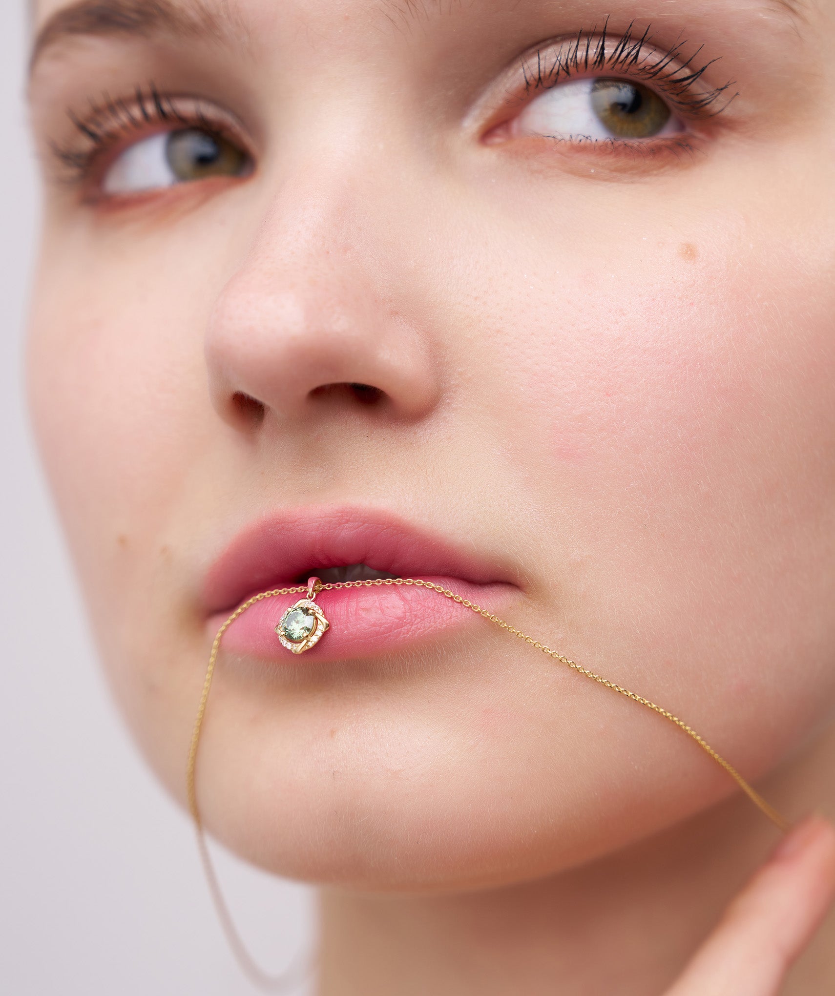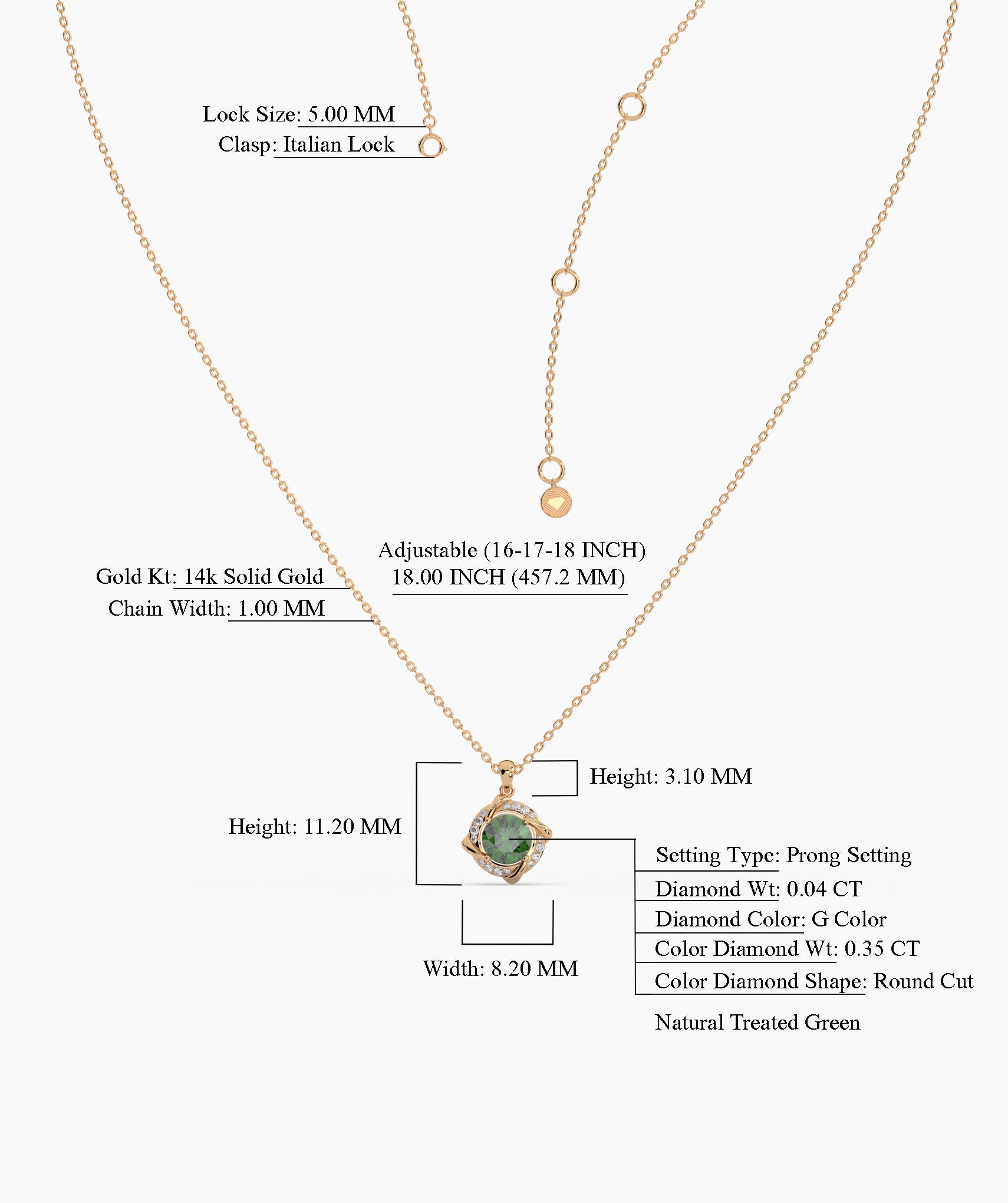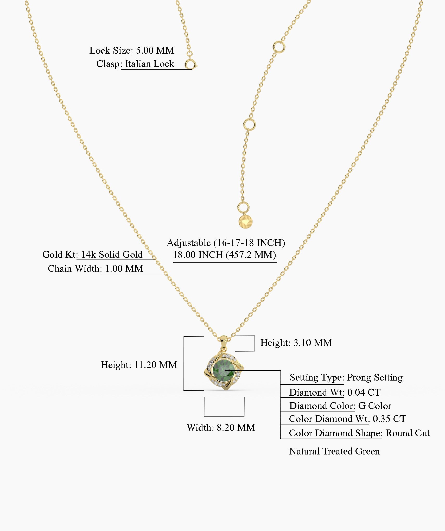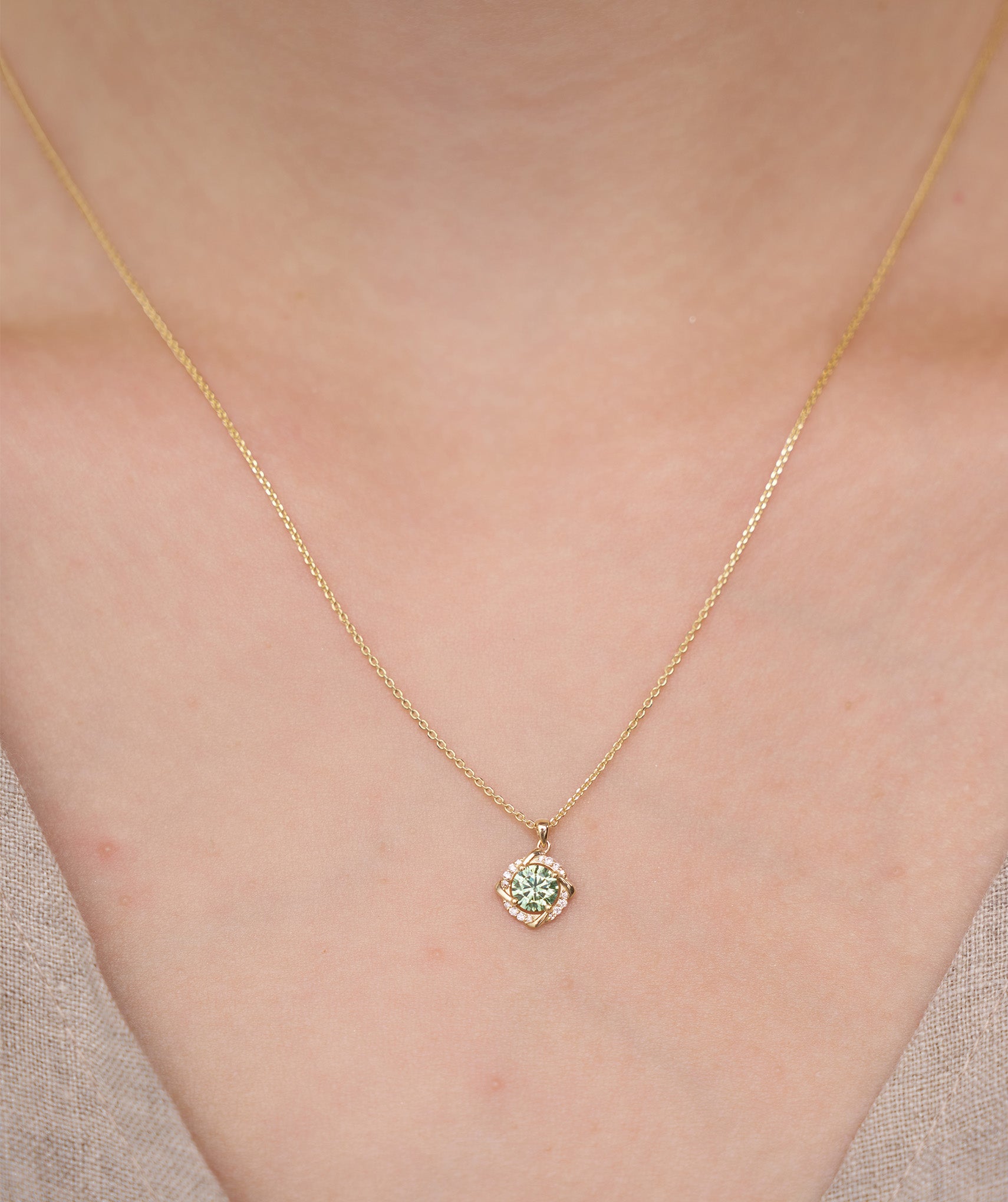 Circle Pendant Necklace with Green Gemstone & Diamonds