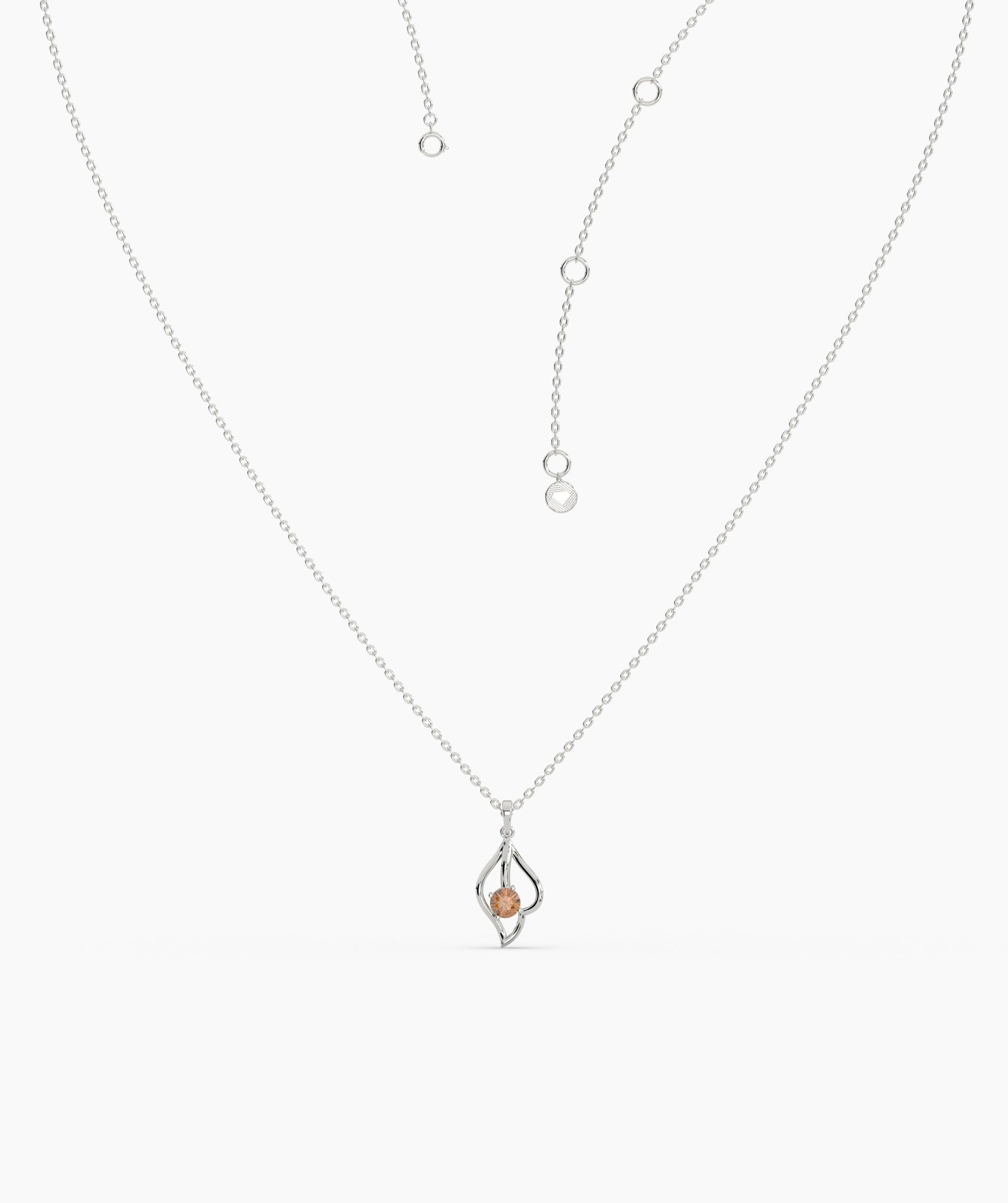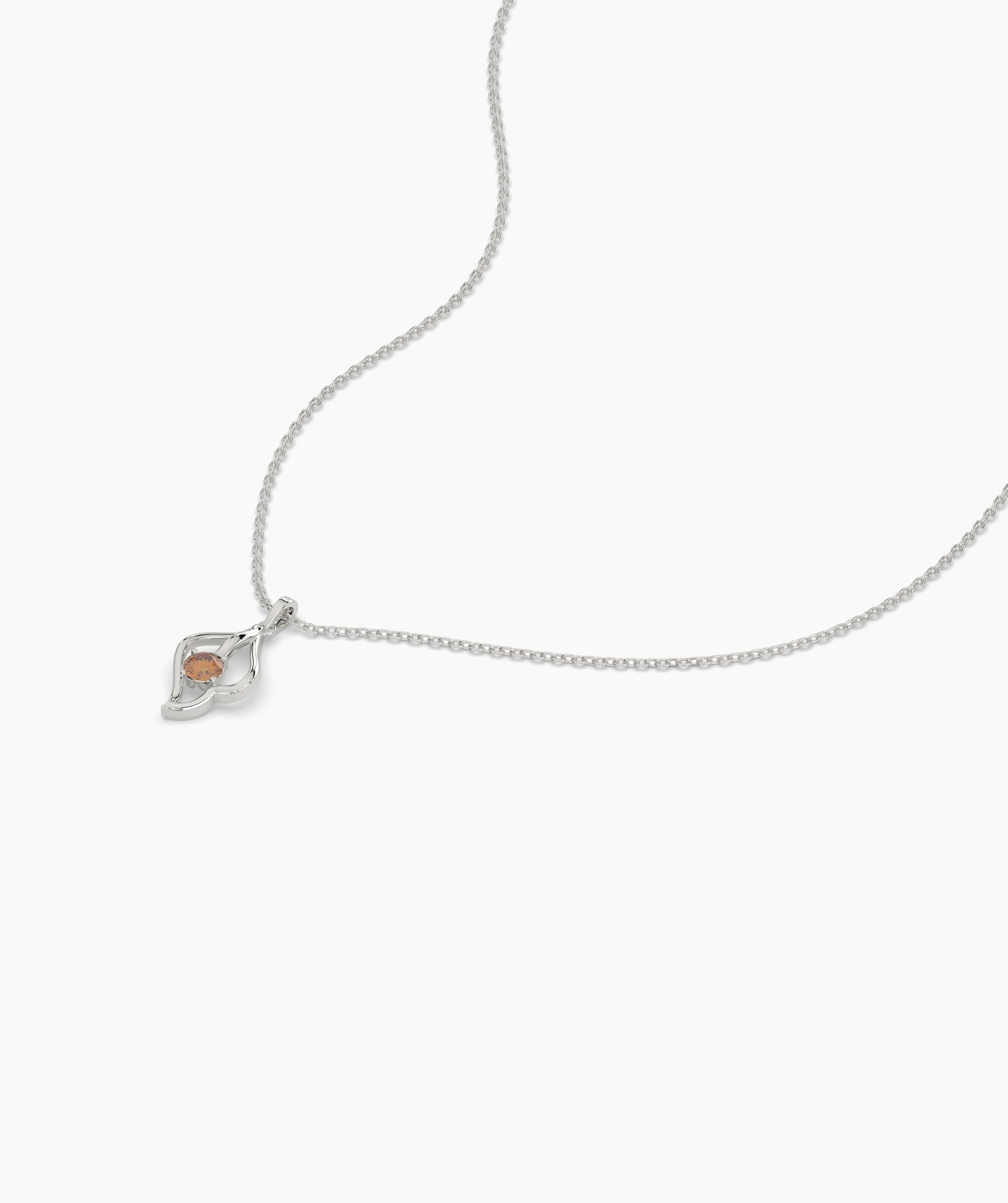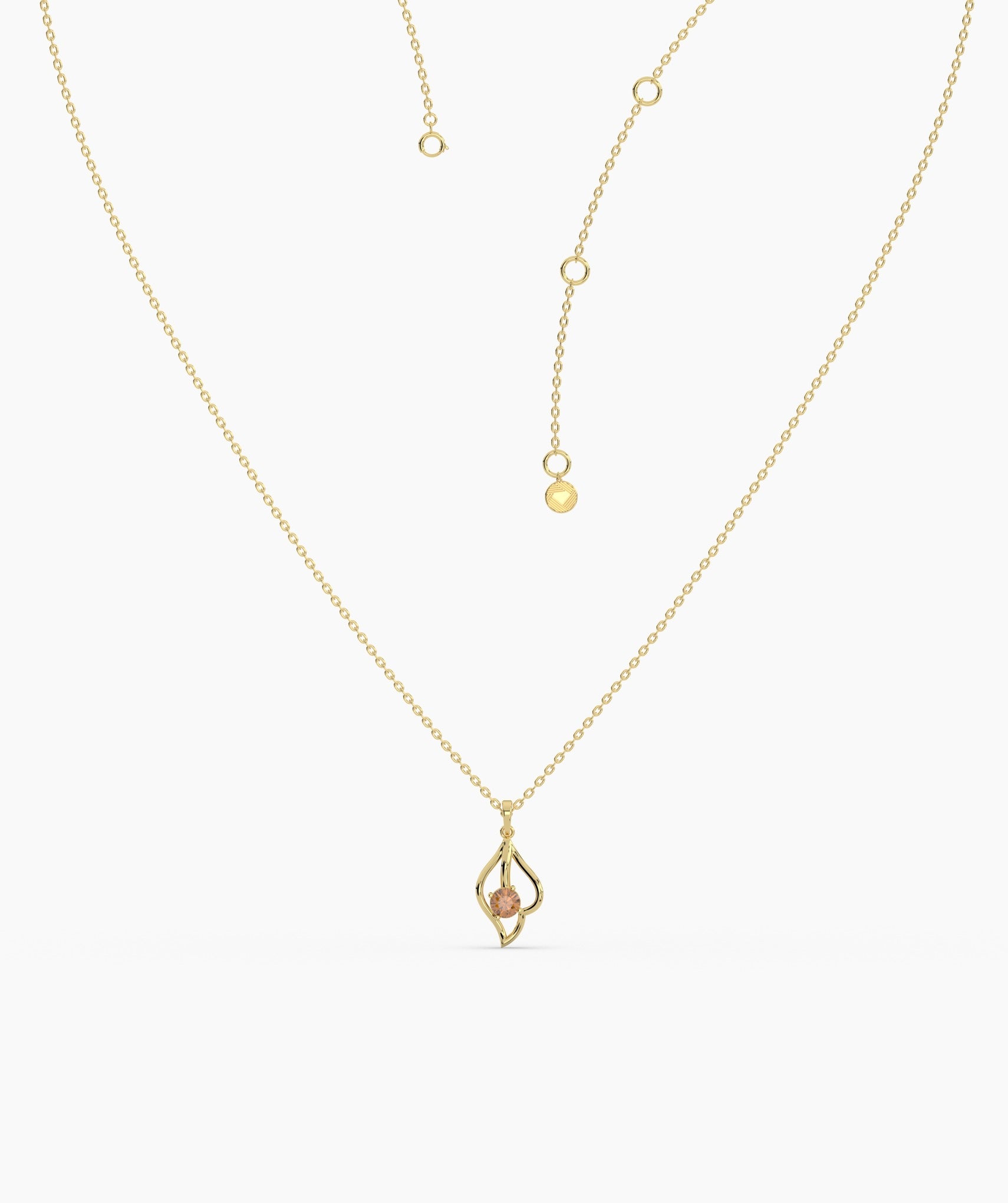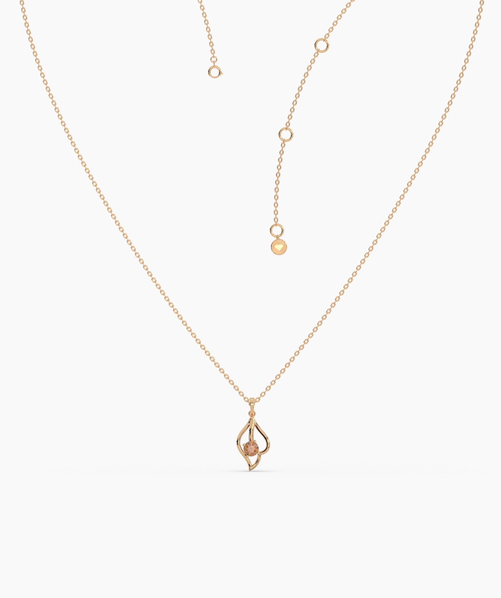 Crafted from solid 14K gold, this elegant pendant features a luminous center stone set in a flowing leaf-inspired frame.