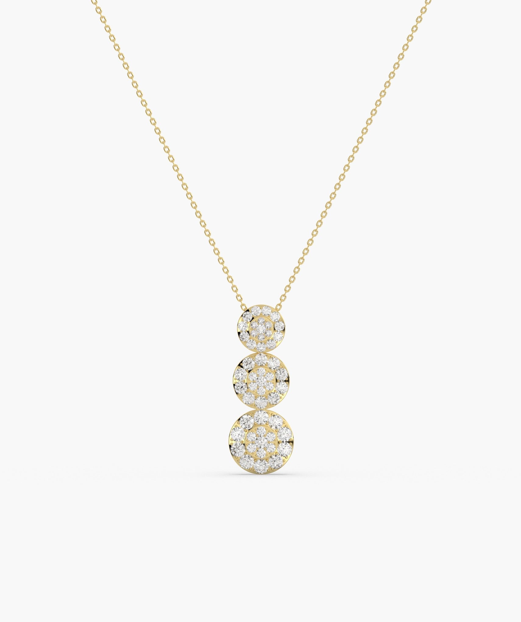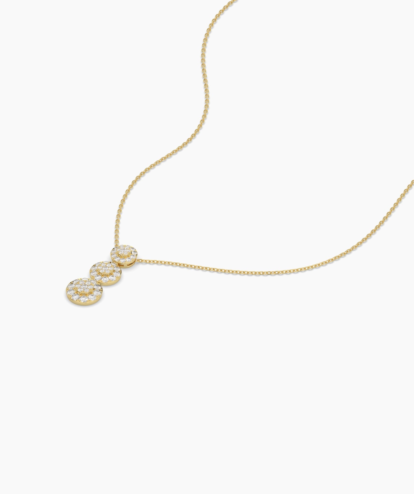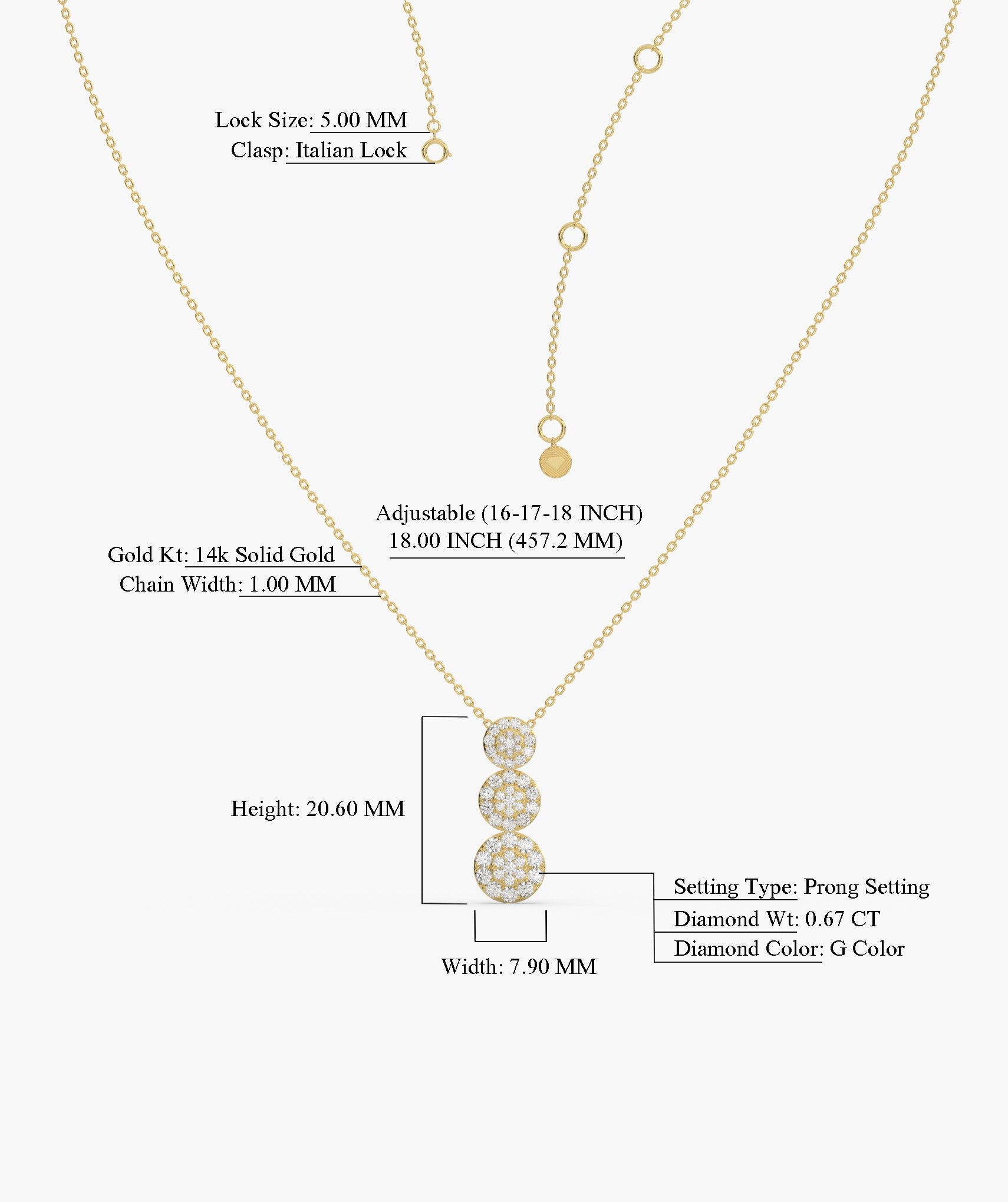 Enhance your collection with this dazzling 14K solid gold necklace, designed with three vertically aligned circles.