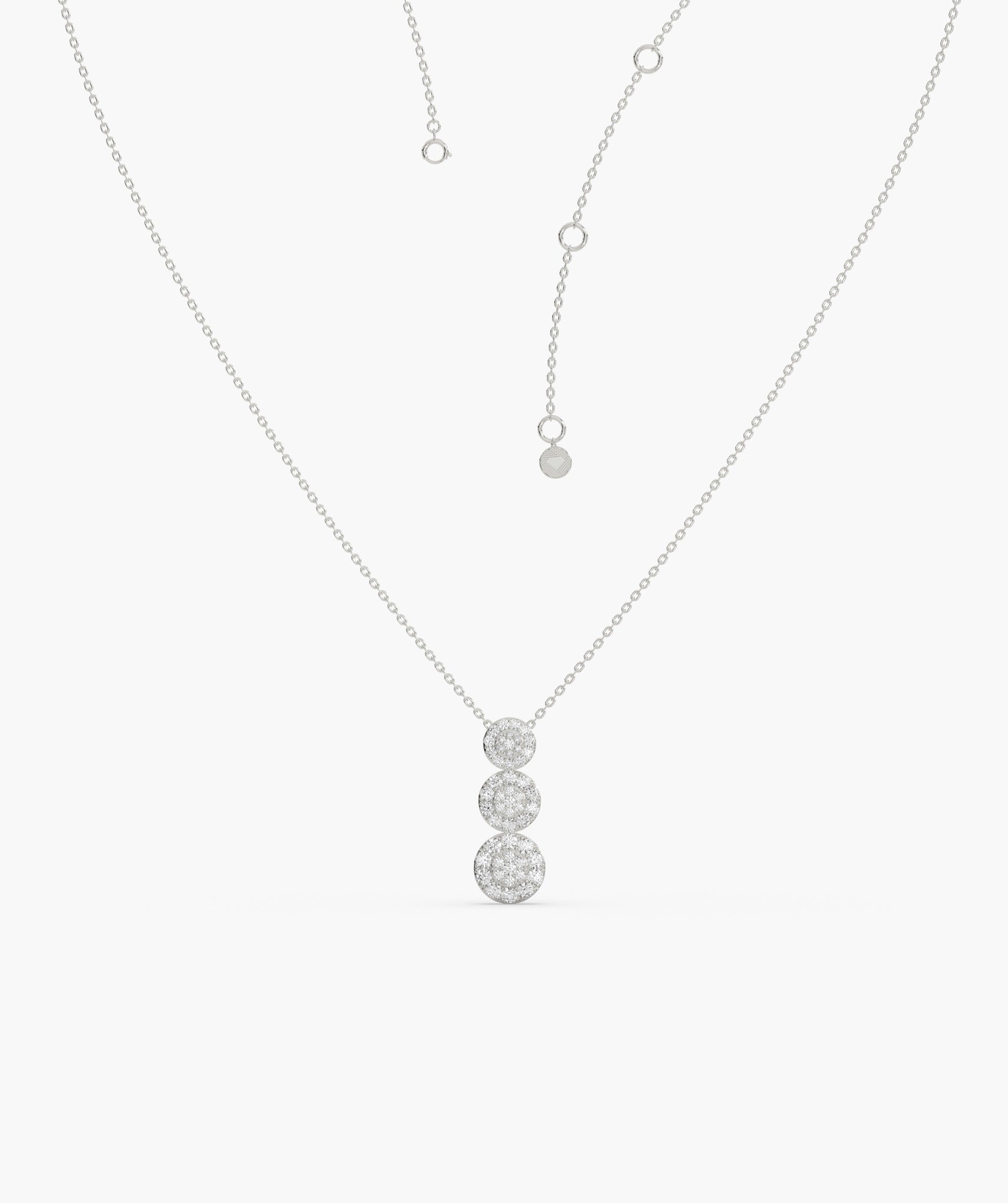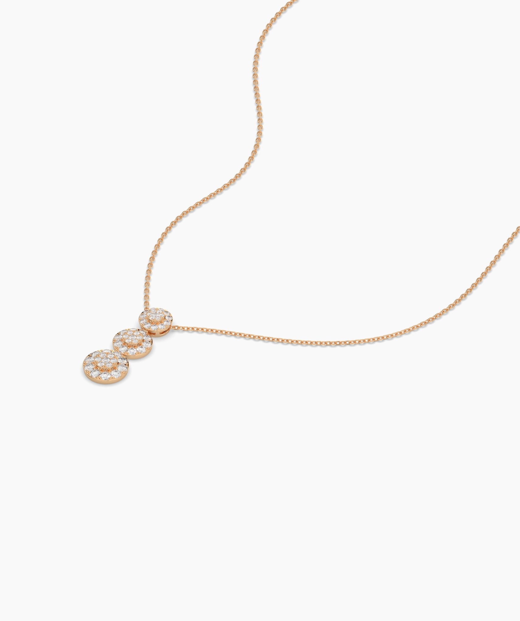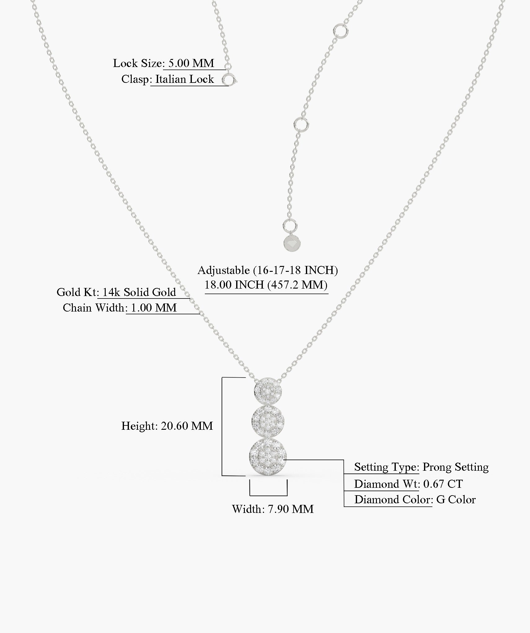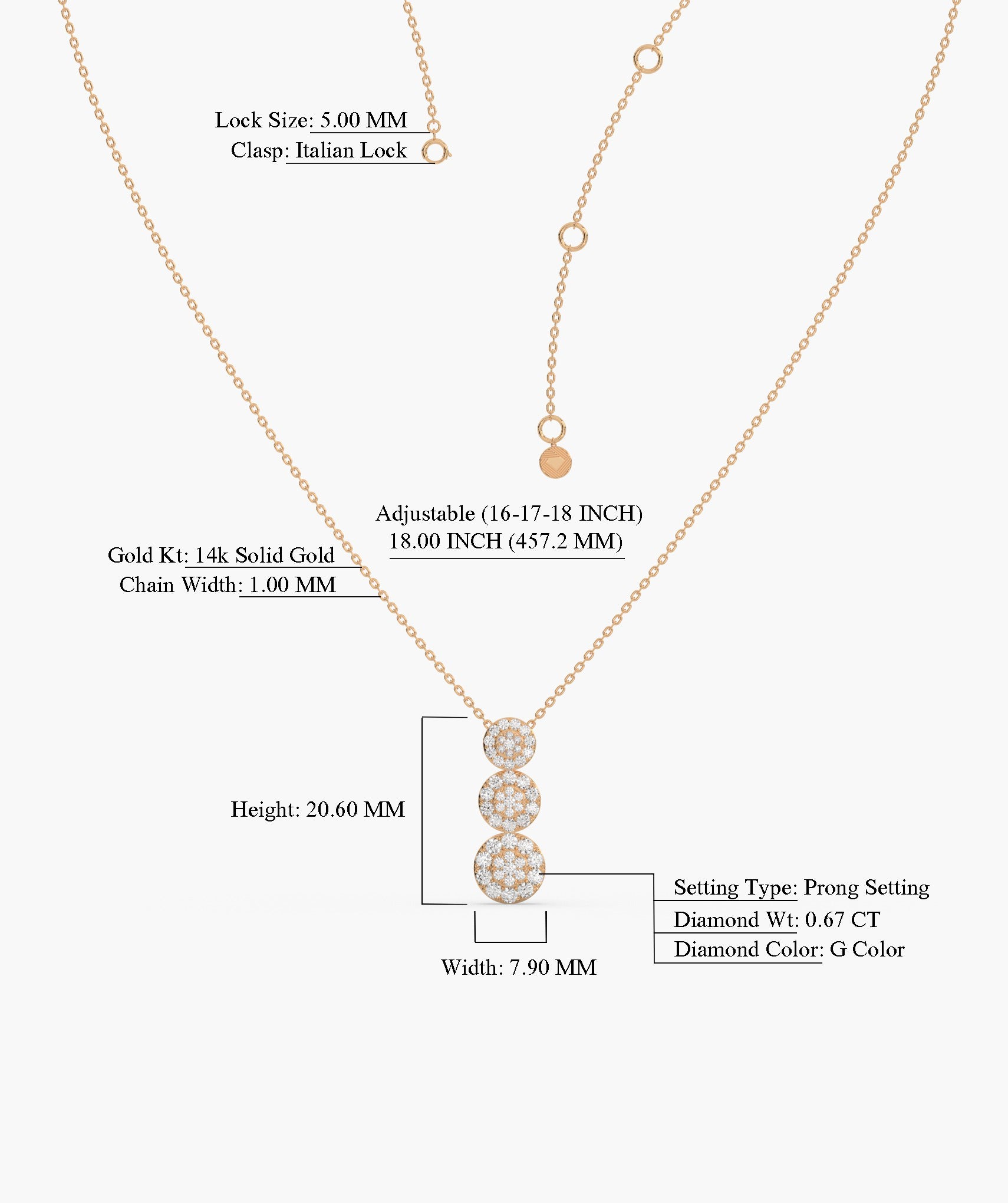 Enhance your collection with this dazzling 14K solid gold necklace, designed with three vertically aligned circles.