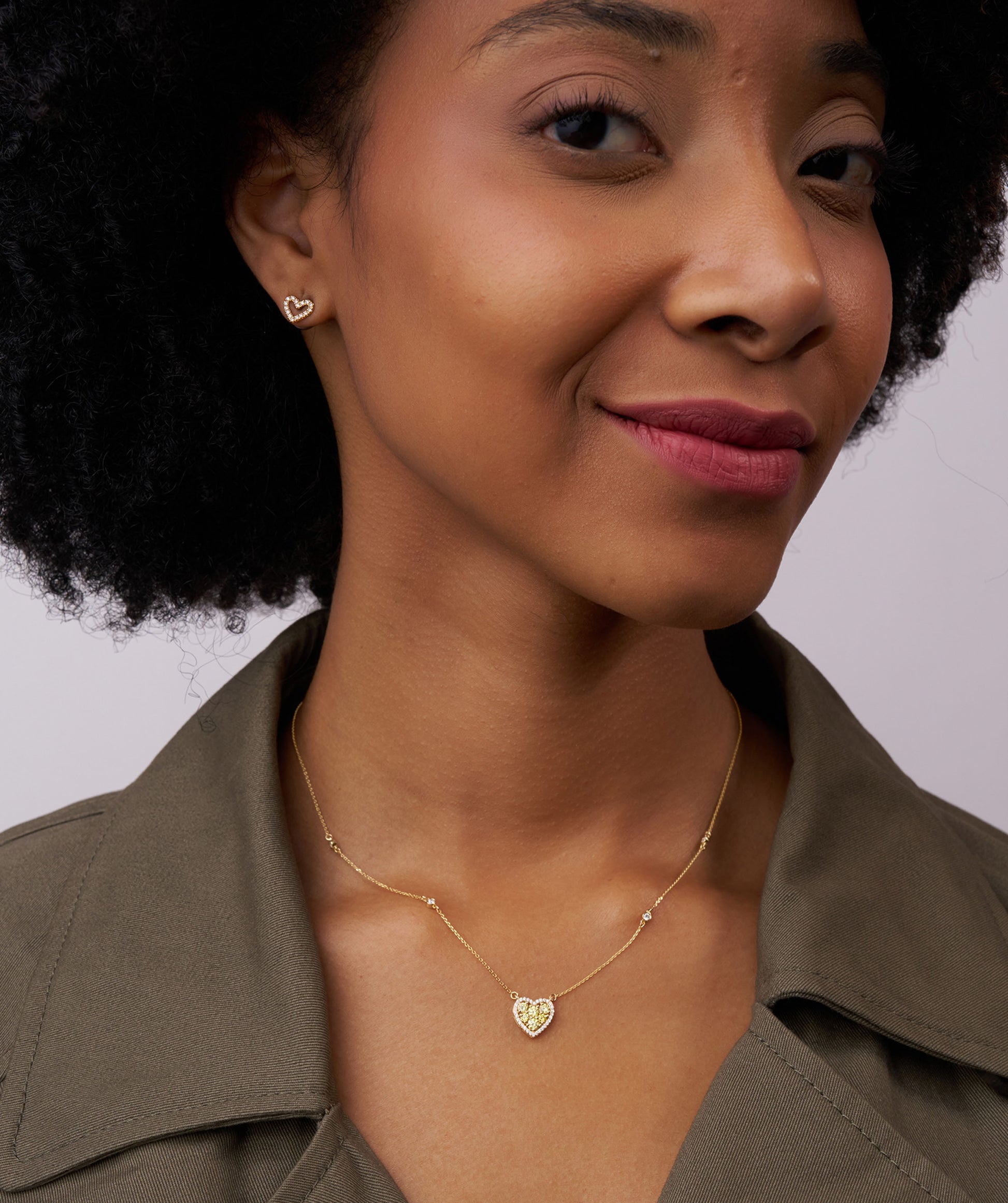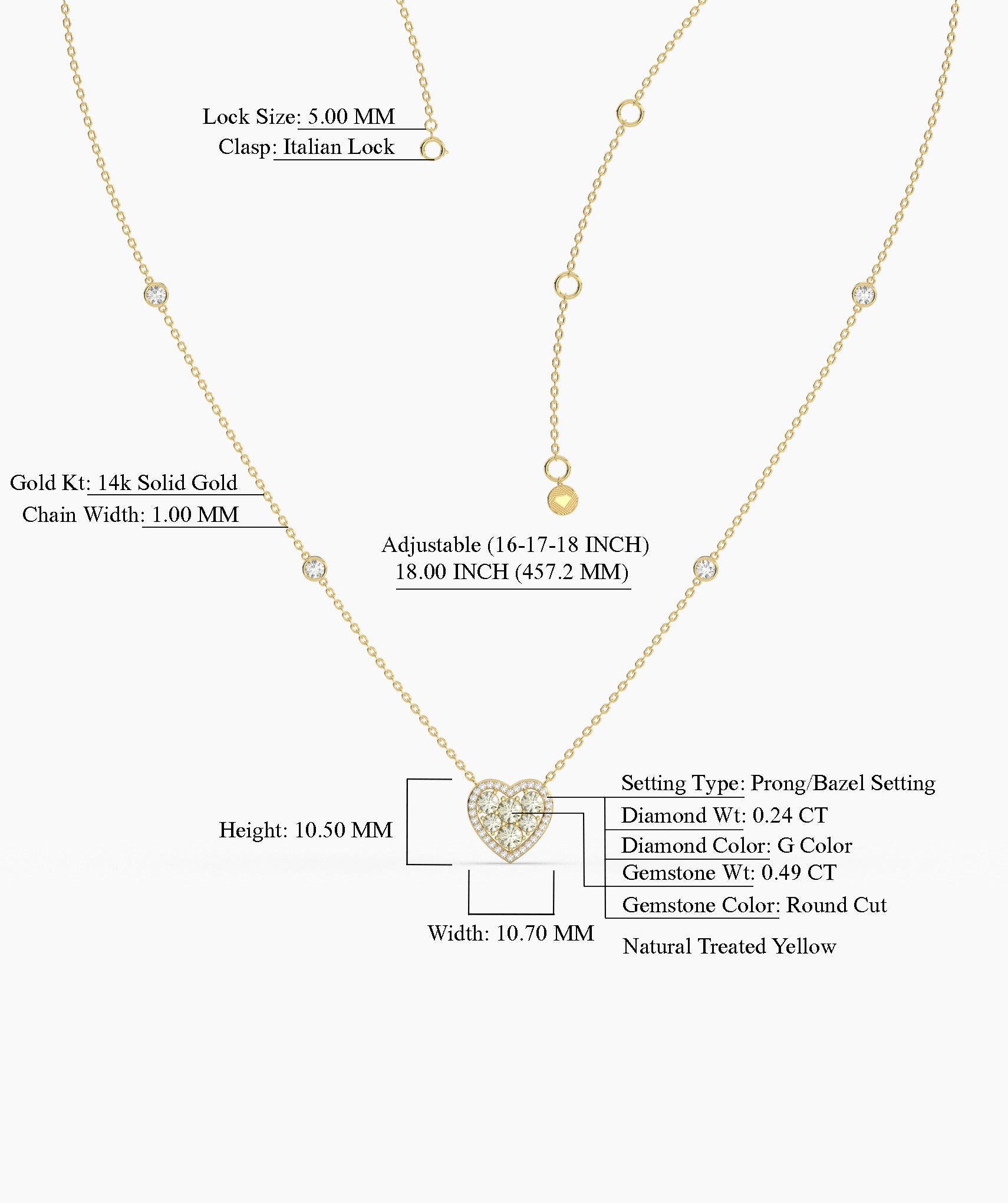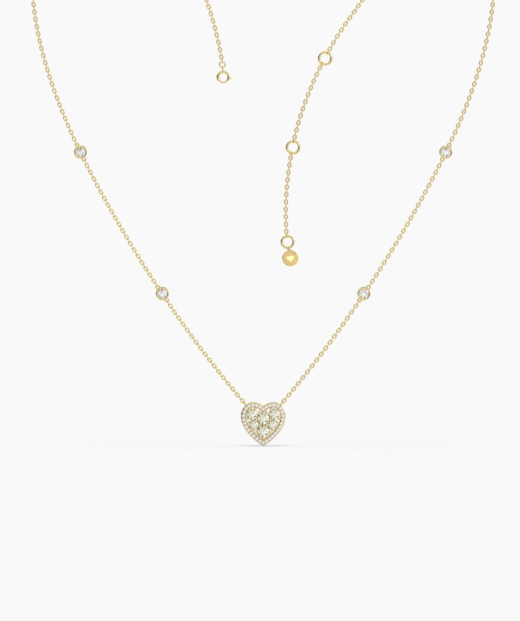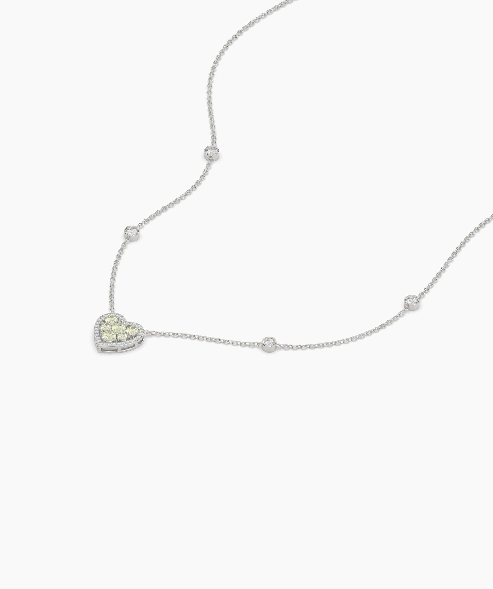 This exquisite necklace features a cluster of sparkling yellow diamonds in a heart silhouette, symbolizing love and elegance.