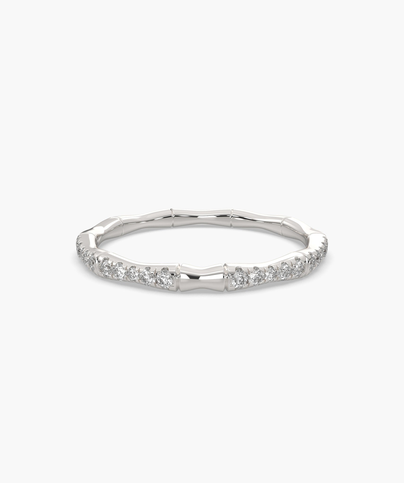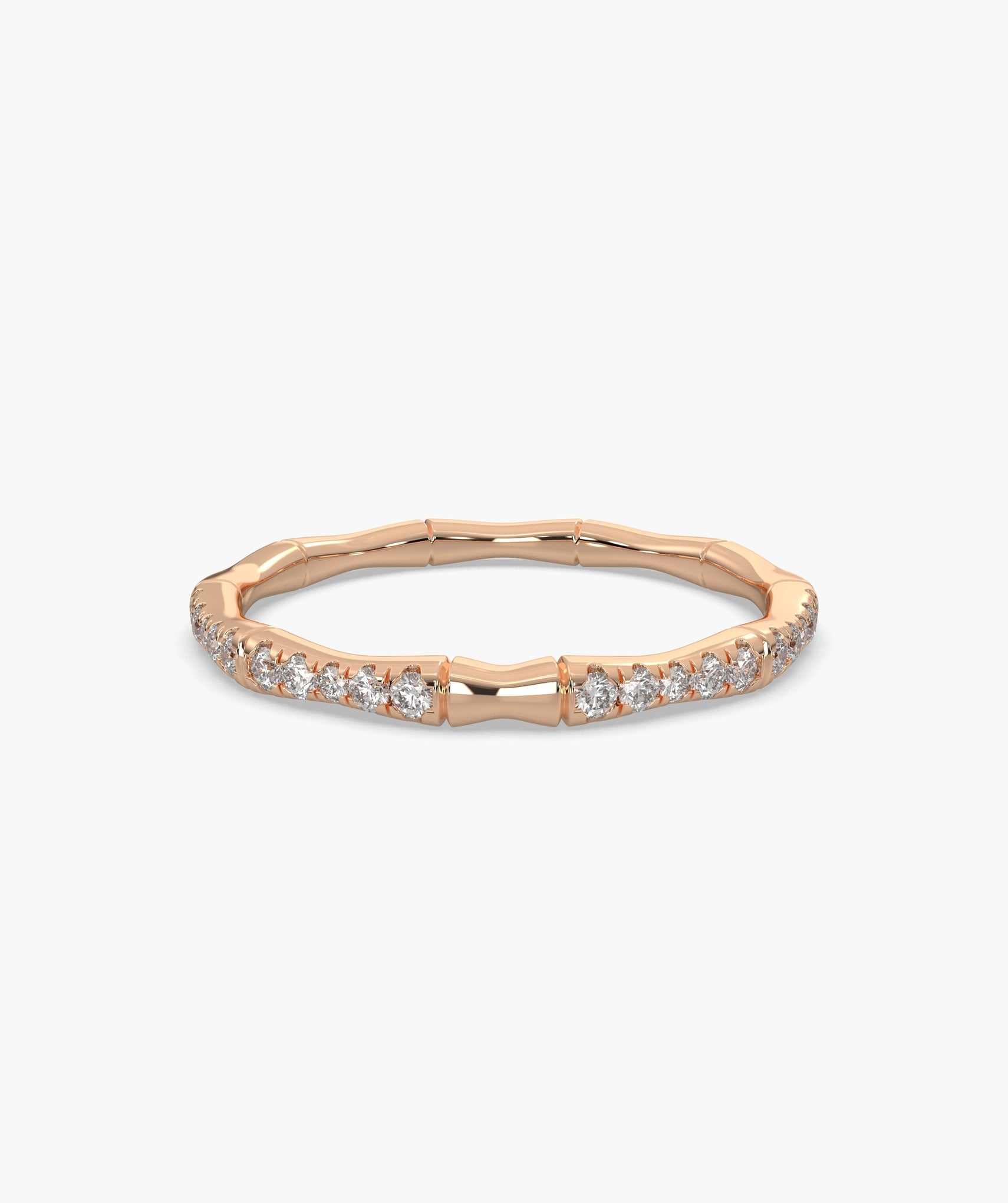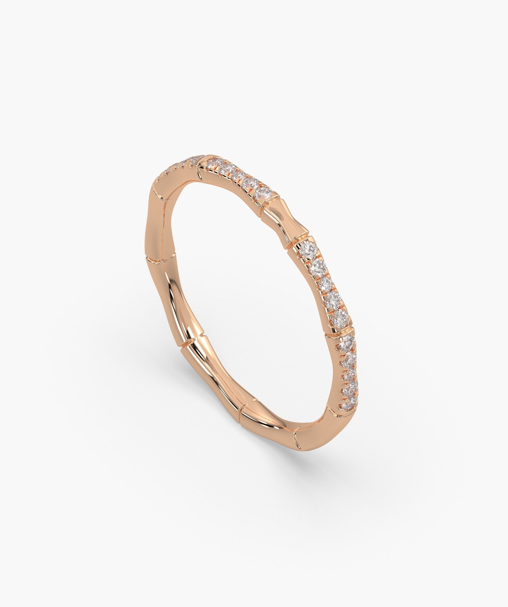 A unique bamboo-inspired band in 14K yellow gold, adorned with sparkling round diamonds. A perfect mix of nature and elegance for everyday luxury.