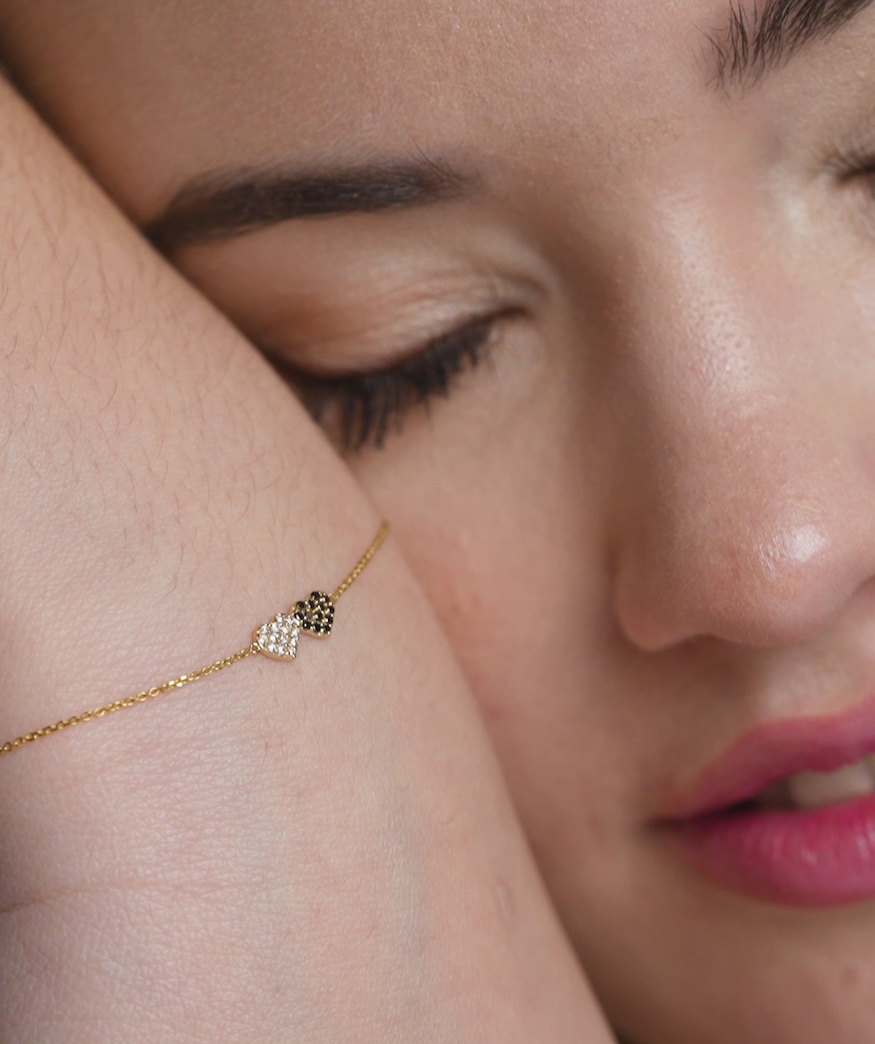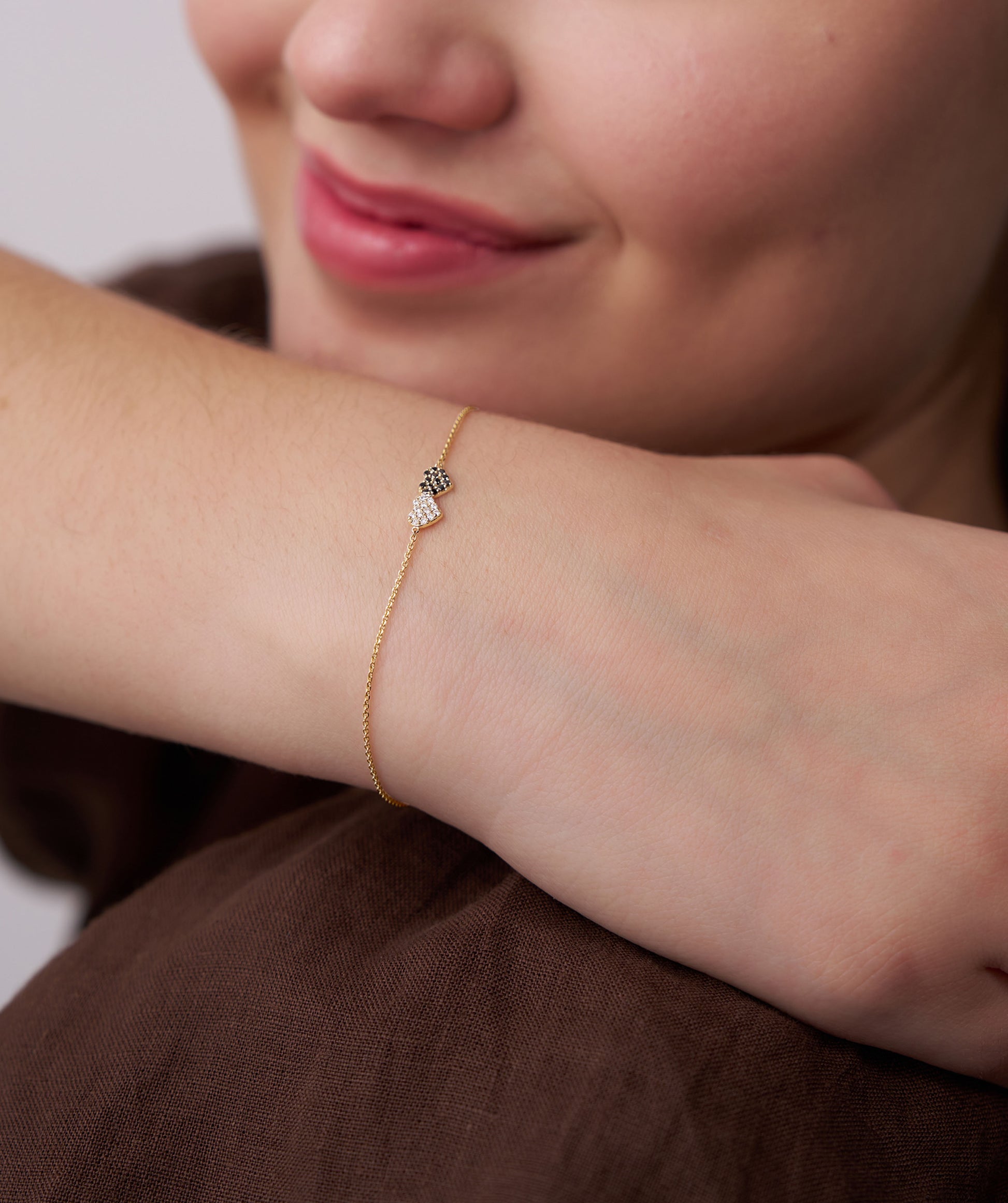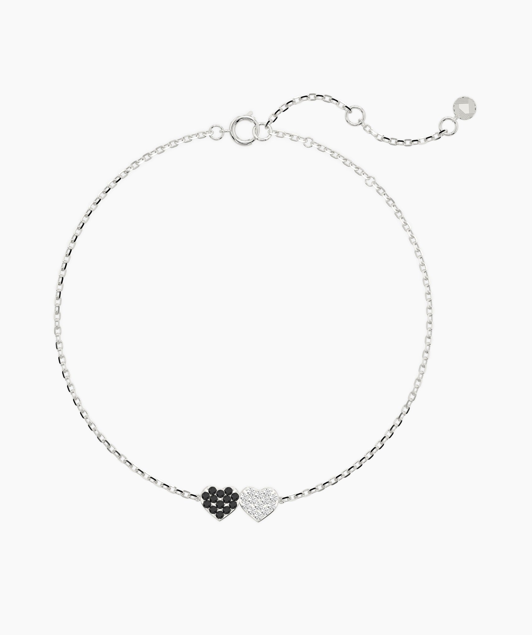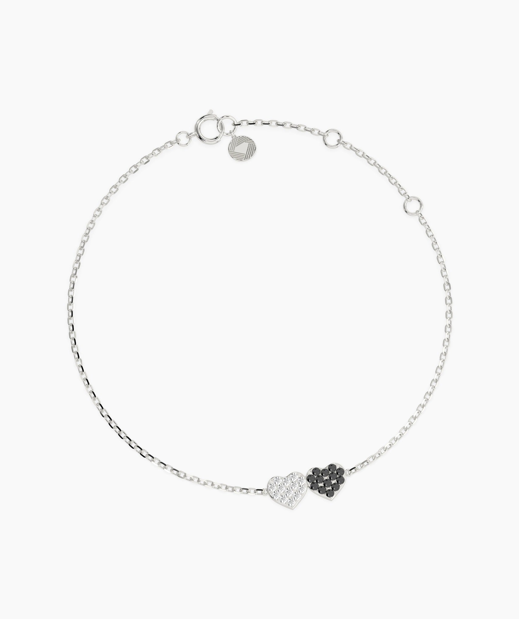 Celebrate love and harmony with this elegant two-tone heart bracelet, designed with dazzling white and black crystals for a timeless look.