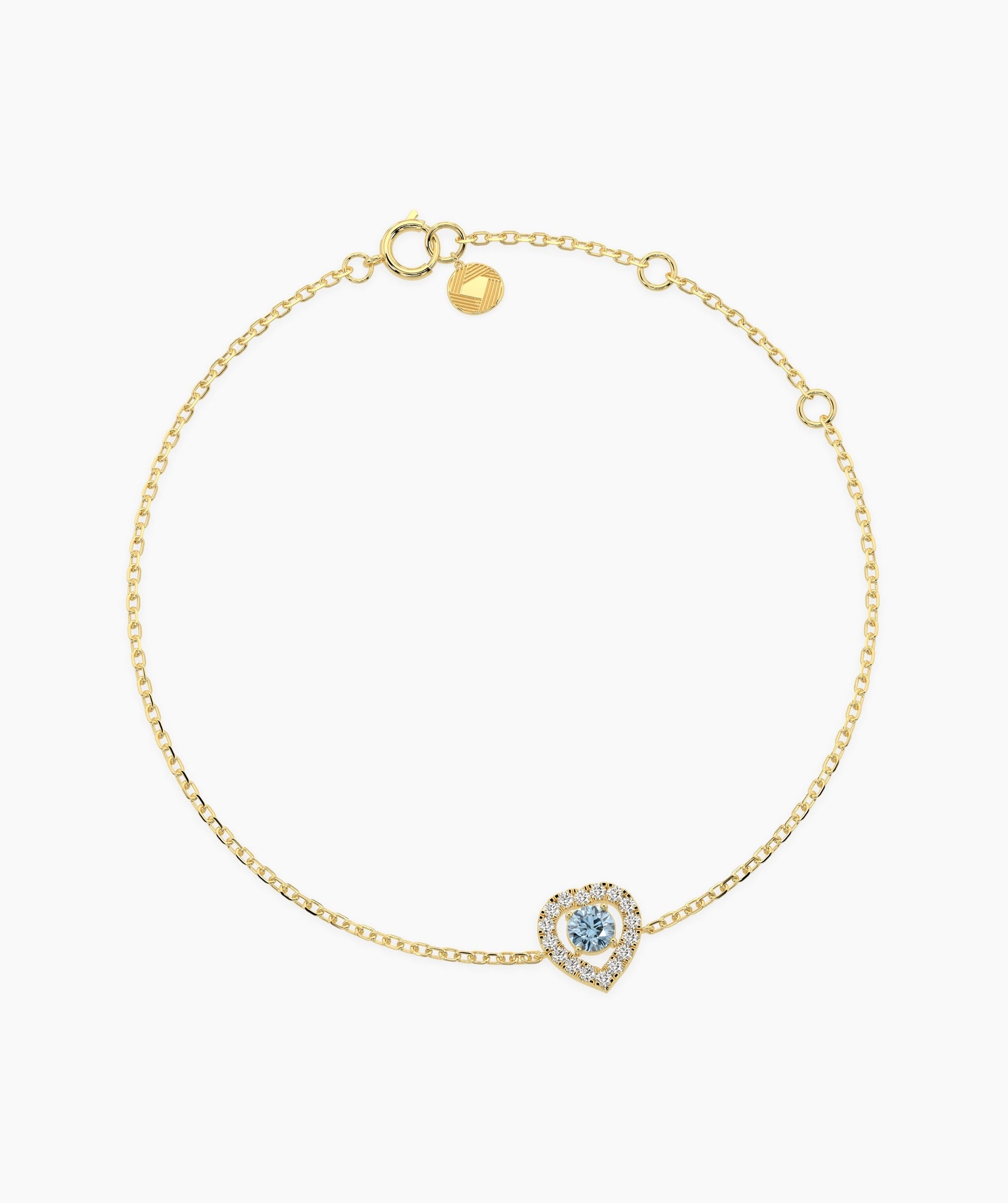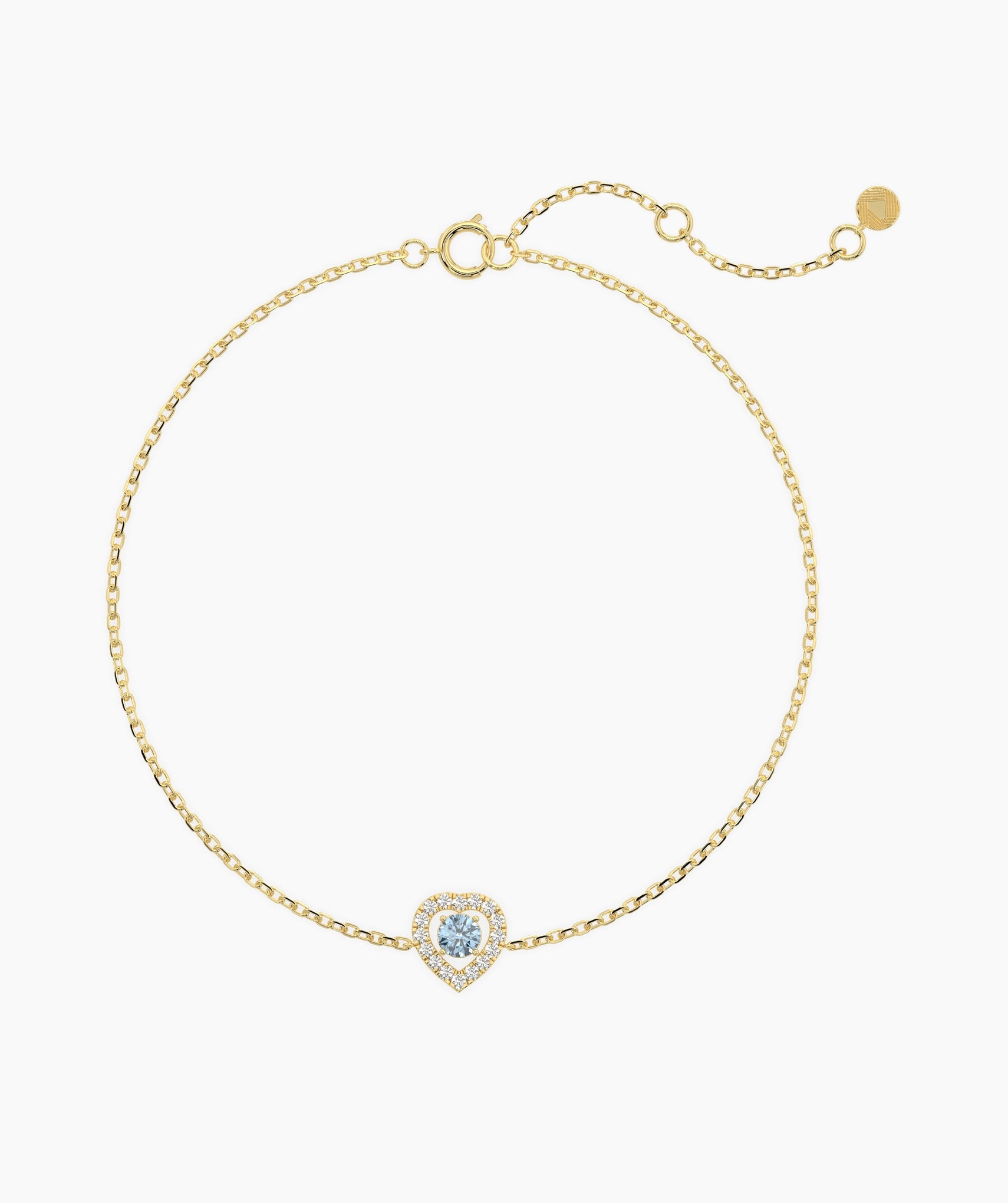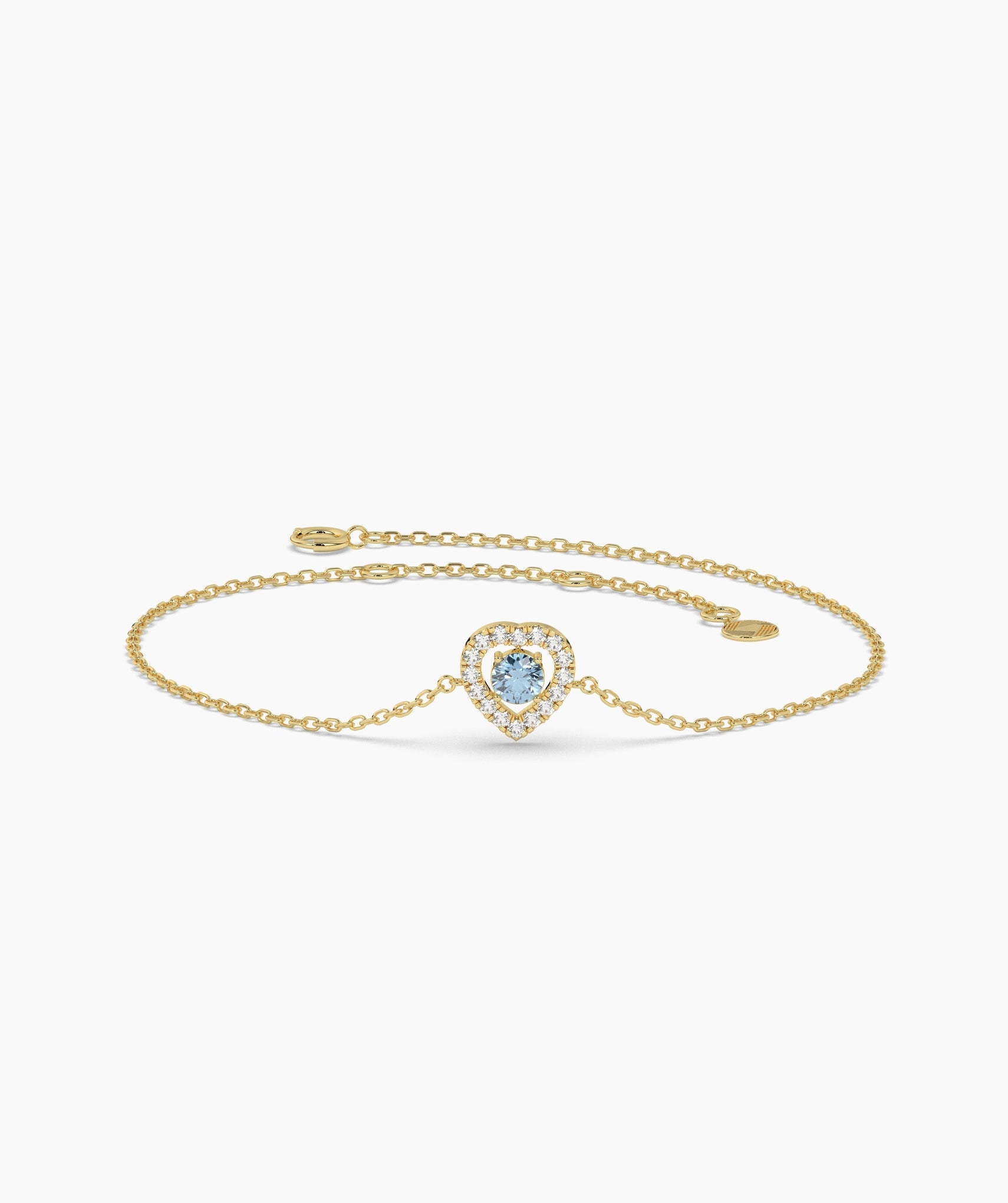 Rewrite the rules of romance with a color that feels as deep as it does bright. This captivating bracelet centers on a 0.12-carat round natural treated blue diamond, its electric hue intensified by a halo of 0.08 carats of G-color white diamonds. The heart-shaped silhouette (measuring 7.5mm high) uses a detailed prong and fishtail setting to maximize the sparkle, creating a focal point that is both sweet and sophisticated. Crafted in 14K solid gold, the station floats on a fine 1.00mm chain that adjusts from 6 to 7 inches, ensuring a perfect fit for any wrist size. Whether it serves as your "something blue" or just a daily reminder of self-love, this piece adds a refreshing pop of color to the classic heart motif. Available in yellow, white, and rose gold.