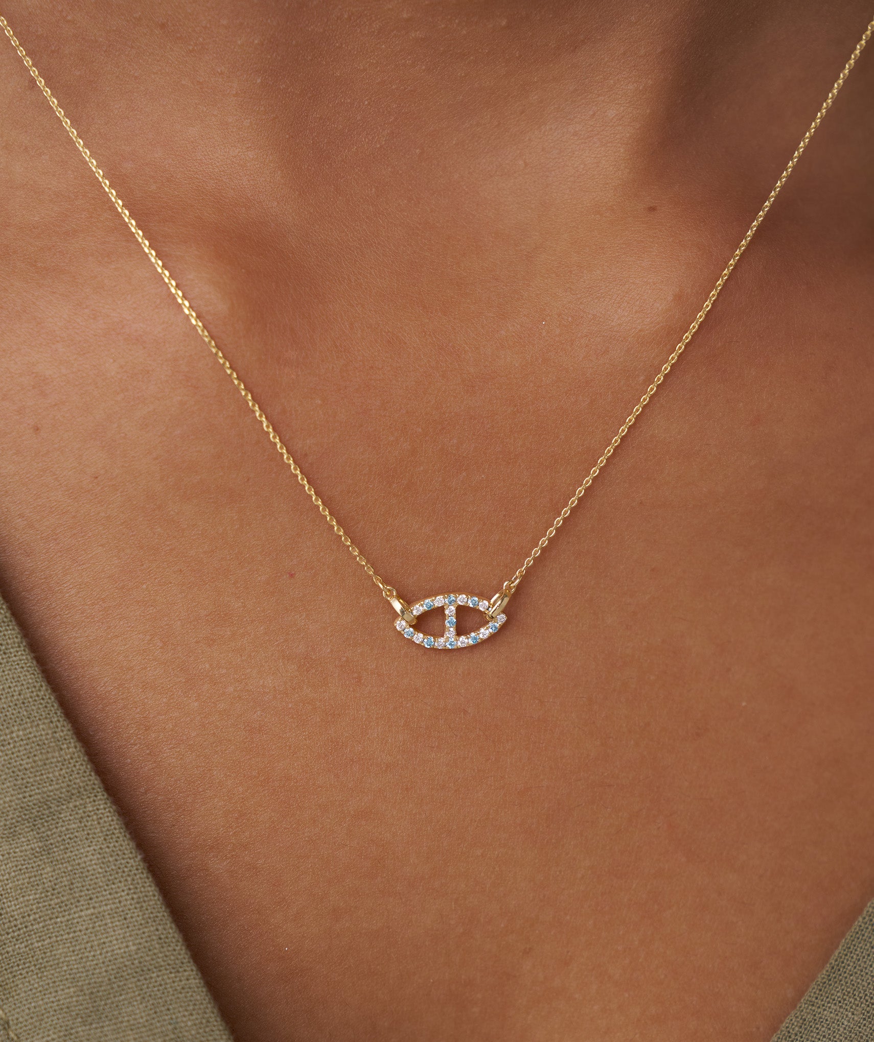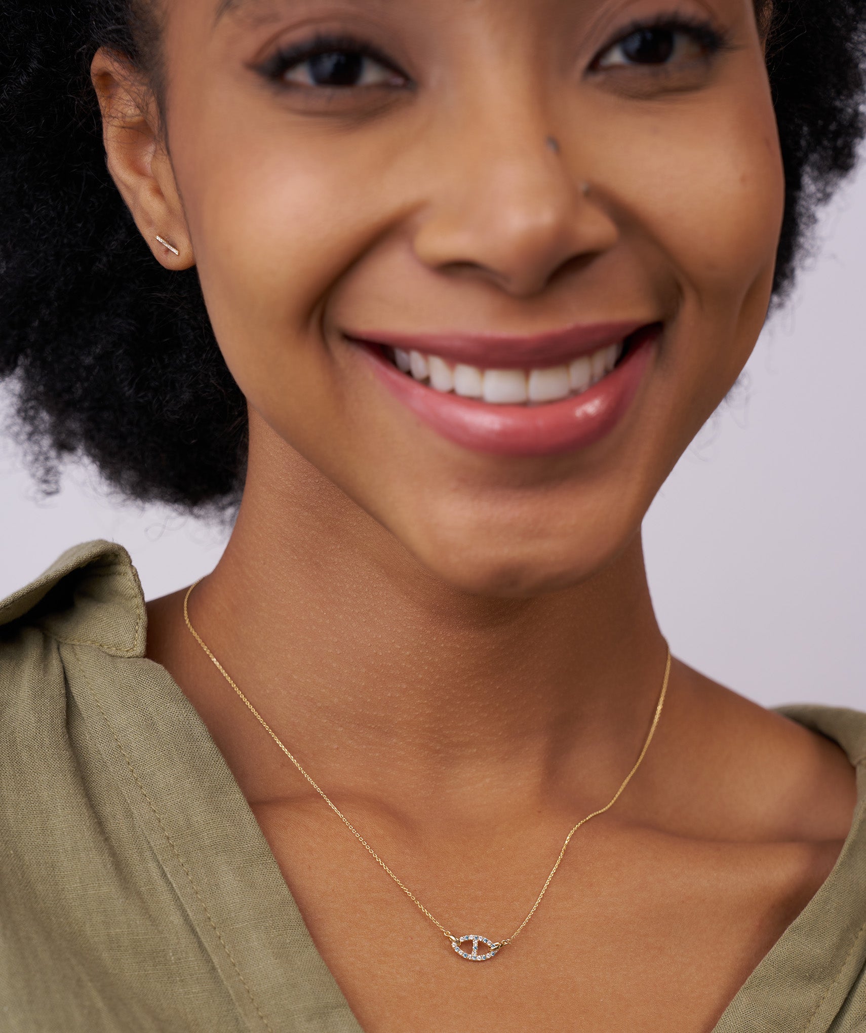 A modern twist on classic elegance—this 14K solid gold oval pendant sparkles with brilliant pavé for a chic, contemporary look.
