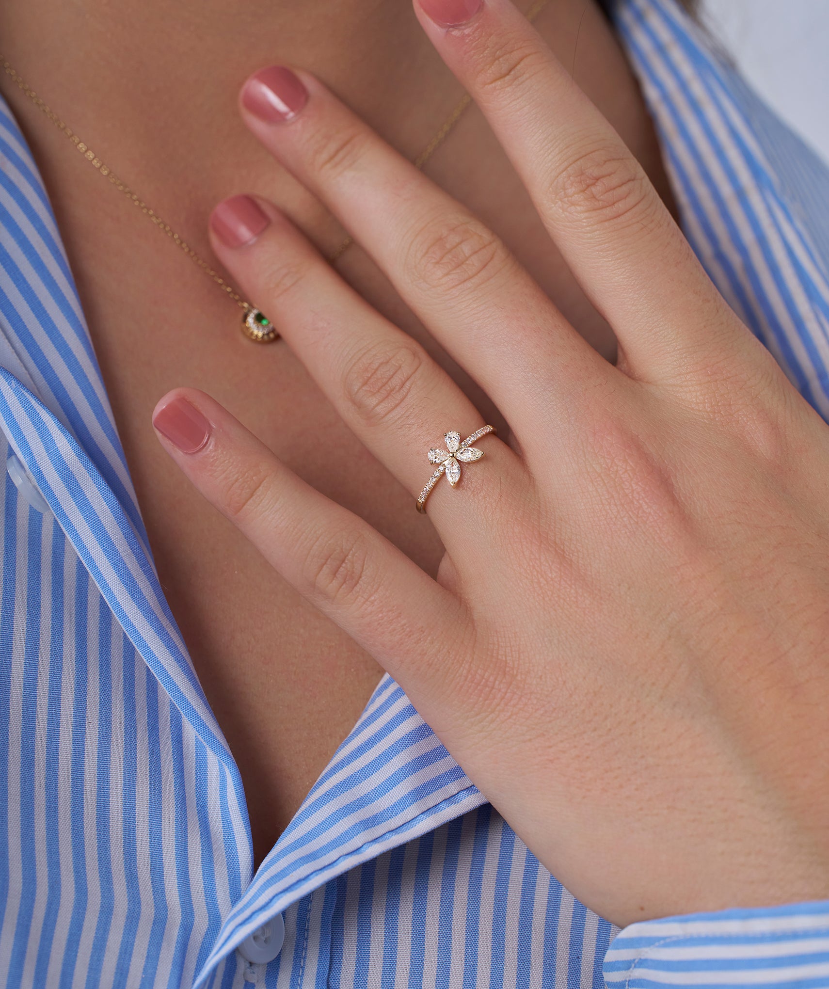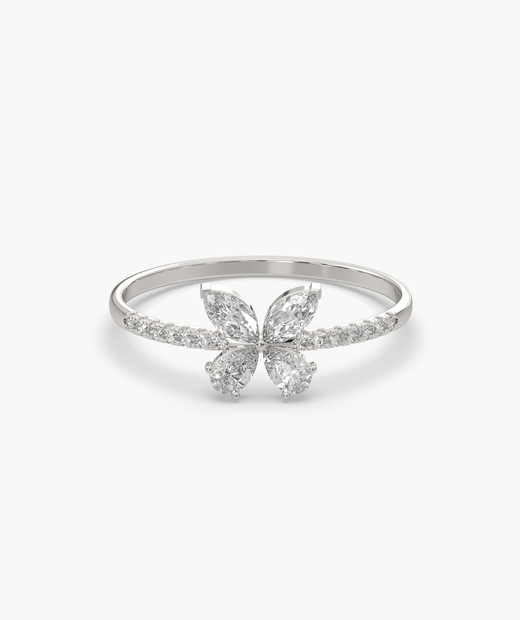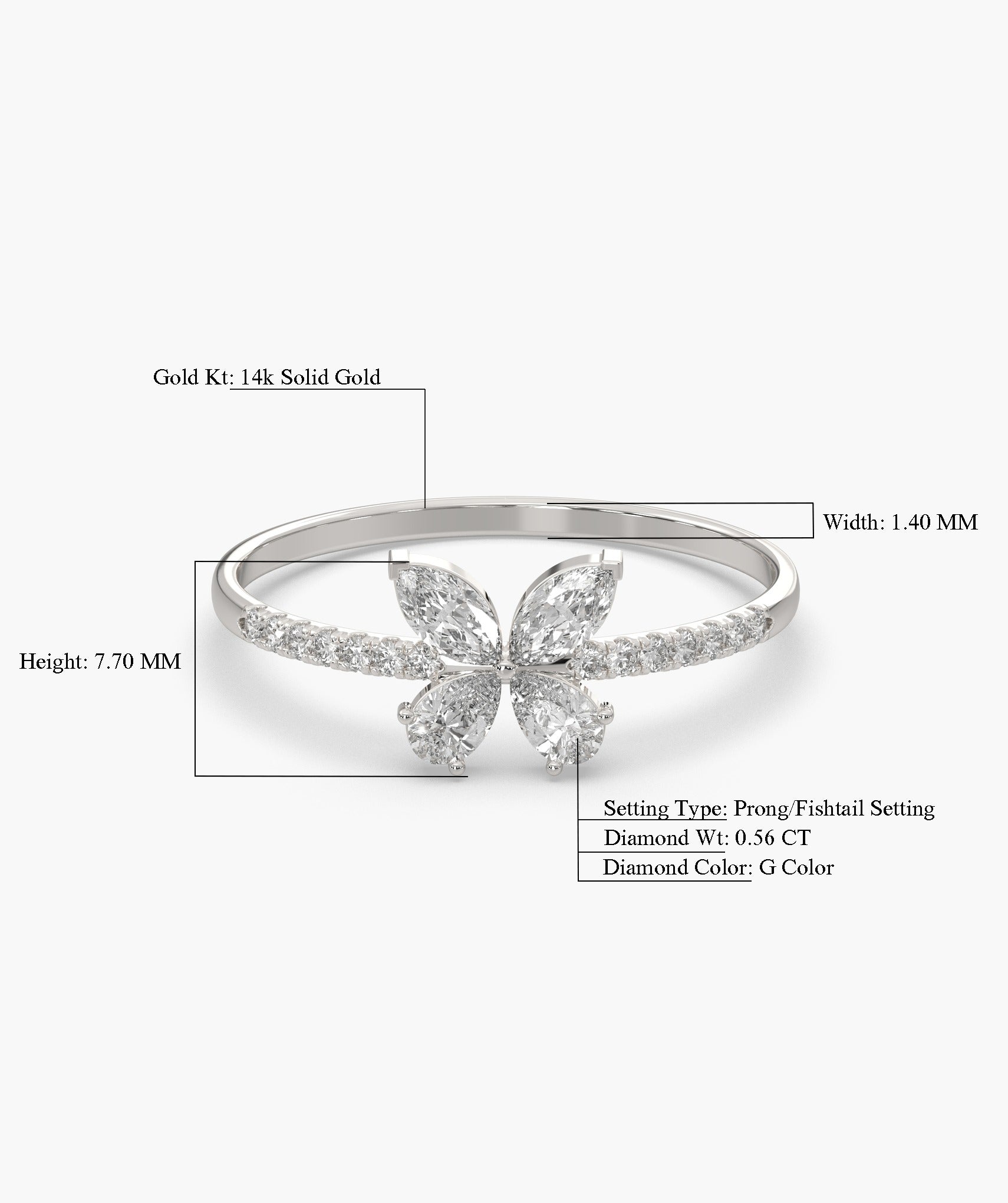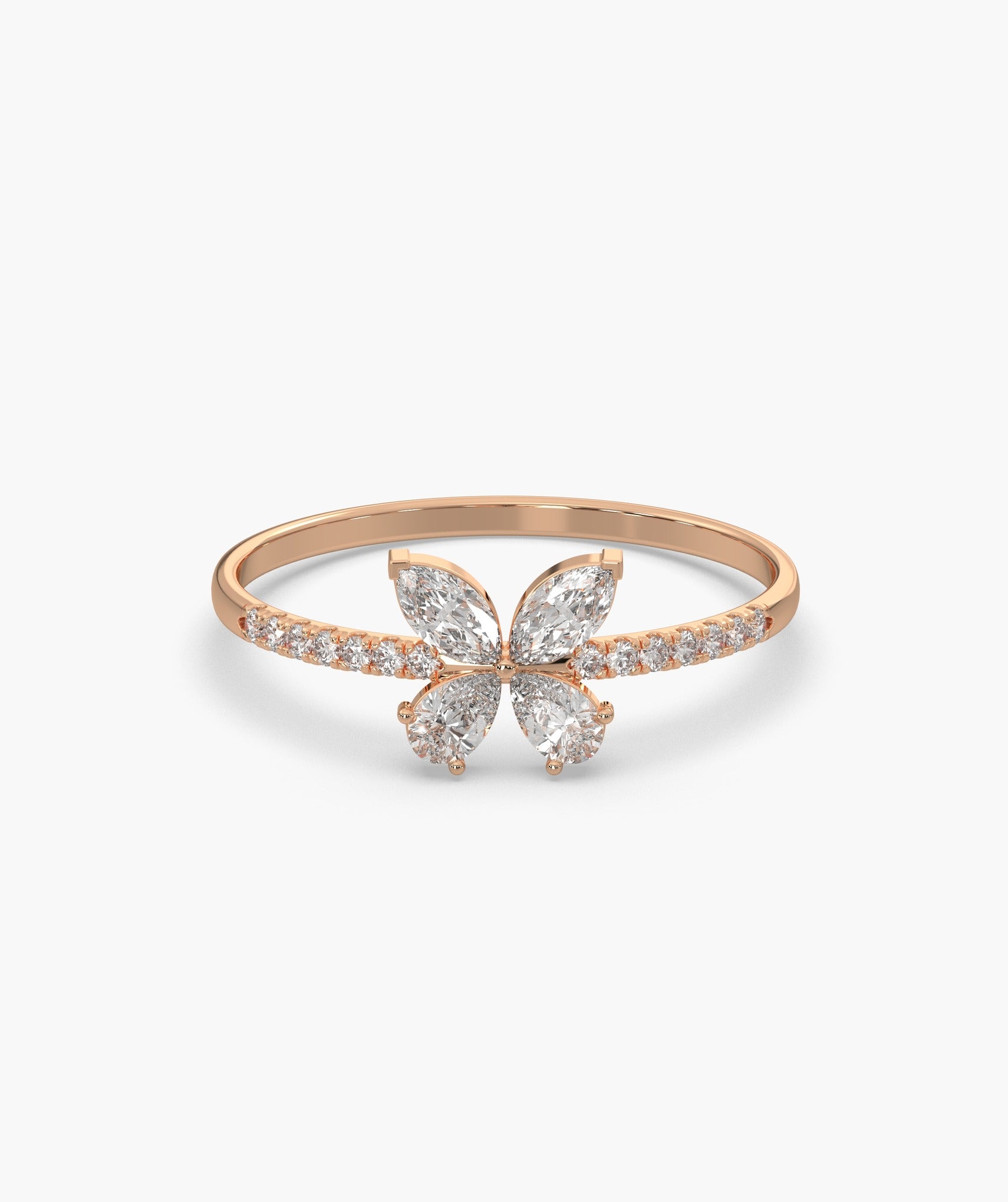 Delicate 14K gold ring featuring a butterfly design with marquise and round diamonds, symbolizing grace and transformation.
