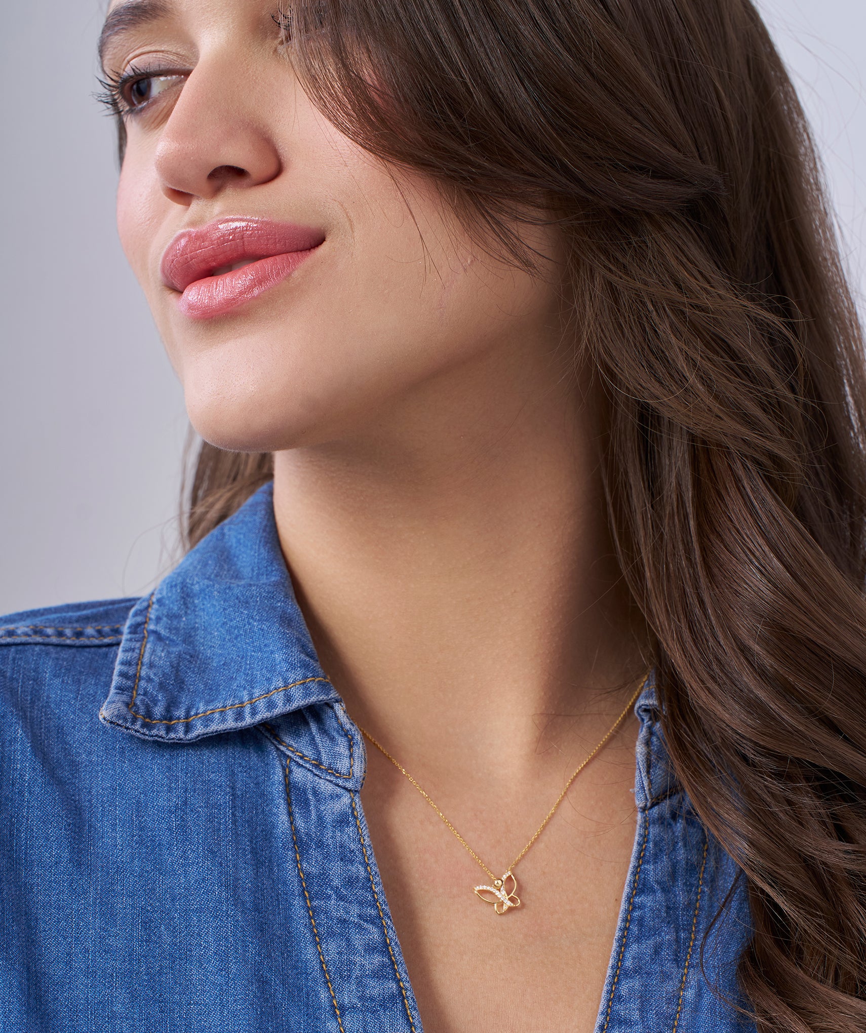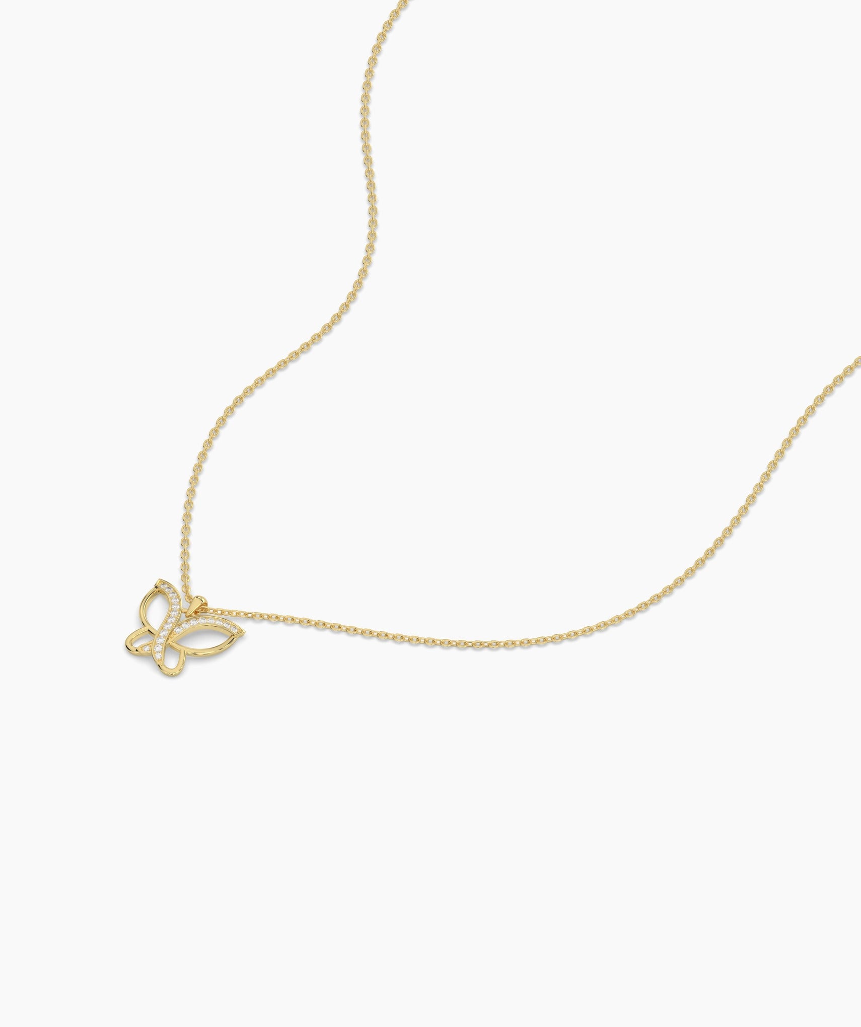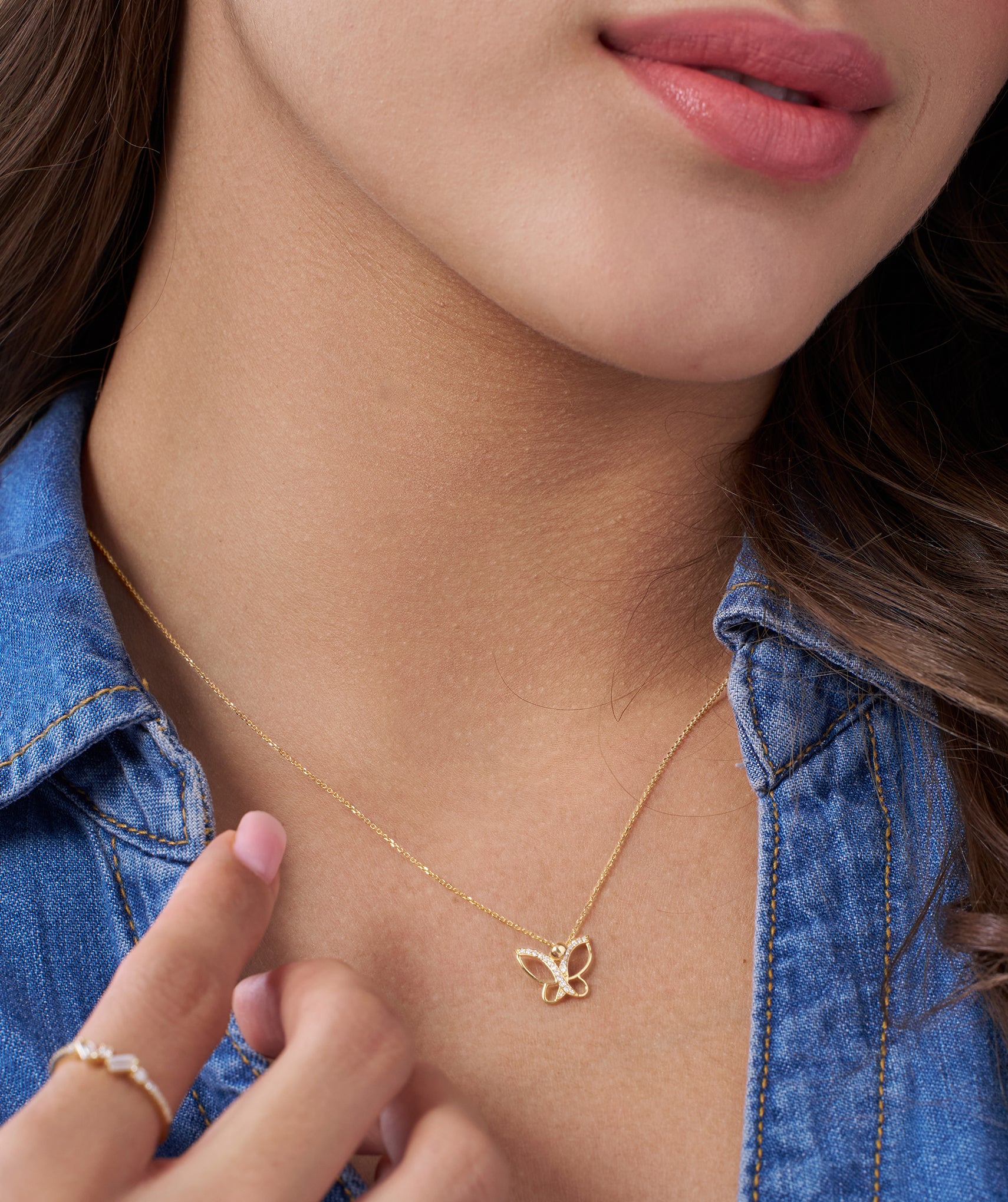 Elevate your style with this 14K gold butterfly pendant necklace, adorned with glittering diamonds for a radiant and elegant finish.