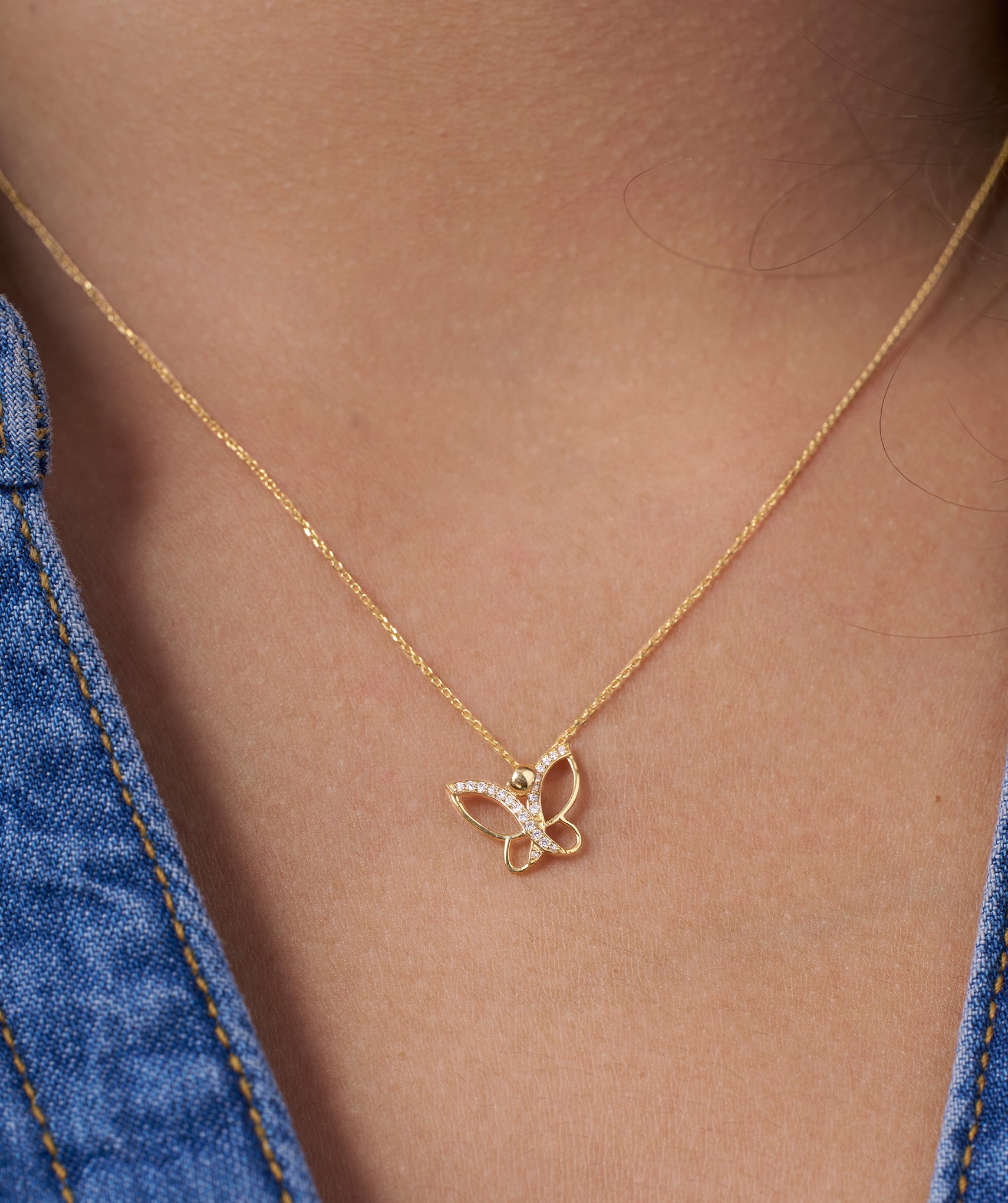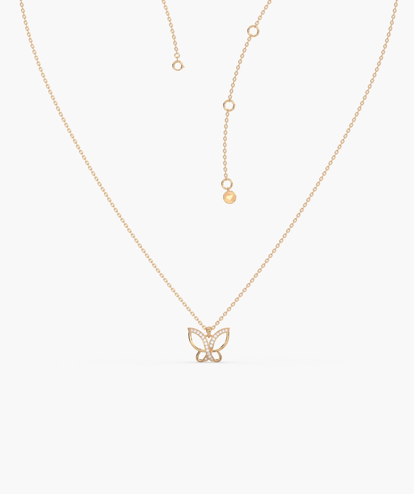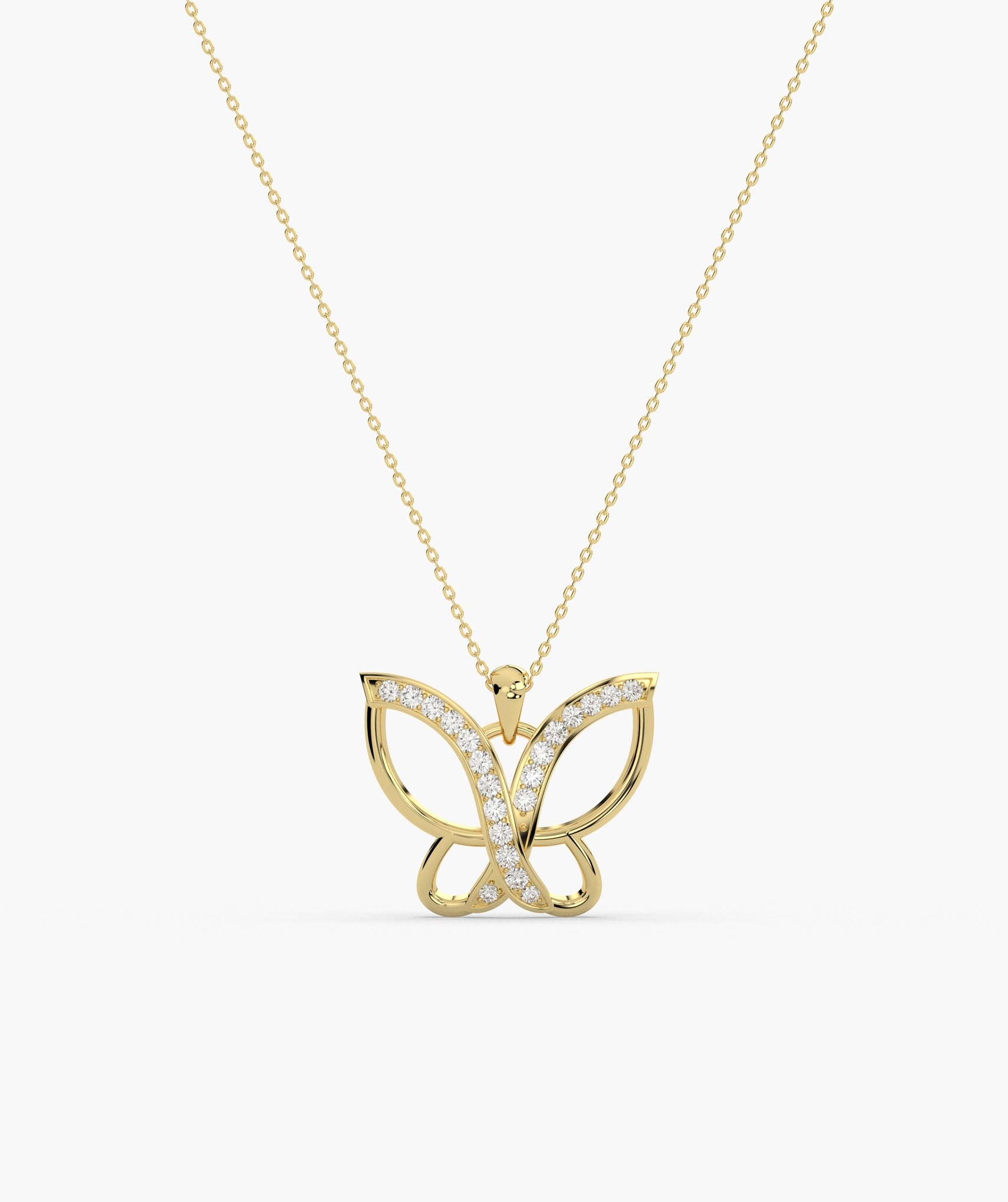 Elevate your style with this 14K gold butterfly pendant necklace, adorned with glittering diamonds for a radiant and elegant finish.