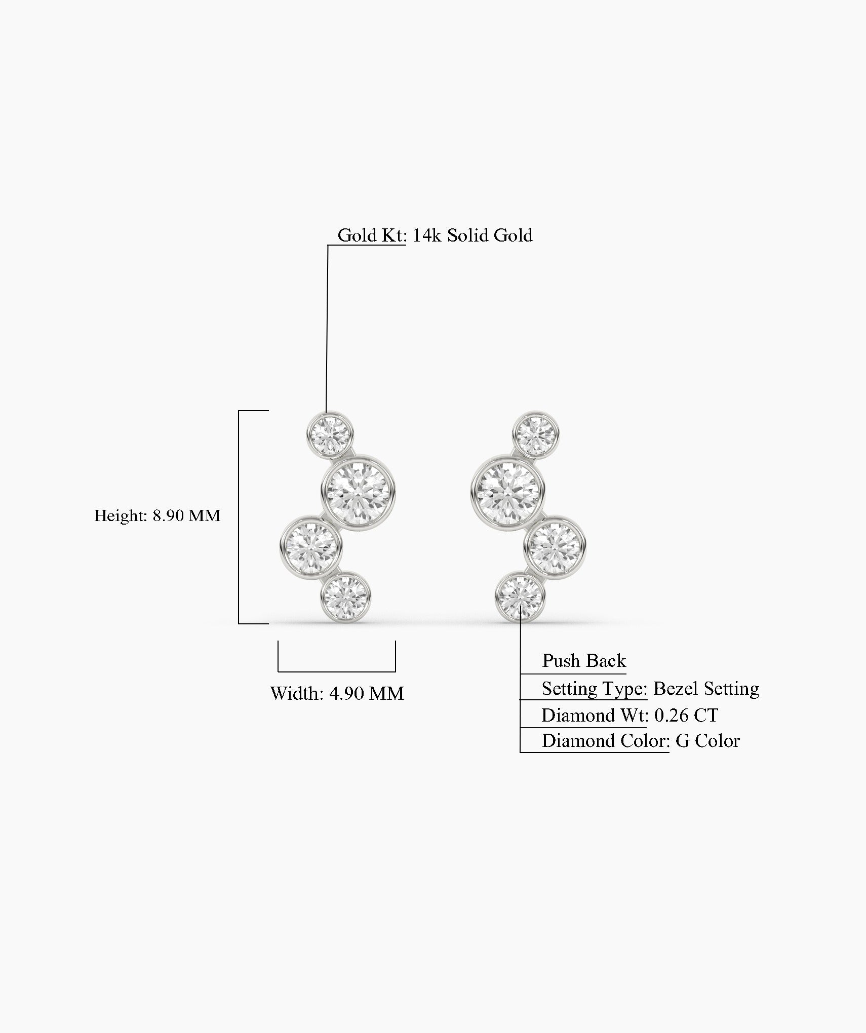 These 14K solid gold earrings feature a graceful cascade design, with three vertically aligned diamonds in each piece, offering a modern twist on classic elegance.
