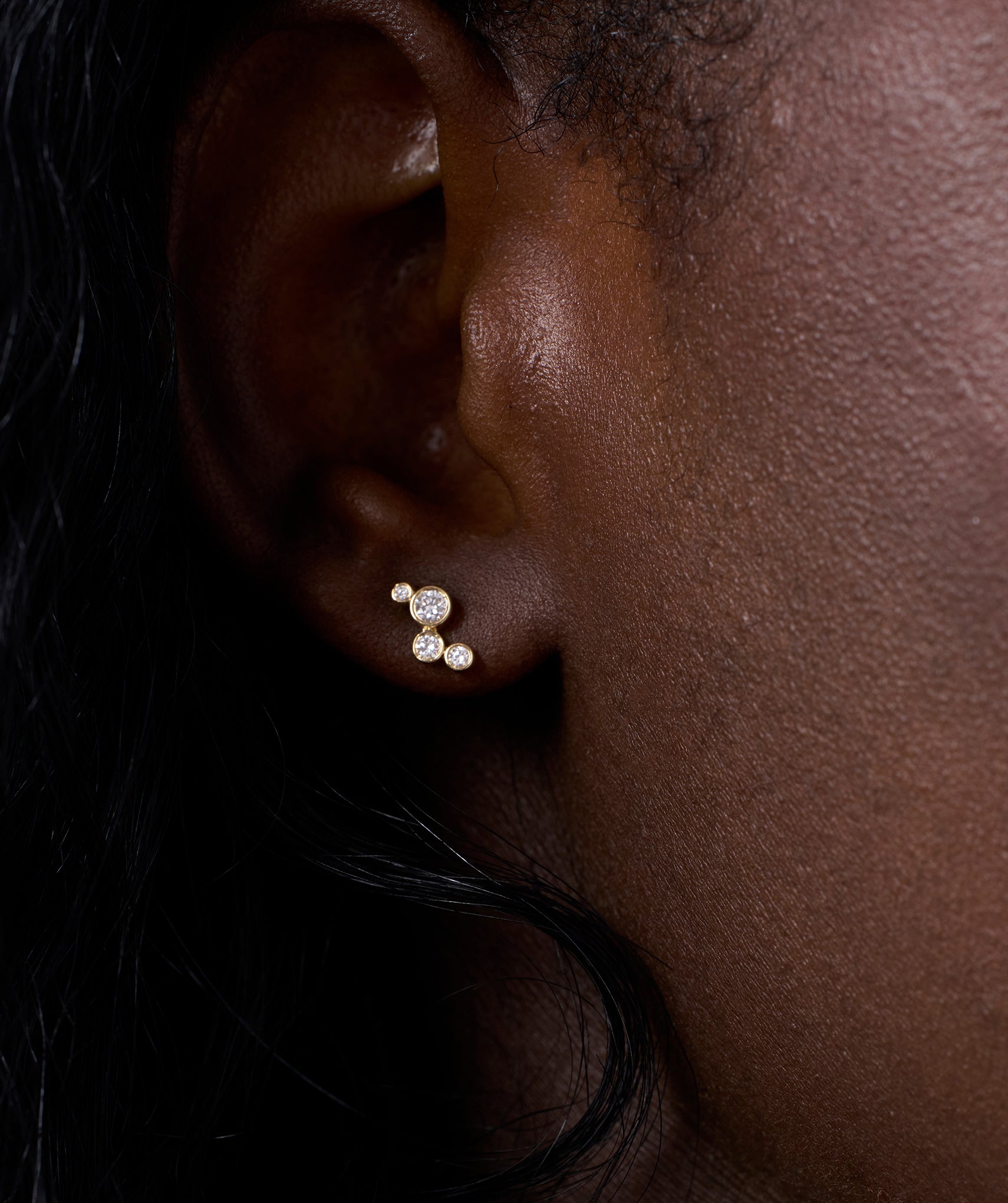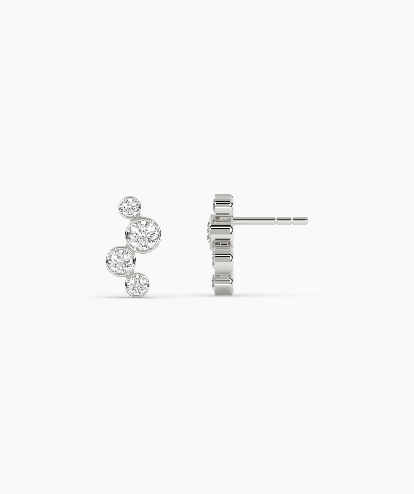 Bezel-Set Triple Diamond Stud Earrings