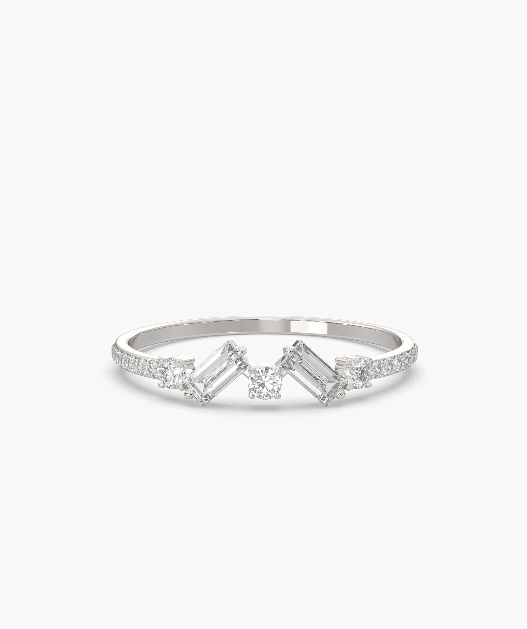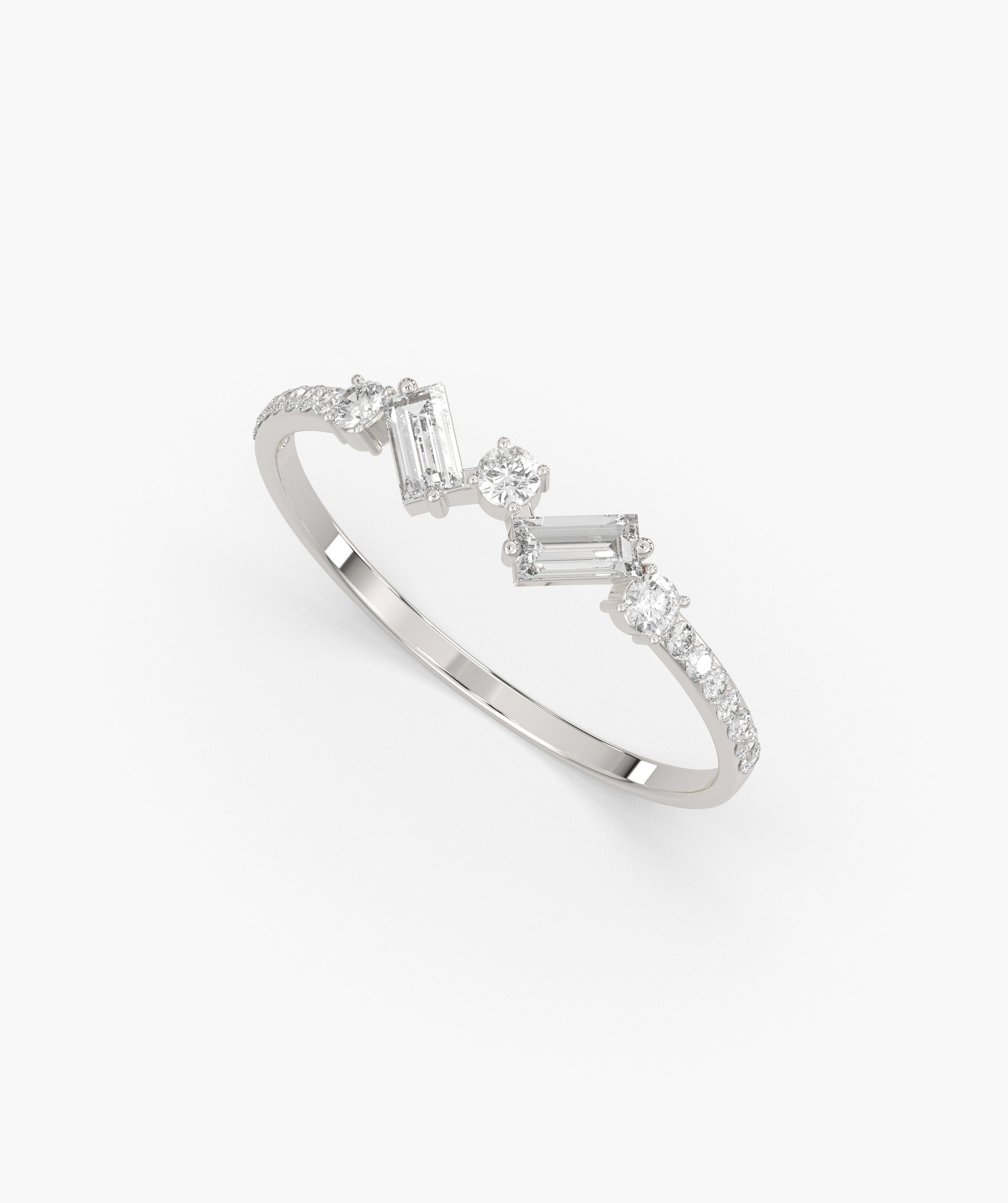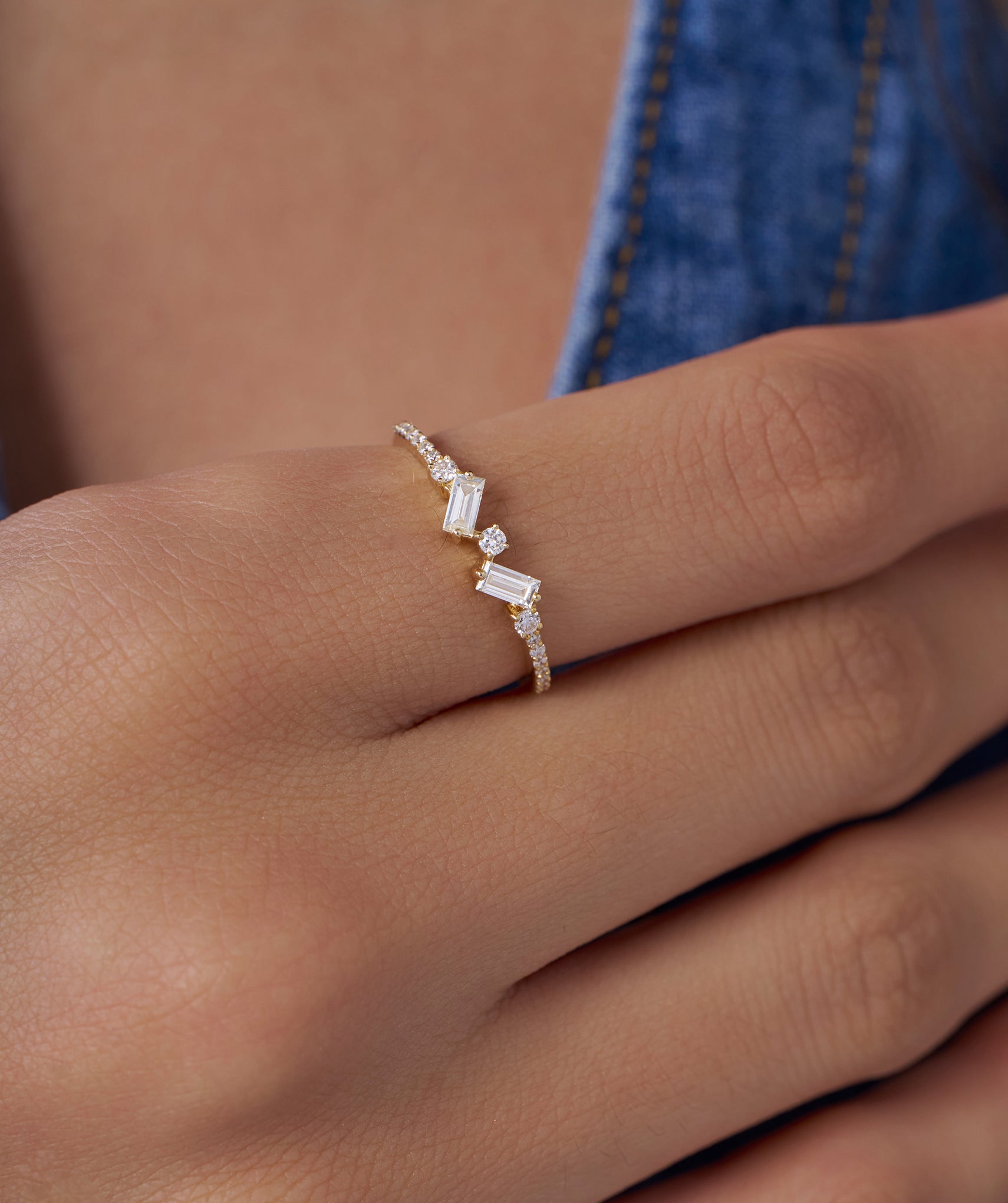 Exude timeless elegance with this 14K solid gold ring, intricately set with alternating baguette and round diamonds.