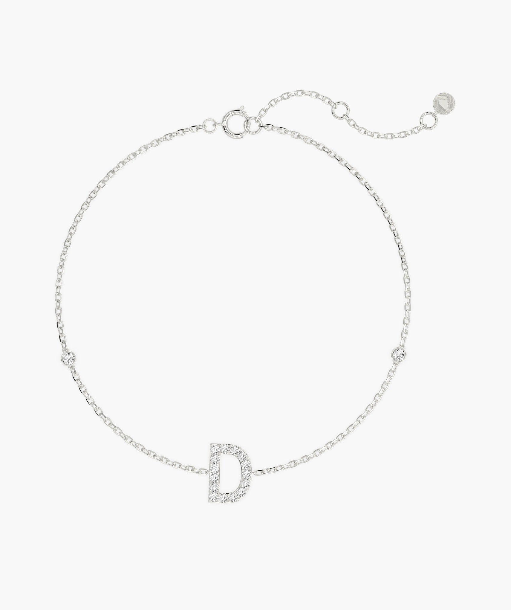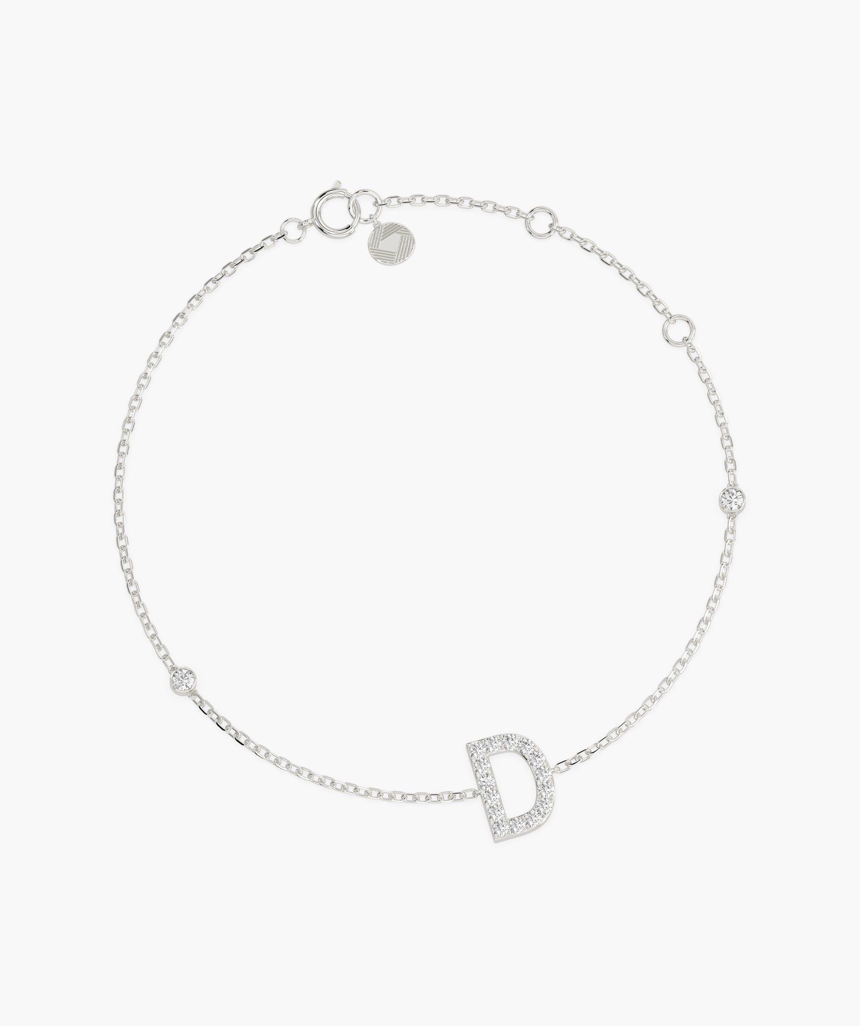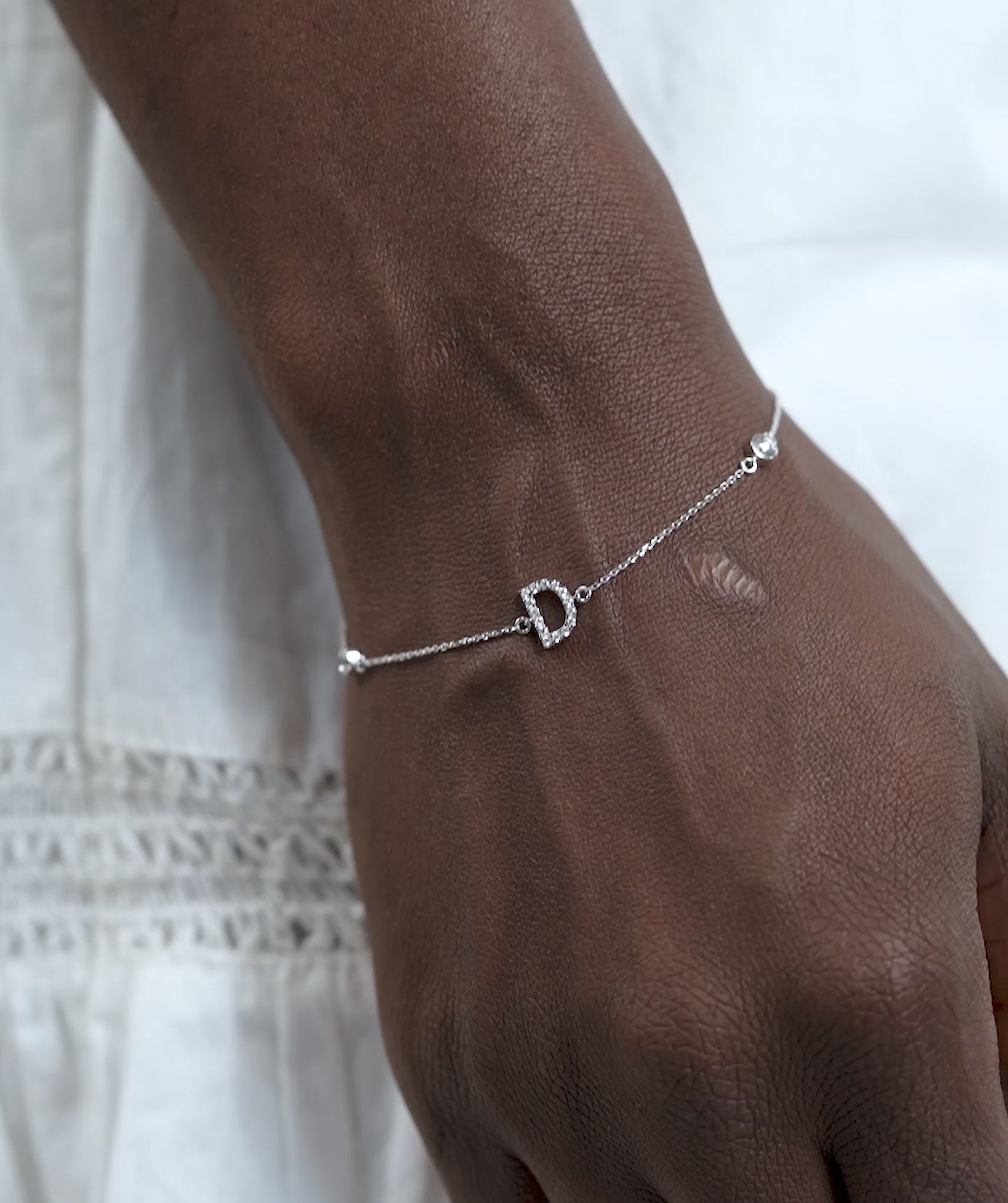 This stylish bracelet showcases a dazzling 'D' set in solid 14K gold, perfect for adding a personalized touch to any outfit.