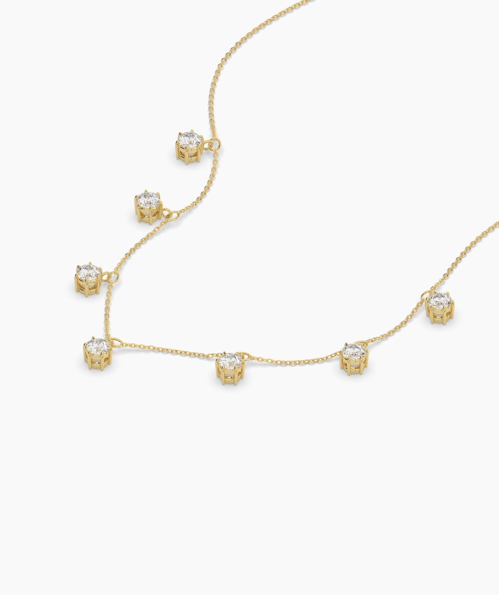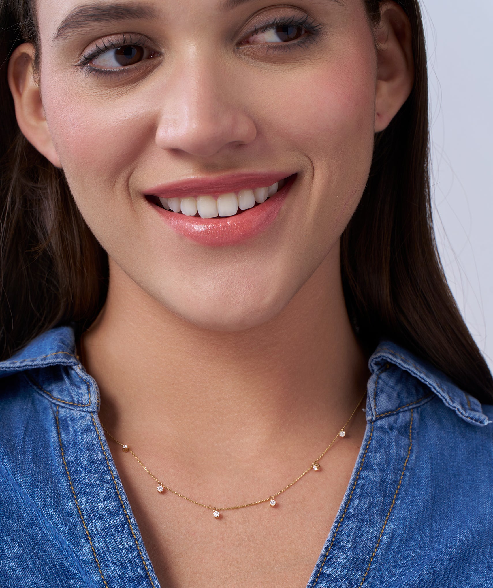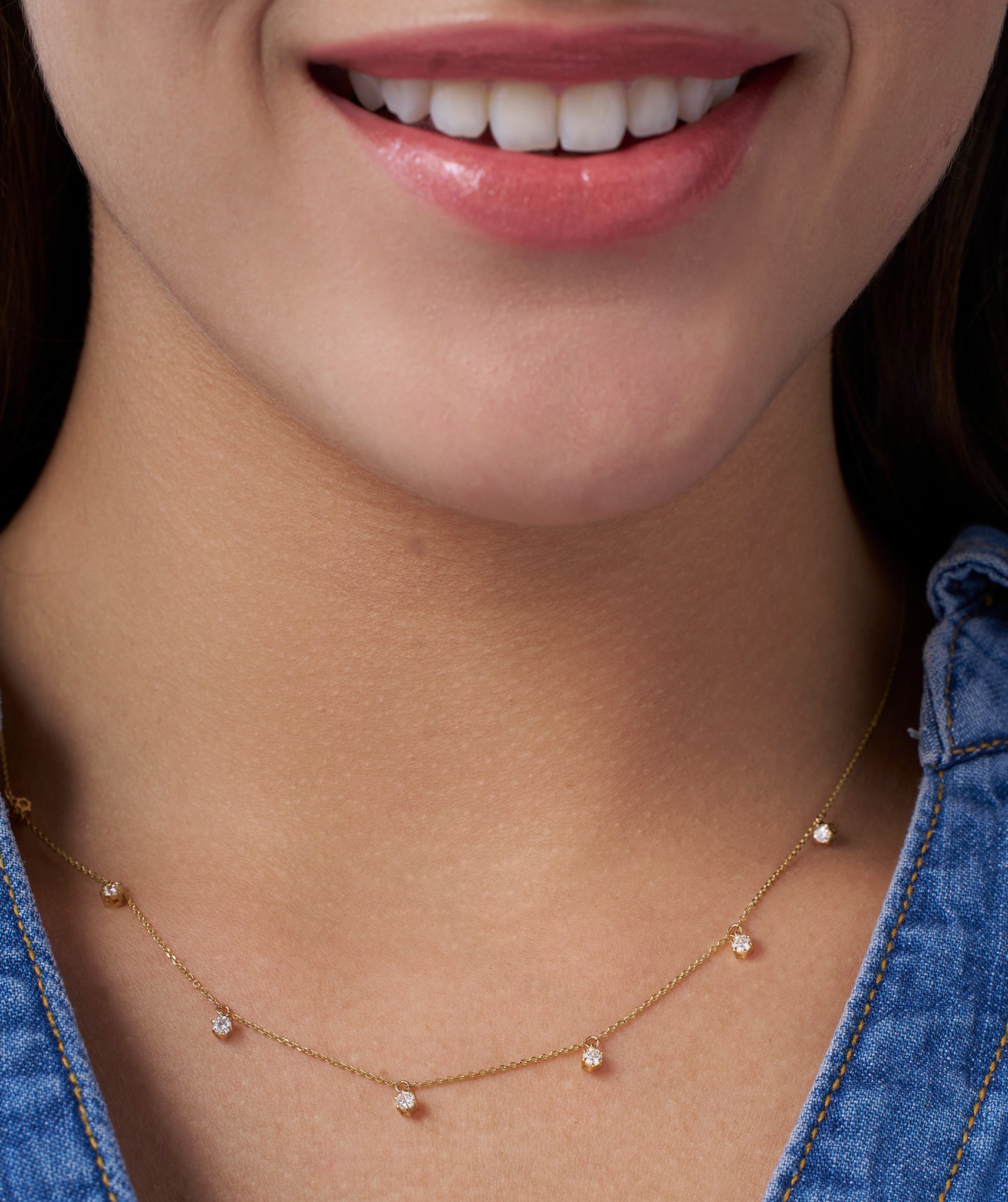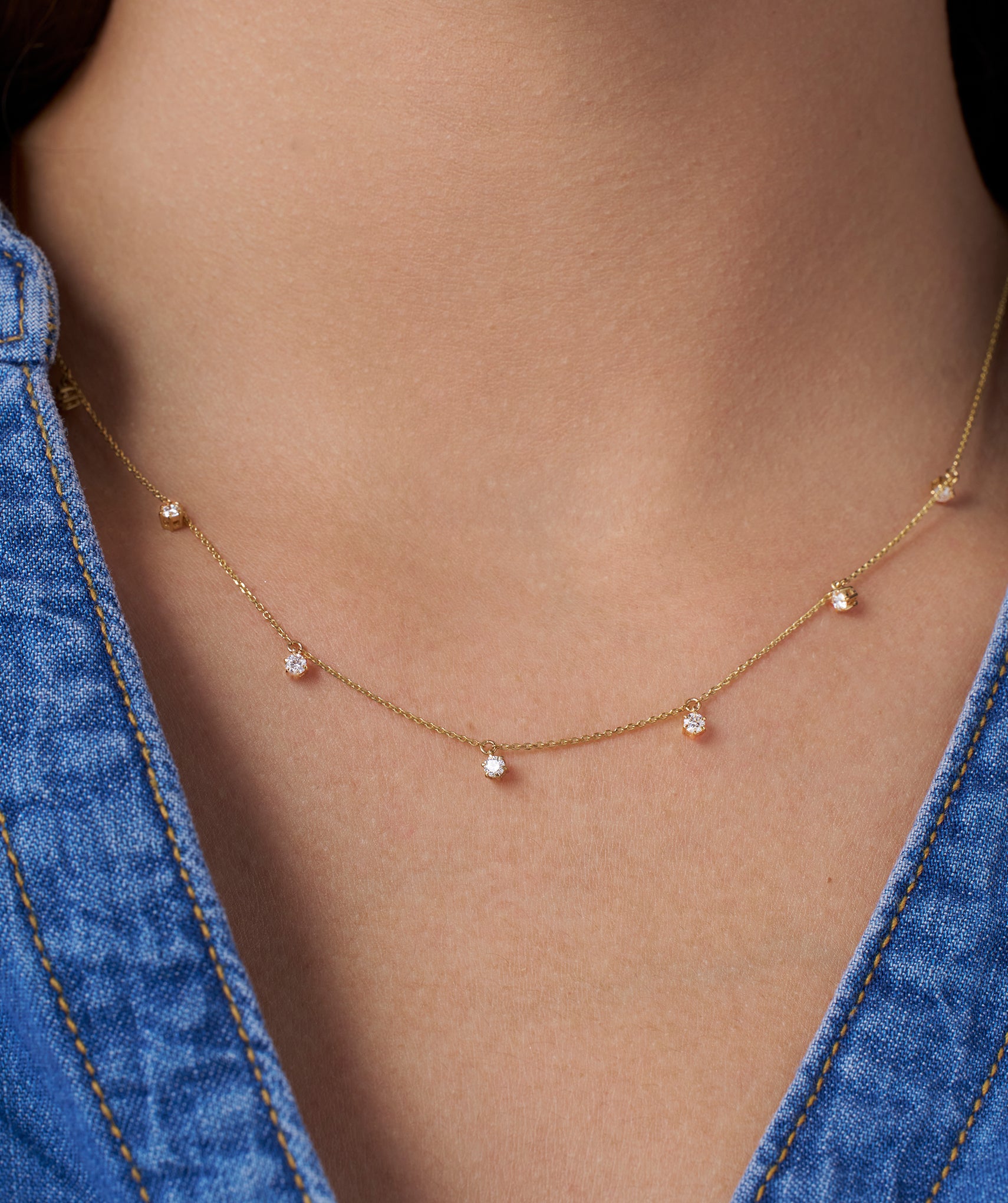 Elegant gold necklace with solitaire diamond bezels, perfect for adding a touch of sophistication to any look.