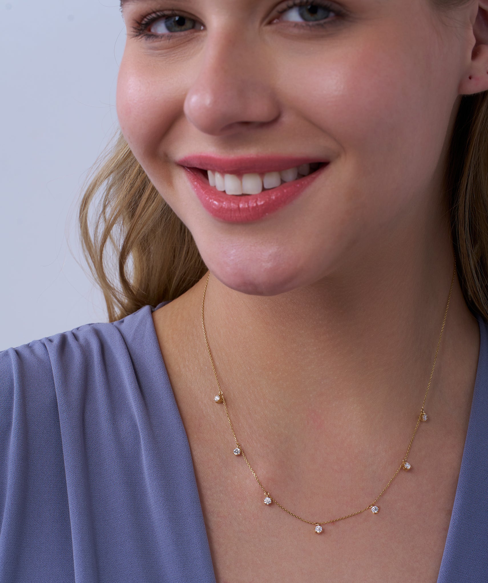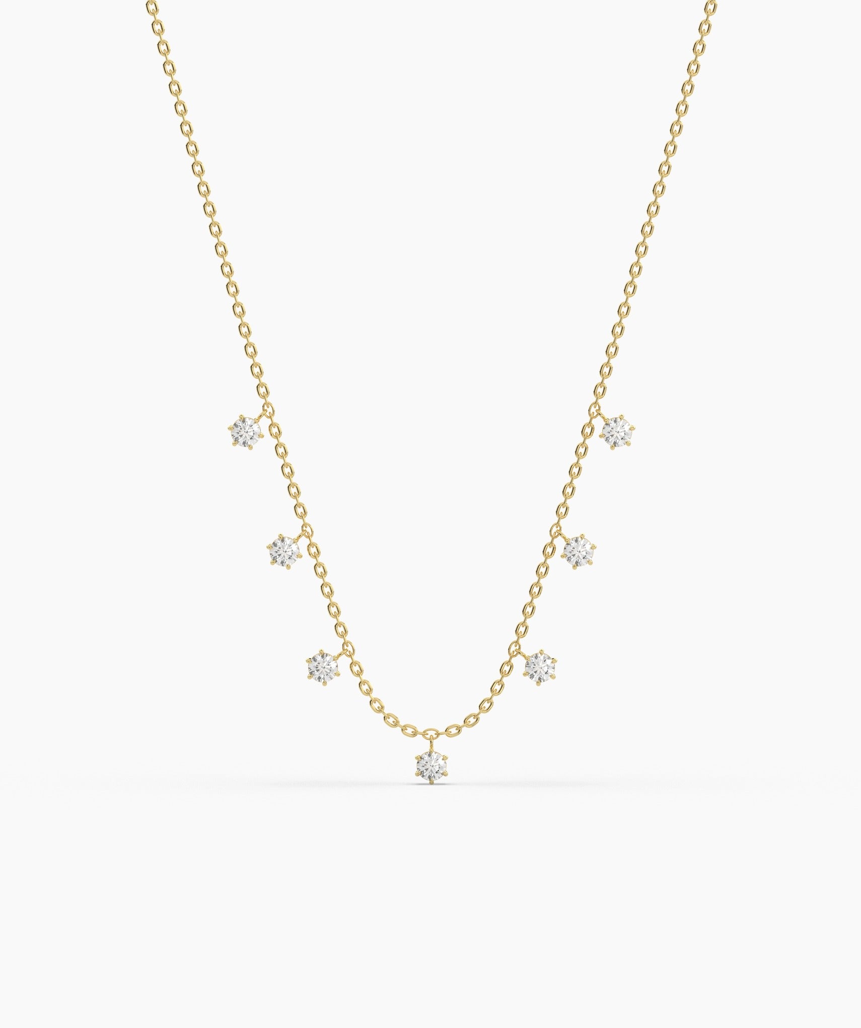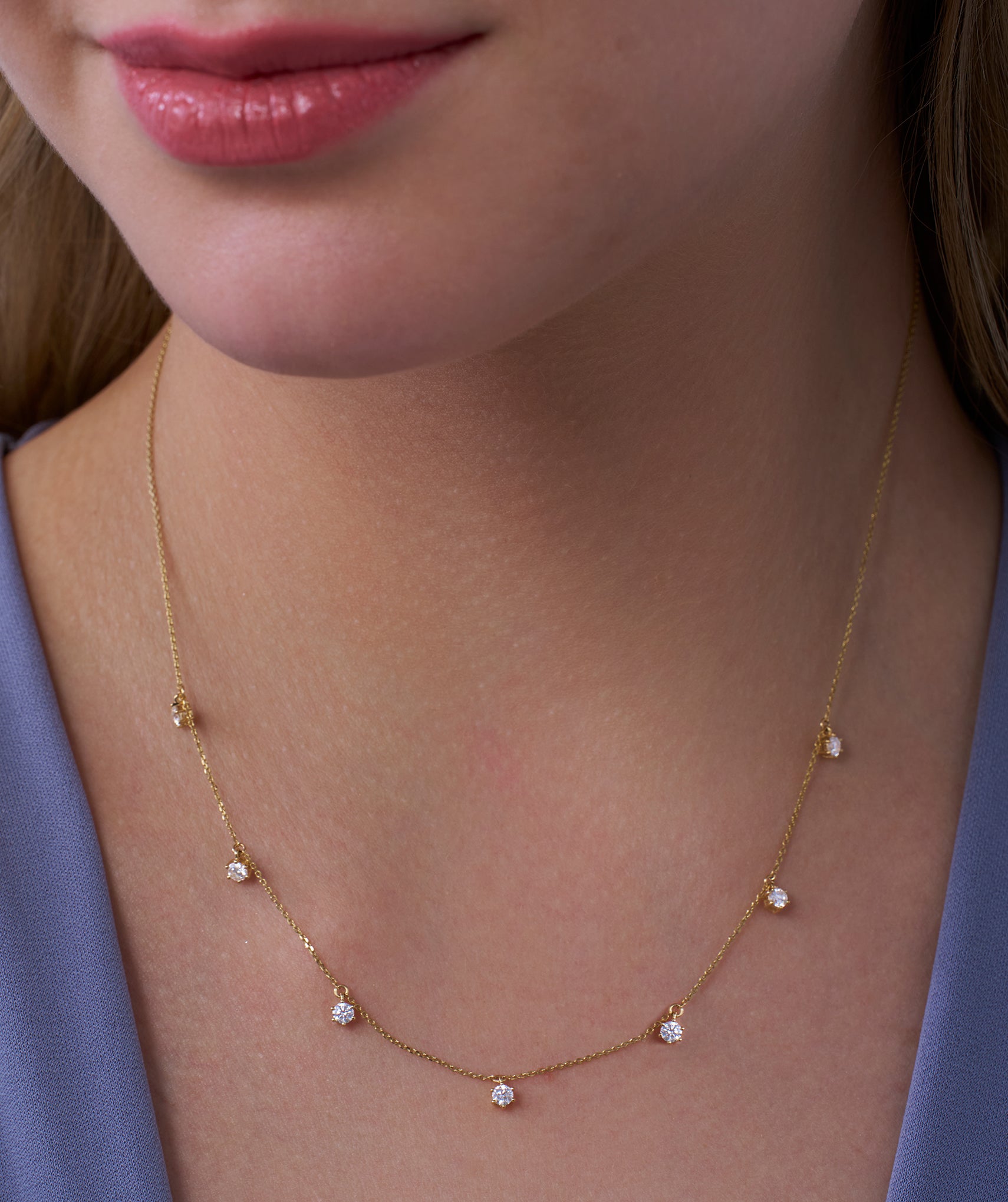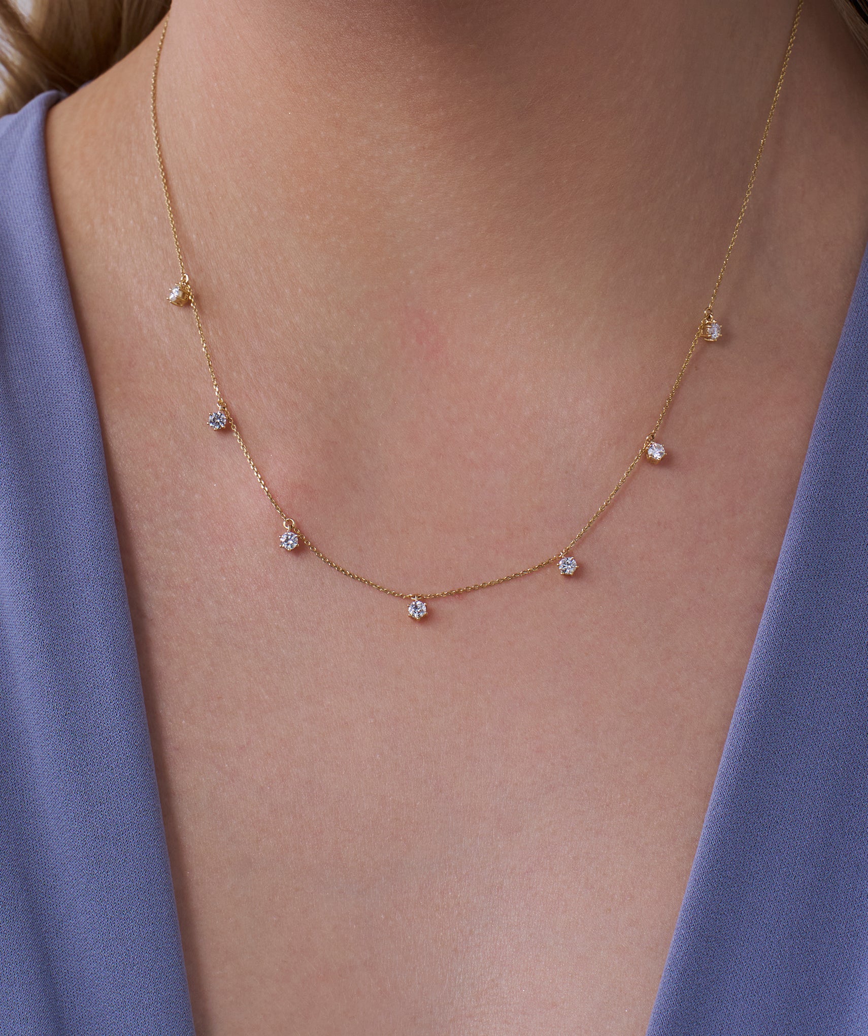 Elegant gold necklace with solitaire diamond bezels, perfect for adding a touch of sophistication to any look.