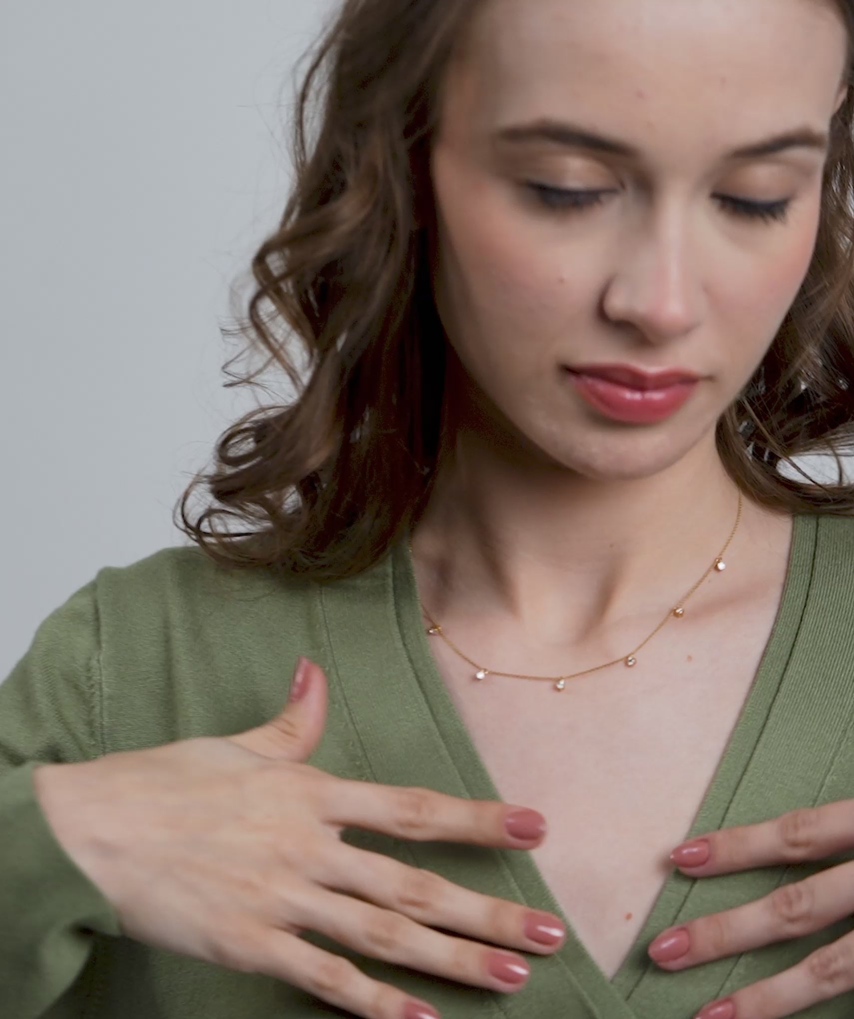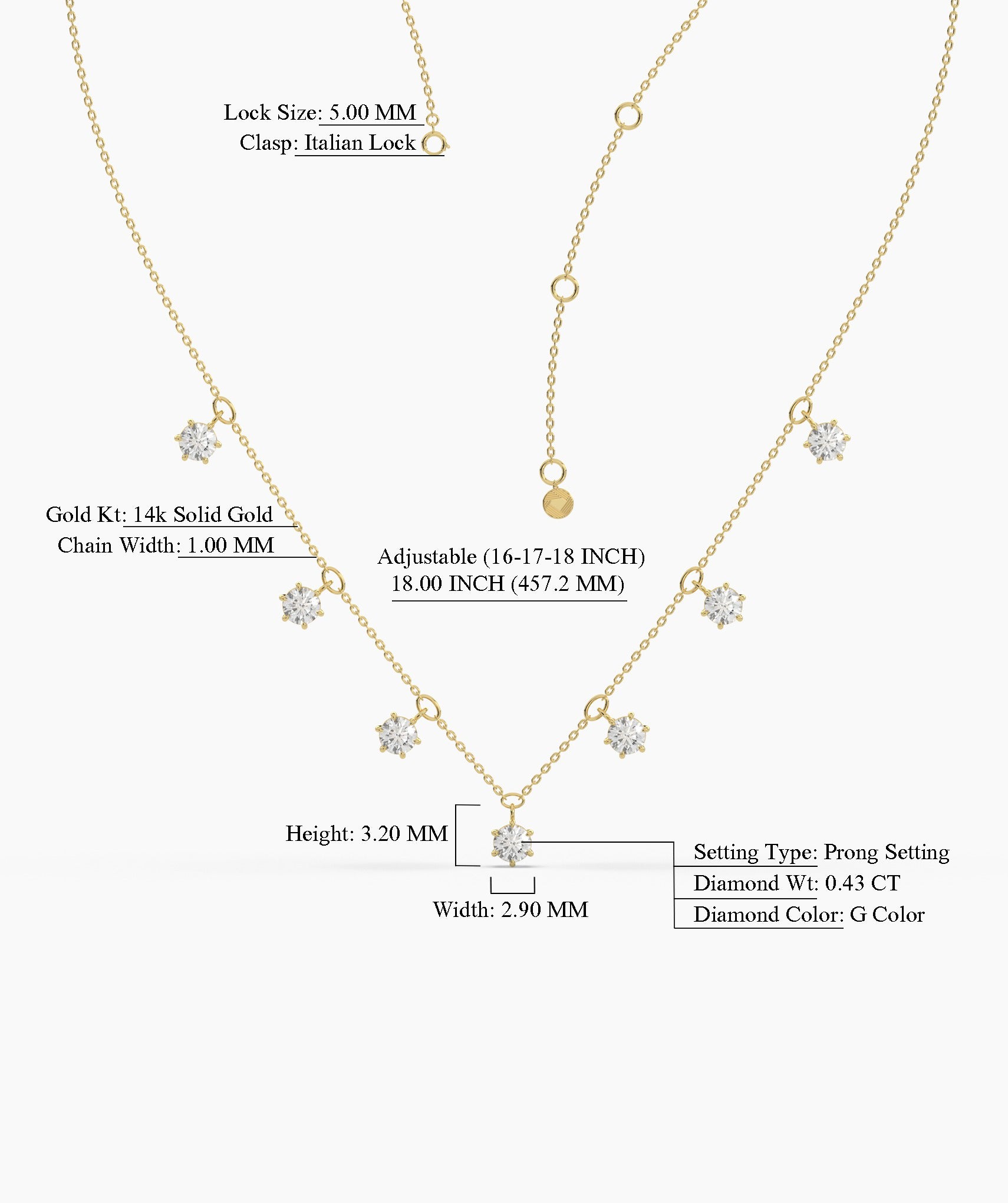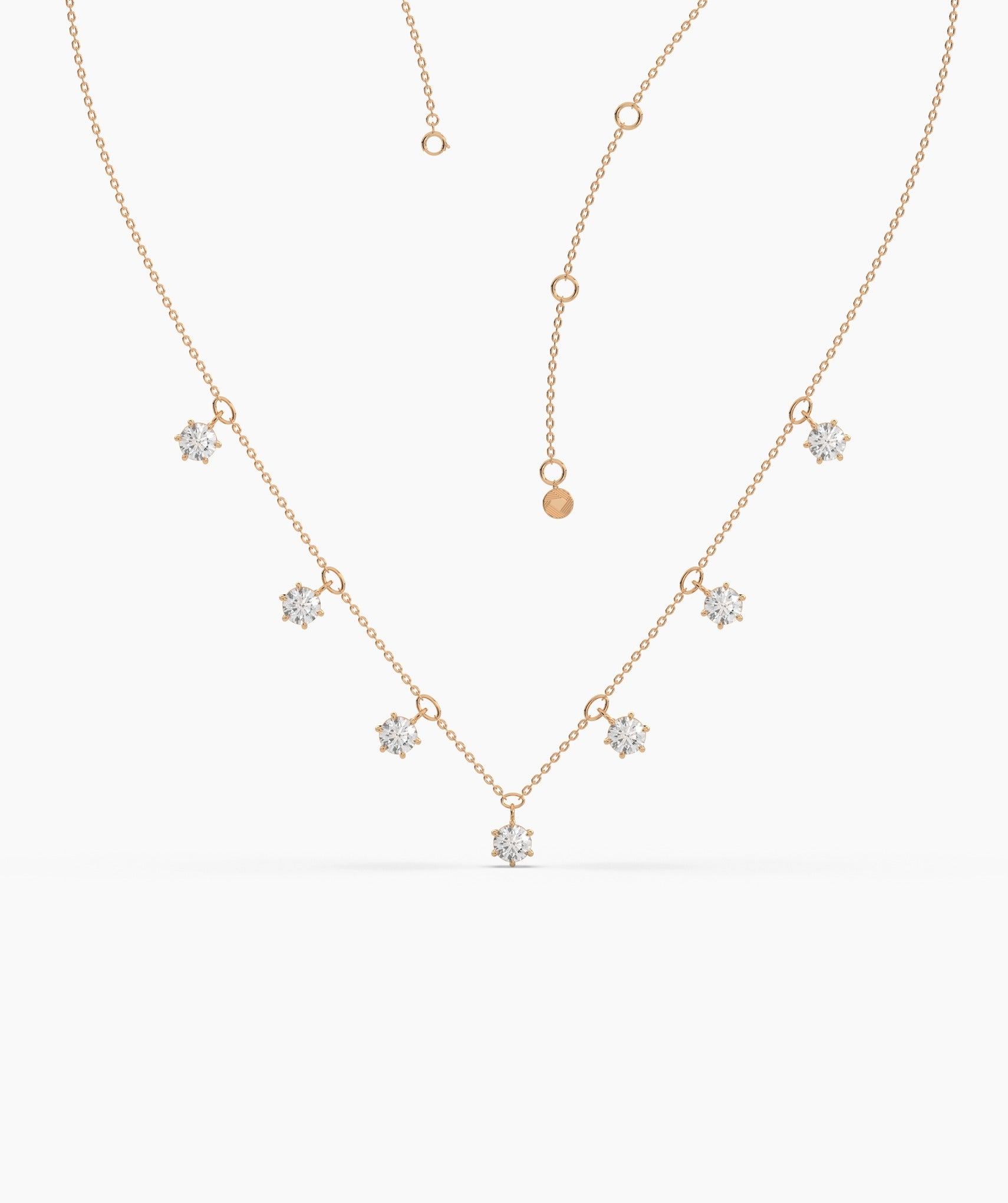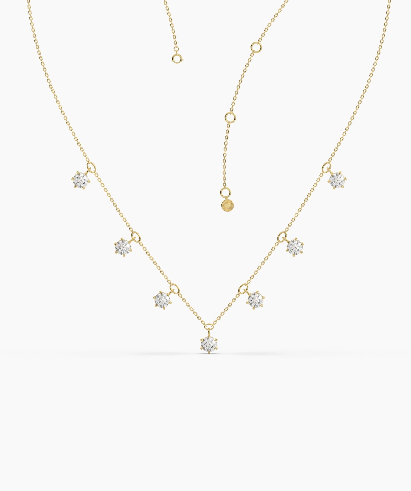 Elegant gold necklace with solitaire diamond bezels, perfect for adding a touch of sophistication to any look.